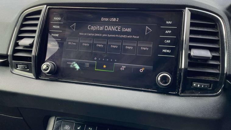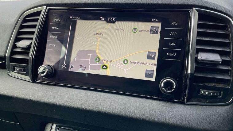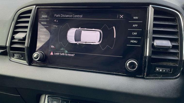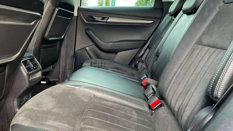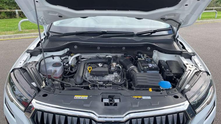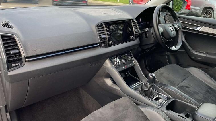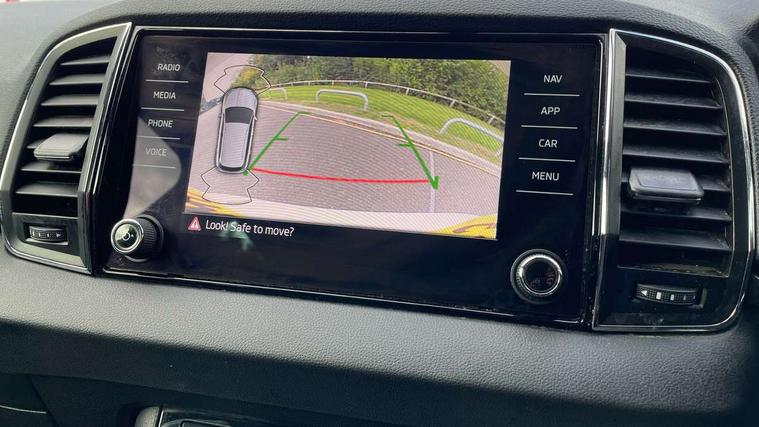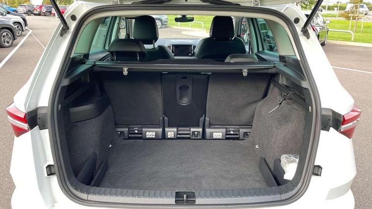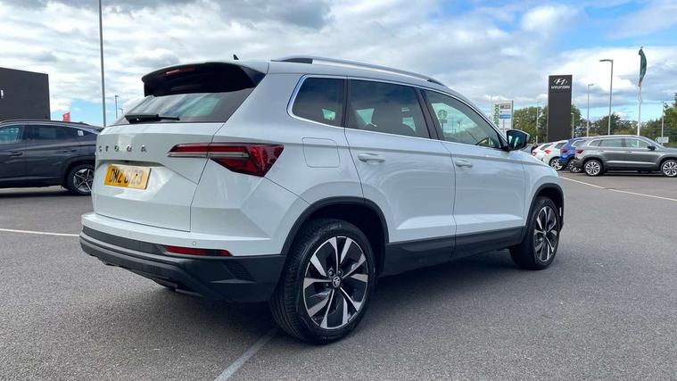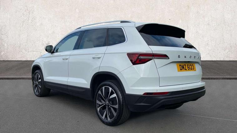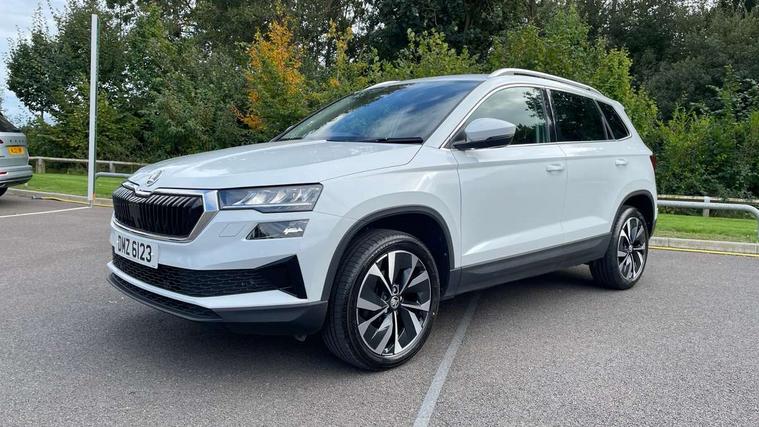 8" Digital display, Care connect, Drive mode selector, Driver fatigue sensor, Electro-mechanical PAS, Emergency services call system, Outside temperature gauge, Service interval indicator, SmartLink wireless for Apple and wired for Android, Start/stop system with regenerative braking, USB C Port x 2 in front centre console, 8 Speakers, DAB radio with Bluetooth, USB connection, Acoustic glass, Aero front windscreen wipers with intermittent function, Auto dimming rear view mirror with light and rain sensors, Black electric window control buttons, Body colour door mirrors and handles, Dynamic headlight range control with cornering light function, Electric front and rear windows with child proof lock, Heated rear windscreen, LED daytime running lights, LED rear lights with high functionality welcome effect and dynamic indicators, Light assistant (coming/leaving home/tunnel light), Plastic scuff plates, Privacy glass, Rear side wing doors, Rear spoiler, Rear window wiper with washer system and intermittent control, Safety reflectors on front doors, Third brake light, 1.5 litre bottle holders in driver and front passenger door panels, 12V socket in boot, 12v socket in front centre armrest with storage compartment and rear air vents, 2 spoke leather heated multifunction steering wheel, 2 x Tablet holder, 3 rear height adjustable headrests, 3 seat bench in 2nd row, 4 foldable roof handles with rear coat hooks, Black floor carpet, Chrome inner door handles, Double sided boot floor, Foldable hooks in the boot, Front head restraints, Height adjustable front three point seats belts with tensioners, Height/reach adjust steering wheel, Ice scraper, Illuminated glovebox, Illuminated luggage compartment, Isofix child seat preparation for front passenger seat, Isofix child seat preparation outer rear, Manual lumbar support for front seats, Pen holder, Pollen filter, Rear boot cover, Rear reading lights, Rubbish bin door, Safety vest holder, Single front passenger seat, Storage box in upper central dashboard closed, Sunvisors with illuminated vanity mirrors, Textile floor mats, Ticket holder, VarioFlex seats with standard rear seat release, Boot pack - Karoq, Design Pack - Karoq, Parking pack - Karoq, Automatic door unlocking in case of crash, Automatic fuel cut off in case of crash, Child locks on rear doors, Driver airbag, Electronic parking brake with auto hold function, Emergency rear braking signal, ESC including ABS, MSR, ASR, EDS, HBA, DSR, RBS, MKB and traction control, Front side airbags, Hill hold control, Knee airbags, Passenger airbag with switch-off function, Pedestrian monitor, Seatbelt reminder signalisation and pretensioner for all seats, Three point seatbelts rear, Two tone horn, Tyre pressure display, Tyre pressure monitor, Alarm with interior monitoring, back up horn and tilt sensor with safe function, Electronic engine immobiliser, Keyless entry and start/stop, Remote central locking with 2 remote folding keys, Chrome framed air vents, 18" Miran alloy wheels in black, Anti-theft wheel bolts protection, Tool kit,