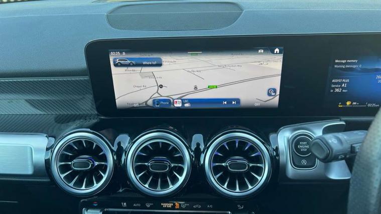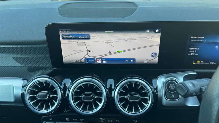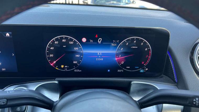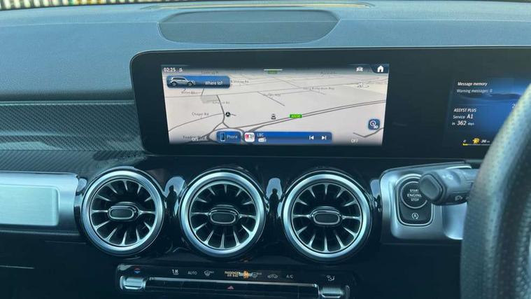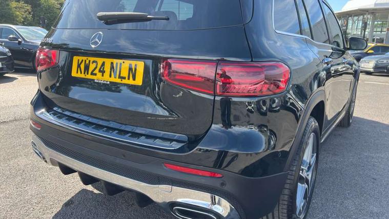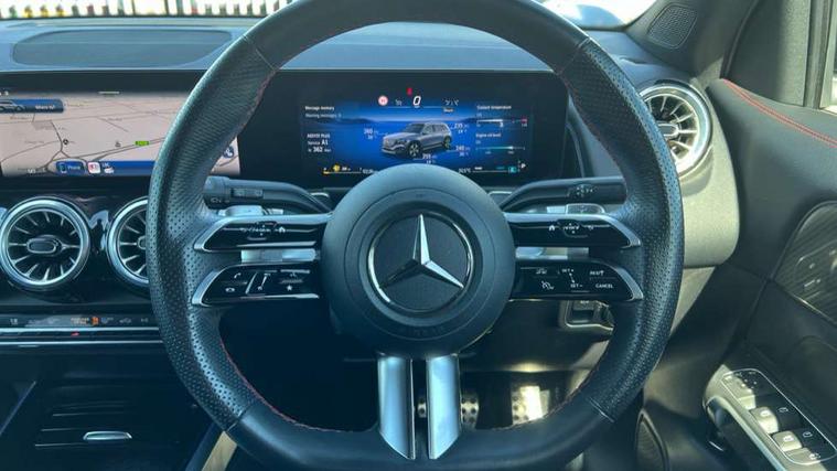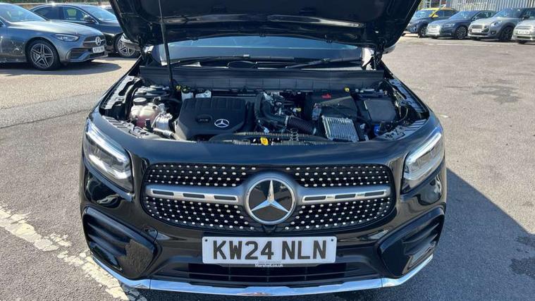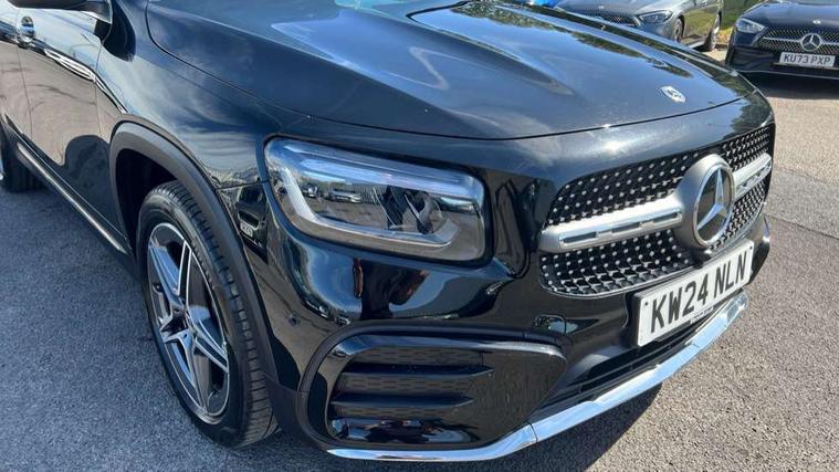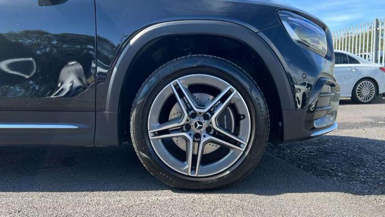 10.25 inch touchscreen central media display, 10.25" Digital instrument cluster display screen, 12 ultrasonic sensors in front and rear bumpers, 180 degree reversing camera with parking guidelines, Assisted parking: reversing backwards into perpendicular and parallel parking spaces, Attention assist - Monitors steering behaviour and long journey fatigue, Bluetooth connection, Brake pad wear indicator warning light, Car wash mode, Convenience opening and closing, Direct steering, DYNAMIC SELECT with a choice of driving modes (ECO, Comfort, Sport and Individual), ECO start/stop function, Engine start/stop button, Fluid level warning indicator for fuel, oil, coolant and washer fluid, Hard disk navigation, Hey Mercedes Voice activation, Lamp failure indicator, Lane keep assist, MBUX navigation premium, Mercedes me connect including emergency call system, accident recovery, breakdown and maintenance management, Mercedes me remote services, Outside temperature gauge, Owners manual and service booklet in English, Pre-installation of private car share, Preinstallation for parking damage notification, Radio aerial integrated into front and rear windshields, Remote boot closing, Service indicator (ASSYST), Smartphone integration with Apple CarPlay and Android auto, Speed limit assist, Tailgate, Trip computer in multifunction display with current consumption indicator, Ultrasound sensors - positioned in the handle of the tailgate, Wireless charging, Comfort suspension with ride height lowering, Rear axle multi-link, 1 USB-C port in the oddments compartment (Charge + Data transfer), 2 USB-C ports for the rear on the centre armrest (Charge only), 2 USB-C ports under the front centre armrest (Charge + Data transfer), DAB digital radio tuner, MBUX multimedia system, Mercedes Benz sound system (100 W) with 6 speakers, Pre installation for Mercedes Benz Link, Adaptive brake lights, Adaptive high beam assist, AMG front apron with front splitter in the colour of the vehicle with chrome trim element, AMG rear apron with visible tailpipe trim and chrome trim element, AMG specific/dual flow exhaust pipes in chrome (non-functional), Auto dimming rear view mirror, Beltline trim and window line trim strip in high gloss aluminium, Black grained side sill trim with chrome inlay, Body coloured door handles, Electric adjustable and heated door mirrors with integrated LED side indicators, Electric folding door mirrors, Front and rear electric windows, Headlamp assist automatic headlamp activation, Heat insulating dark-tinted glass starting from B-pillar, Heated glass rear windscreen + timer control, High level LED third brake light, Interior mirror with black reading lamps and frameless, LED high performance headlamps with integrated LED daytime running lights, LED tail lamp, Polished aluminium roof rails, Radiator grille as a diamond grille with chrome pins and central Mercedes star, Rain sensor windscreen wipers, Rear fog lamp, Rear side wing doors, Rear wiper, Single louvre in matt grey with chrome inserts and black highlights, Two visible tailpipe trim elements exhaust, Ultrasonic sensors - positioned in the front and rear bumpers, Wheel arch liners in the colour of the vehicle, 12V socket in the oddments compartment, 3 seat bench in 2nd row, 3 twin spoke flattened multifunction steering wheel in nappa leather - horizontal twin spoke in high gloss black, vertical twin spoke in silver chrome, 4 way adjustable lumbar support, 40:20:40 split folding rear seats, Air vents with silver chrome surrounds, AMG floor mats, AMG sports pedals with brushed stainless steel surfaces and black rubber studs, Automatic child seat recognition sensor, Black roof lining, Door handles with chrome inserts, Fluorescent jacket, Front and rear headrests, Front centre armrest with stowage, Galvanised steering wheel gearshift paddles in silver chrome, Handle recess lighting, Heated front seats, Height adjustable head restraints, Height/reach adjustable steering column, Interior lighting - 64 colour Ambient lighting, Luggage net on driver/front passenger seat backrest, Single front passenger seat, Sports seats, Stowage compartment with retractable cover, Sun visors with illuminated vanity mirrors, THERMATIC automatic climate control, Third row of seats for two people on rear seat, Twin front cup holders, Two outer rear seat isofix and top tether child seat fixing points, Easy pack tailgate, Interior lighting with light and sight pack - GLB, Seat comfort package - GLB, 3 rear 3 point seatbelts, Active bonnet pedestrain safety measure which detects an impact and raises bonnet by 65mm, Active brake assist includes forward collision warning system with autonomous braking, Adaptive brake assist with hold function and hill start assist, Airbags - kneebag for driver, Anti-lock braking system (ABS) with brake assist, Black seatbelts, Bonnet with power domes, Childproof locks manually operated for rear doors and electrically operated for rear power windows, Crash responsive emergency lighting, Curve dynamic assist, Driver and front passenger head and sidebags, Driver and front passenger windowbags, Dual stage driver and front passenger airbags, Electric parking brake, Electronic stability programme with acceleration skid control, Front and rear seatbelt reminder, Front brake callipers with Mercedes Benz lettering, Front passenger seat occupancy sensor, Perforated front brake discs, Tyre pressure monitoring system, Warning triangle and first aid kit, Guard 360 degree vehicle protection - Anti theft alarm system, tow away protection with visual, acoustic warning and alarm, Interior monitoring system, Keyless Go Access and drive authorisation system, KEYLESS-GO starting function, Remote central locking and crash sensor with emergency opening function, Thatcham category 1 alarm system with immobiliser and interior protection, Vehicle key with KEYLESS GO functionality, Carbon structure trim, 19" AMG 5 twin spoke light alloy wheels aerodynamically optimise