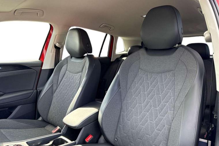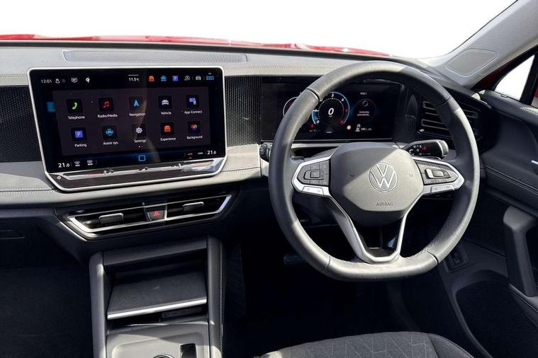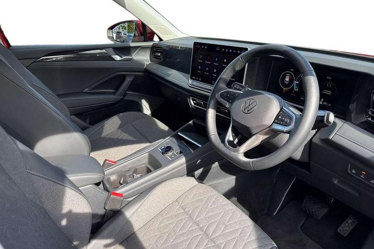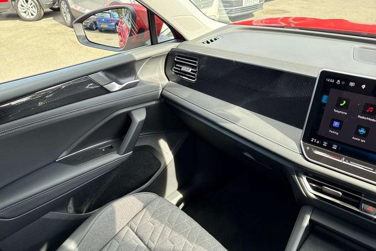 Adaptive cruise control (ACC), Advanced driver attention and drowsiness monitor, Bluetooth mobile phone interface, Car2X technology, Digital Cockpit Pro - 10.25" high resolution dash display screen with customisable menus and information, Dynamic road sign display, E-Sim card for online connectivity, eCall emergency call service, Front Assist - Autonomous emergency braking with pedestrian and cyclist monitoring, Lane change system, Side assist, Rear traffic alert and Exit warning system, Lane keeping system Lane Assist, Multifunction front facing camera, Oncoming vehicle braking when turning including swerve support, Park assistance plus with front and rear parking sensors, Power assisted steering with speed sensitive, Start/stop system with regenerative braking, Warning signal and warning light for front and rear seatbelts not fastened, Wireless App-Connect, Front wheel drive, Digital radio reception (DAB), Diversity antenna for FM reception, Ambient lighting with logo projection, Auto dimming interior rear view mirror, Automatic headlight control system, Body coloured bumpers and air intake with chrome trim, Body coloured door handles, Body-coloured exterior mirror housings, Coming/leaving home lighting function, Heat insulating glass in side and rear windows, Heat insulating windshield, Heated rear window, High level 3rd brake light, Illuminated door handle recesses, Illuminated lightline between headlamps, Rain sensor windscreen wipers, Rear fog light on one side, reversing light on both sides, Rear side wing doors, Rear wiper, 12V outlet in center console rear and in luggage compartment, 12V socket in centre console, 3 bench rear seats in 2nd row, Air care climatronic 3 zone air conditioning system with rear air conditioning control panel, Carpet mats, front and rear, Centre console with illuminated storage compartment with sliding cover and two drinks holders, Ceramique headlining, Door and side trim panel in foam film and woven fabric, Front centre armrest, ISOFIX anchors for child seats on outer rear seats and front passenger seat compatible with i-Size, Mechanical rear seat release, Power adjustable lumbar support in front, Rear bench seat, split folding, longitudinally movable and folding with load-through hatch and centre armrest, Safety optimised front head restraints, Single front passenger seat, Sun visors with illuminated vanity mirrors, Three rear head restraints, Variable luggage compartment floor, Comfort package with park assist plus and Safelock - Tiguan, Design package - Tiguan, 3 point seat belt for centre rear seats, 3 Point seat belts in front with pretensioners, 3 point seatbelts in outer rear with ECE label, Driver and front passenger airbag with front passenger airbag deactivation, Electronic parking brake with auto hold, Front and rear curtain airbags, Front and rear side airbags, Front centre airbag, Front disc brakes, Manual child proof rear door locks, Rear disc brakes, Two tone horn, Warning triangle, Anti theft wheel bolts, Soul instrument panel,