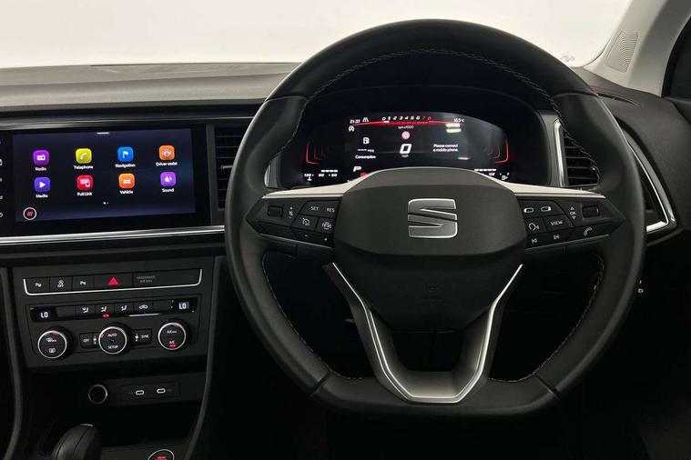 8" Digital cockpit, Colour multi-function on board computer display, Cruise control system with speed limiter, E-call, Outside temperature gauge, PAS, SEAT drive profile with driving experience button - Normal, Sport, Eco and Individual mode, gearshift, steering and throttle response, Self parking functionality (includes front and rear parking sensors), Start/stop system, Tailgate, Trip computer, wired and wireless full link smartphone integration, Wireless phone charger, Steering wheel mounted audio/phone controls, Black wheel arch surrounds, Body colour bumpers, Chrome front grille frame, Chrome roof rails, Chrome side window trim, Daytime running lights, Door mirrors with welcome light silhouette, Dynamic headlight range control with self adjusting whilst driving, Electric adjustable/heated/folding door mirrors, Front and rear electric windows, Full LED headlamps with lens and LED front fog lamps with cornering function, LED 3rd brake light, LED rear tail lights, Rear exhaust tailpipe, Rear fog lights, Rear side wing doors, Rear wash/wipe, Variable front intermittent wipers, 12v socket in front, 3 seat bench in 2nd row, 60/40 split folding rear seat, Cloth upholstery with front comfort seats, Drawer under right front seat, Dual zone climate control, Front and rear head restraints, Front centre armrest, Front seat back storage pockets, Height adjustable driver and passenger seat with lumbar adjustment, ISOFIX points in outer rear seats with top tether anchorage points, Leather sports steering wheel and gear knob, Rear armrest and easy back seat release mechanism from boot, Single front passenger seat, Steering wheel mounted gearshift paddles, Convenience pack - Ateca, Interior lighting pack - Ateca, Navigation system pack with DAB - Ateca, Safety and driving pack with attention and drowsiness assist - Ateca, 3x3 point rear seatbelts, ABS, Traction control system (TCS), Electronic stability control (ESC) and Electronic differential lock system (XDS), Airbags - Driver and front passenger airbag with deactivation, front side, two curtain and driver's knee airbags, Electric parking brake with auto hold function, Front and rear seatbelt reminder, Front assist with autonomous emergency braking, Hill hold control, Manual rear child locks, Single tone horn, Tiredness recognition system, Tyre pressure monitoring system, Alarm, Keyless entry, Locking wheel bolts, Remote central locking, Chrome interior detailing, 18" Performance machined alloy wheels 36/2 in nuclear grey,