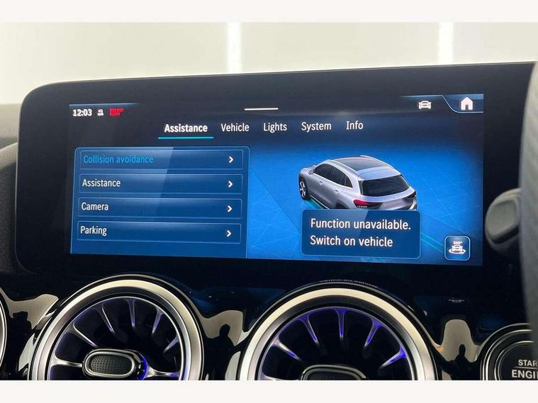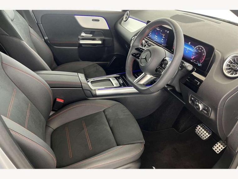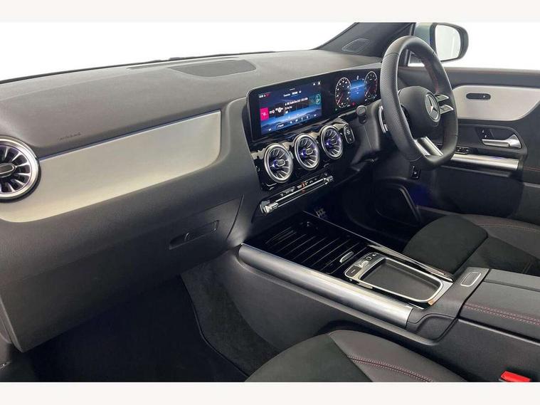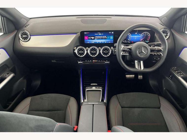 10.25 inch touchscreen central media display, 10.25" Digital instrument cluster display screen, Attention assist, Blind spot assist, Direct steering, DYNAMIC SELECT with a choice of driving modes (ECO, Comfort, Sport and Individual), ECO start/stop function, Fingerprint scanner, Fluid level warning indicator for fuel, oil, coolant and washer fluid, Hard-disk navigation, Hey Mercedes Voice activation, Lamp failure indicator, Lane keeping assist (LKA), Mercedes me connect including emergency call system, accident recovery, breakdown and maintenance management, Mercedes me remote services, Multi function trip computer, Outside temperature gauge, Owners manual and service booklet in English, Pre-installation of private car share, Radio aerial integrated into front and rear windshields, Service indicator (ASSYST), Smartphone integration with Apple CarPlay and Android auto, Speed limit assist, Wireless charging, Lowered comfort suspension, Rear axle multi-link, Bluetooth connectivity including audio streaming, DAB Digital radio, MBUX multimedia system, Mercedes Benz sound system (100 W) with 6 speakers, Adaptive brake lights, Adaptive highbeam assist, Aluminium roof rails, AMG front apron with front splitter in the colour of the vehicle with chrome trim element, AMG rear apron with visible tailpipe trim and chrome trim element, AMG specific/dual flow exhaust pipes in chrome (non-functional), Automatic headlamp activation, Beltline trim and window line trim strip in high gloss aluminium, Black grained side sill trim with chrome inlay, Car wash function, Dark privacy glass from B-pillar backwards, Electric front windows, Electric rear windows, Electrically adjustable and heated door mirrors with integrated LED indicators, Exhaust system with 2 Visible tailpipe trim elements and rear apron with trim in chrome, Heat insulating dark tinted glass, Heated glass rear windscreen + timer control, Interior mirror with black reading lamps and frameless, LED high performance headlamps with integrated LED daytime running lights, LED tail lights, LED third brake light, Rain sensor windscreen wipers, Rear fog lights, Rear side wing doors, Rear wiper, Wheel arch liners in the colour of the vehicle, 3 seat bench in 2nd row, 3 spoke flat bottom multifunction nappa leather steering wheel, 4 way lumbar support, 40:20:40 split folding rear seat backrests, Adjustable head restraints, Air conditioning - air vents with silver chrome surround, Air conditioning - One zone thermatic automatic climate control with automatically controlled air distribution, AMG floor mats, Artico man-made leather/Microcut microfibre upholstery with red contrast stitching, Auto Mercedes-Benz child seat recognition sensor, Black roof lining, Courtesy light in boot, Fluorescent jacket, Front centre armrest with stowage, Galvanished gear shift paddles on steering wheel in silver chrome, Heated front seats, Illuminated glovebox, Interior lighting - 64 colour Ambient lighting, Luggage net on driver/front passenger seat backrest, Manually height and reach adjustable steering column, Single front passenger seat, Sports pedals in brushed stainless steel with black rubber studs, Sports seats, Sports steering wheel, Stowage compartment in centre console, Stowage compartment with retractable cover, Sunvisors with illuminated vanity mirrors, Twin front cup holders, Two outer rear seat isofix and top tether child seat fixing points, Comfort seat pack - GLA Class, Interior lighting with light and sight pack - GLA, Keyless go comfort package - GLA, Mirror pack - GLA Class, Parking package with reversing camera - GLA, USB package plus - GLA, Winter package - GLA, 3 rear 3 point seatbelts, ABS with Brake Assist, Active bonnet pedestrain safety measure which detects an impact and raises bonnet by 65mm, Active brake assist includes forward collision warning system with autonomous braking, Adaptive brake assist with hold function and hill start assist, Black seatbelts, Bonnet with power domes, Brake pad wear warning indicator, Childproof locks manually operated for rear doors and electrically operated for rear power windows, Crash responsive emergency lighting, Driver and passenger head and side airbags, Drivers knee airbag, Dual stage driver/passenger airbags, Electronic parking brake, ESP curve dynamic assist, ESP with ASR, Front and rear seatbelt reminder, Front brake callipers with Mercedes Benz logo lettering on front, Front brake discs internally ventilated and perforated, Front passenger seat occupancy sensor, Sports braking system, Tyre pressure monitoring system, Warning triangle and first aid kit, Window airbags, Alarm system with immobiliser and interior protection -Thatcham category 1, Guard 360 degree vehicle protection, Remote central locking and crash sensor with emergency opening function, Light longitudinal grain aluminium trim, 19" AMG 5 twin spoke light alloy wheels aerodynamically optimised, painted in high-gloss black and with a high-sheen finish RTG, Summer tyres, Tirefit tyre sealant kit,