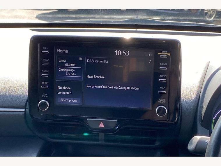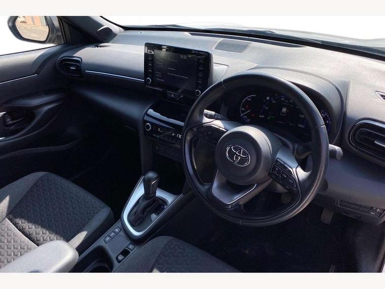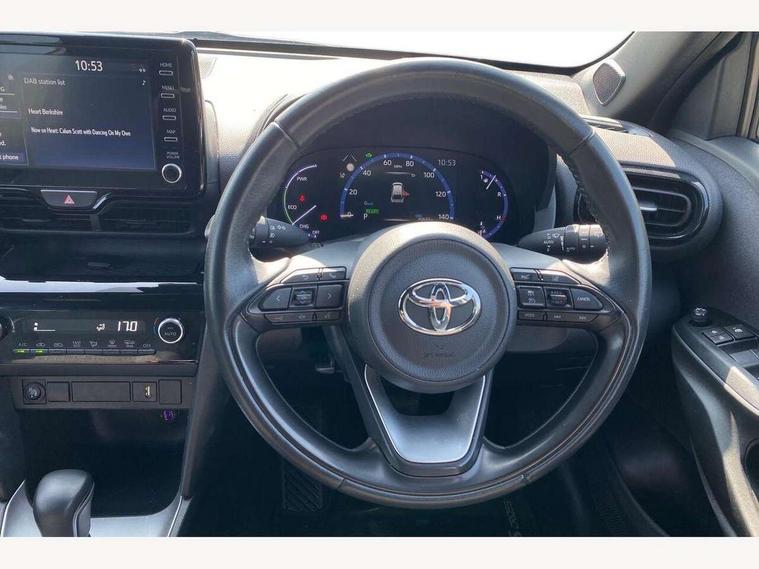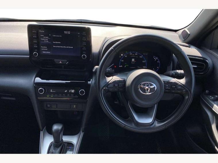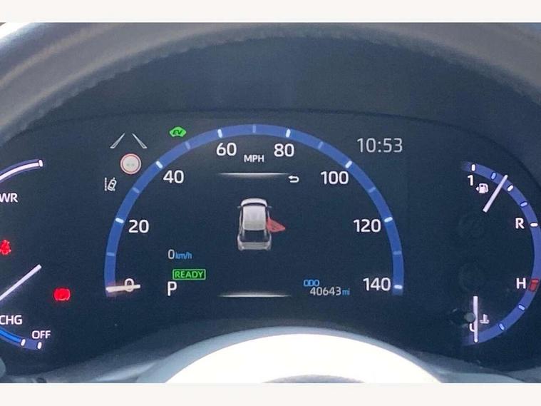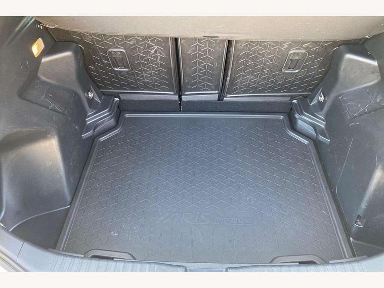7" Multi information display screen, 8" Toyota touch 2 multimedia system with Smartphone integration with Apple CarPlay and Android auto, Adjustable speed limiter, Bluetooth connectivity, Driver attention alert system, eCall emergency system, Electric power steering, Full range intelligent adaptive cruise control, Hybrid system indicator, Key reminder warning, Lane trace assist, Multimedia, audio, telephone and voice recognition switches on steering wheel, My T Connected services, Pre-collision system enhanced with emergency steering assist, Reversing camera, Road sign assist - RSA, Steering assisted vehicle stability control, 6 speakers, DAB Digital radio, USB connection, 3rd brake light, Acoustic windscreen glass, Aluminium roof rails, Anti-jam protection on power windows, Auto high beam [AHB] with on/off switch, Automatic headlights, Black lower front grille, Black Shark-fin antenna, Black upper front grille, Black wheel arch mouldings, Body colour door handles, Body colour front bumper, Body colour rear bumper, Electric adjustable heated door mirrors, Follow me home headlights, Front and rear electric windows with auto up/down function, Front intermittent wipers, Headlight cut off reminder, Indicators integrated on door mirrors, Intermittent rear wiper, LED daytime running lights guide, LED front fog lights, LED front light guide, LED Indicators, LED projector headlights, LED rear light guide, Manual headlight levelling, Manually retractable door mirrors, Noise reduction layer on windscreen, Privacy glass, Rain sensor, Rear LED lights with sequential indicators, Rear side wing doors, Rear spoiler, Rear window defogger, 12v power outlet - front, 2x Rear coat hooks, 3 seat bench in 2nd row, 3 spoke leather steering wheel, 40:20:40 split folding rear bench seat, Adjustable speed limiter switch on steering wheel, Auto air conditioning, Black roof lining, Boot light, Central armrest, Centre console in light blue ambent lighting, Driver and front passenger personal lights, Fabric door trim, Fabric upholstery, Footwell in light blue ambient lighting, Front console box, Front cup holders, Front head restraints, Glovebox, Height adjustable driver's seat, Height adjustable front passenger seat, Hooks for luggage holding belts, ISOFIX child restraint system, Lane departure alert switch on steering control, Leather gearshift, Light blue ambient lighting on front doors, Manual telescopic and tilting steering wheel, Mirror on driver and passenger sun visor, Pollen air filter, Rear cup holders, Rear head restraints, Single front passenger seat, Soft tonneau cover, 3x3 point rear seat belts, ABS+EBD+Brake assist, Driver and passenger central airbags, Driver and passenger front airbags, Driver and passenger side airbags, Electronic parking brake, Emergency brake light system (EBS), Front seat belt reminder, Hill start assist control (HAC), Passenger airbag on/off switch, Pre-collision system with pedestrian and cyclist detection, Rear door child safety locks, Rear passenger side airbags, Rear seat belt reminder, Traction control, Tyre pressure warning system, Immobiliser, Intrusion alarm, Keyless smart entry with push button start, Power door locks, Power passenger window lock, Remote door lock, Tyre repair kit,