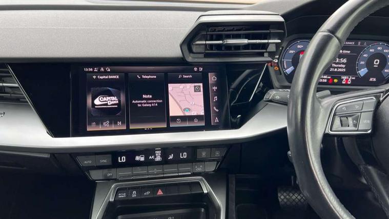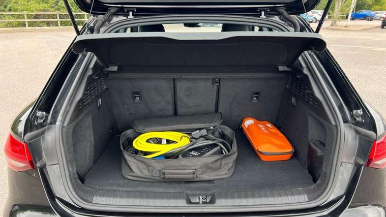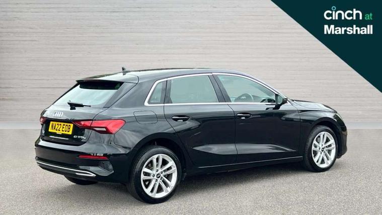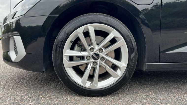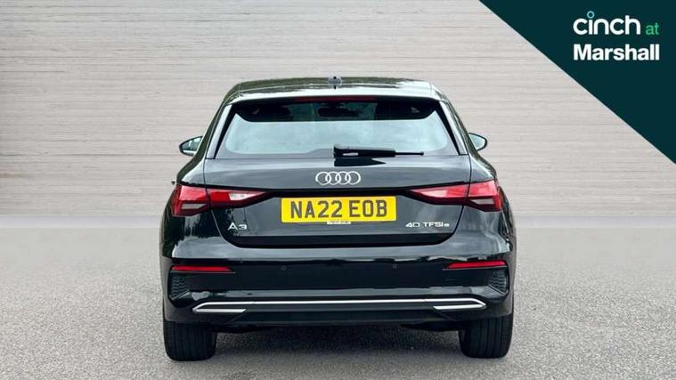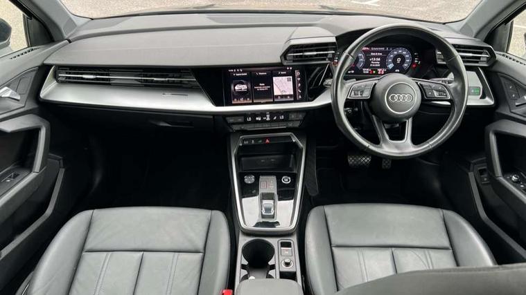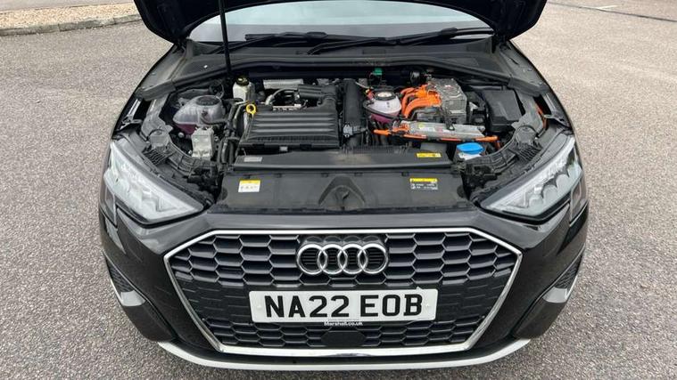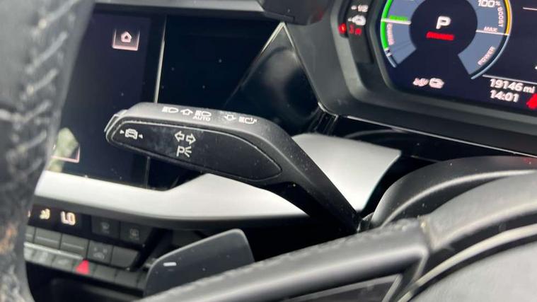 Audi connect emergency call and service, Audi drive select (Auto, Comfort, Dynamic, Efficiency and Individual), Audi smartphone interface, Audi Virtual Cockpit - 10.25" digital and colour instrument cluster, Automatic start/stop system with recuperation, Bluetooth interface, Collision avoidance assistant, Electromechanical power speed sensitive steering, Lane departure warning system, MMI Navigation Plus with high resolution 10.1" colour touch screen display, Service indicator, Trip computer, Voice control system with natural language interaction, 3 pin 10 amp domestic charging cable, 3.6 kw On-board charger, Standard suspension, Type 2 mode 3 32 amp charging cable, Type 2 socket for AC charging, 2xUSB-C connection with data and charging functions, 6 passive loudspeakers, DAB Digital radio, 3rd brake light, Acoustic glass windscreen, Aluminium window trim, Auto dimming frameless rear view mirror, Body colour exterior mirrors, Body colour roof spoiler, Electrically adjustable/heated/folding/auto dimming door mirrors with integrated LED indications + kerb view function for passenger side, Front electric windows, LED daytime running lights, LED headlights and halogen rear lights, Light and rain sensors, Rear electric windows, Rear side wing doors, Rear window, rear door windows and rear side windows in clear glass, Rear wiper, 12V socket and storage compartment in front centre console, 3 seat bench in 2nd row, 40/20/40 split folding rear seat bench with cupholder, Dual zone electronic climate control, Front and rear centre armrest, Front and rear headrests, Front door sill trims with aluminium inlay, Front/rear floor mats, Height and reach adjustable steering wheel, Interior lighting - Front and rear roof module including reading lights, glove compartment light and right hand side, Luggage compartment floor covering, Manual boot compartment lid, Manually adjustable front seats, Seat side bolsters, Single front passenger seat, Steel grey cloth headlining, Twin leather upholstery, Aluminium interior elements pack - A3 Sportback, Sport styling pack - A3 Sportback, 3x3 point rear seat belts, Driver and front passenger airbag with passenger airbag deactivation, Electronic Stabilisation Control (ESC) including ABS, ASR and EDL, First aid kit with warning triangle and 2 safety vests, Front side airbags with head airbags and interaction airbag, Pre-sense front with pedestrian and cyclist detection, Seatbelt monitoring, Tyre pressure loss indicator, Anti theft alarm, Anti-theft wheel bolts, Immobiliser, Manual child locks, Remote control central locking, Inlays with silk effect paint in platinum grey, Tool kit, Tyre repair kit,
