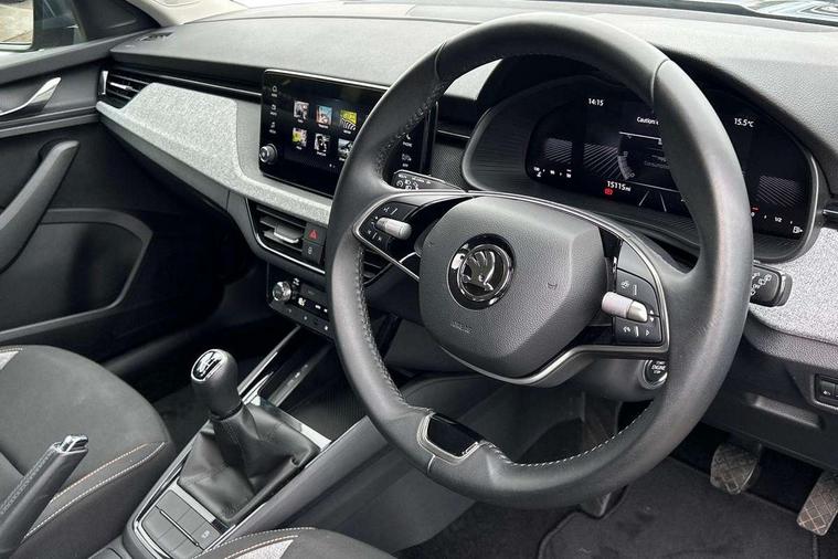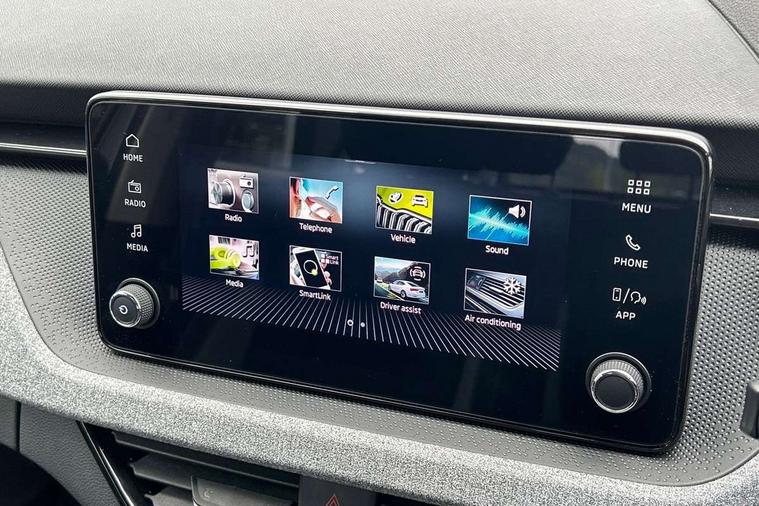 8" Digital display, Advanced driver attention and drowsiness monitor, Bluetooth system, E-call, Front assist system, PAS, Rear parking sensors, Service indicator, Speed limiter, Traffic sign recognition, Wireless smartlink, 4 USB C ports, 8 Speakers, 8.25" Skoda infotainment display, DAB Digital radio, Auto dimming rear view mirror, Automatic headlight control with coming home and leaving home feature, Automatic headlights, Black roof rails, Body colour bumpers, Body colour door mirrors and handles, Chrome grille surround, Front and rear electric windows, Full LED headlights, Heated rear window, LED daytime running lights, LED front turning lights, LED high beam, LED low beam, LED third brake light, Rear side wing doors, Rear wiper, Ticket holder inside windscreen, 12V socket in luggage compartment, 3 seat bench in 2nd row, Black hotstamping, Cargo elements, Chrome inner door handles, Driver and passenger sun visors with vanity mirror, Dual zone climate control, Front and rear roof lights, Front centre armrest, Front head restraints, Glove compartment with illumination, Height adjustable driver seat, Height adjustable front passenger seat, Ice scraper, Inner circulation control with pollen filter, ISOFIX on front passenger seat, Isofix preparation for back seats, Krepp recycled decor inserts, Leather gearknob and handbrake lever, Loft cloth upholstery, Manual lumbar support for front seats, Net package and top tether hooks in boot space, Net under rear shelf, Overhead glasses storage compartment, Pocket on the back of both front seats include mobile phone pockets, Rake/reach adjustable steering wheel, Reading lights, Satin black door inserts, Single front passenger seat, Textile floor mats, Third rear headrest, Top tether for front passenger seat, Umbrella in driver's door, 3x3 point rear seatbelts, Airbags - driver and front passenger, Disc brakes, ESP, Extended and predictive pedestrian/cyclist protection, Front passenger airbag deactivation switch, Front side airbags with curtain airbags, Hill hold control, Manual leather parking brake, Manual rear child locks, One tone horn, Seatbelt reminder for driver an co-driver, Traction control, Tyre pressure monitor, Anti-theft alarm system with interior monitoring, backup horn, towing protection and remote central locking with SAFE system, Anti-theft wheel bolts, Electronic engine immobilizer,