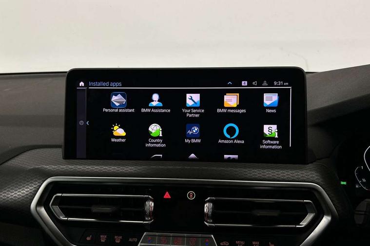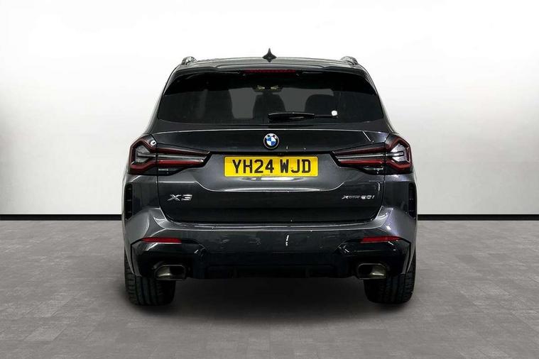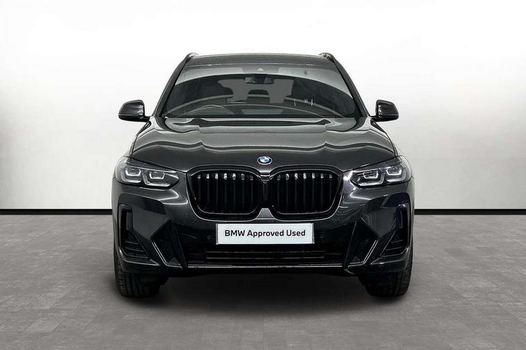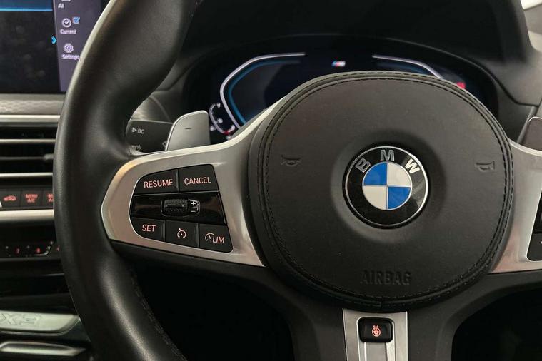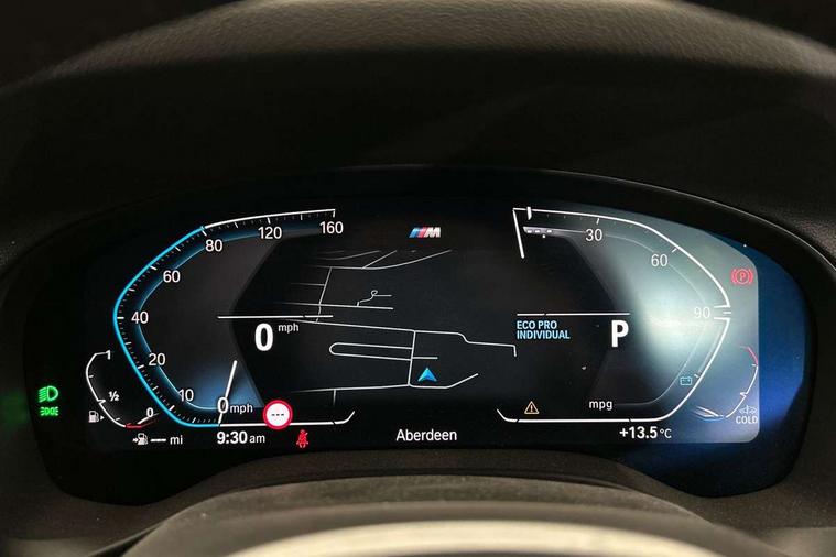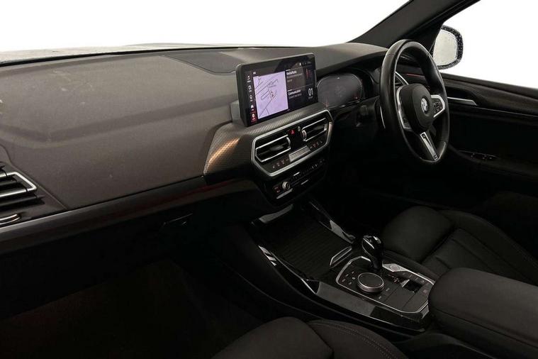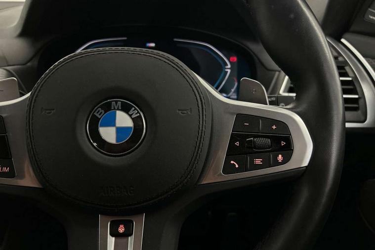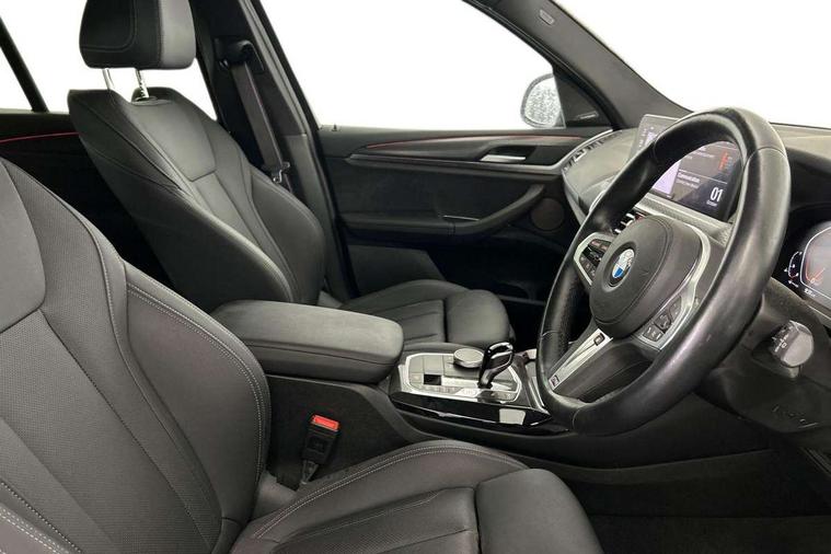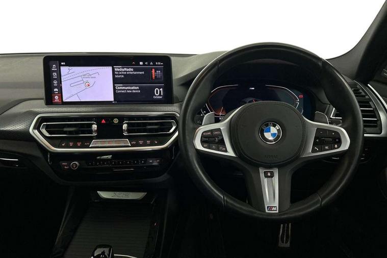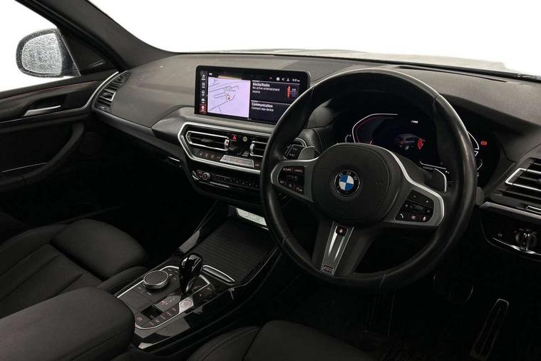 Active Guard, Attentiveness assist, BMW Live Cockpit Professional nav system including 12.3" instrument display + 12.3 high resolution control display, BMW Online services, BMW Teleservices, Brake pad wear indicator in front and rear, Check Control warning system for monitoring of lights and door/luggage compartment open warning, Condition based service - BMW service history, electronic service booklet, integrated owner's handbook, Connected drive services, Electric boot lid, Front/rear Parking distance control, iDrive touch controller with 8 favourite buttons, Instrument cluster with speedometer with mph readout, tachometer, fuel gauge and oil temperature gauge, Lights on warning by audio warning signal when ignition is switched off, Oil sensor for level and grade, warning by check control system, On board computer - average speed+fuel consumption, service interval, clock/date, odometer/trip meter, outside temperature display and ice warning, Optimum shift indicator, Personal Profile - automatic lock when driving away selectable, Run flat indicator, Stop/start system, Variable sports power steering with drive performance control Sport+ mode, Automatic transmission with gearshift paddles, Incorrect fuelling protection, M sport suspension, Multi-link rear suspension, BMW professional radio/CD/MP3, DAB tuner, Acoustic glazing, Automatic windscreen wipers and automatic headlight, Black finish on B pillars, Body colour door handles, Body colour electric adjust heated aspherical door mirrors, Body colour roof mouldings, Body coloured bumpers, Direction indicator, side repeaters, integrated in exterior mirrors, Dynamic brake lights, Exhaust tailpipes - dual, round, split left and right with chrome finisher, Fingertip control / anti-trap function on electric window, Folding wing mirrors with auto dimming, Follow me home headlights, Front and rear bumper system with replaceable deformation elements, Front and rear electric windows, Gloss chrome tailpipes finishers, Green tinted heat insulating glass, Heated windscreen washer jets, High beam assistant, High gloss black shadow line roof rails, High gloss shadowline exterior trim in decorative moulding side frame/recess cover/guide rail/B, C pillars/mirror frame and triangle with mirror base, High level 3rd brake light incorporating LED Technology, Interior rear view electrochromatic mirror with automatic anti dazzle function, LED tail lights, Lightweight engineering, M aerodynamic bodystyling, M Sport entry door sill strips, Model designation, Rain sensor, Rear side wing doors, Rear wing door, Rear wiper, Shark fin antenna, Side exterior M designation badges, Visible VIN plate, Welcome lighting, Windscreen wipers with adjustable interval, 12V power point in luggage area, 12V power socket in front centre console, 2 x USB Type C ports for charging and data transmission (front centre console) and 2 x USB Type C ports for charging (rear centre console), 3 rear headrests, 3 seat bench in 2nd row, 3 zone automatic air conditioning, 4 lashing points to secure luggage, 40:20:40 split folding rear seat with loading system, Ambient lighting, Anthracite headlining, Automatic interior light when door is opened/ignition switched off or via remote key, Floor mats in velour, Foldable storage floor with compartment, Four grab handles integrated in roof lining, Front and rear bottle holders integrated into door trim storage compartments, Front and rear side armrests integrated into door trim, Front centre armrest with storage compartment, Front footwell lights, Front head restraints, Front passenger seat, Front sports seats, Front/rear courtesy lights with soft on/off dimming, Front/rear reading lights, Heated front seats, Isofix rear child seat preparation, Leather gear knob, Lockable glove compartment, Luggage area underfloor compartment, Luggage compartment lighting, M sport leather steering wheel, Multifunction steering wheel, Parcel shelf removeable and storable under boot floor, Reach and rake adjustable steering column, Rear centre armrest with 2 cupholders, Removable / retractable luggage cover, Slope adjustable rear seats, Storage compartment in rear centre console and front/rear door trims, Sun visors with vanity mirrors and ticket pocket, Toolkit located in luggage compartment, Two front cupholders with removable oddments tray/lid, Connected pro pack - X3, ADB - Automatic Differential Brake, Anti-lock braking system (ABS) with brake assist, Automatic Stability Control (ASC), Battery safety cut-off, BMW emergency call, Brake drying, Brake energy regeneration, Braking pre-tensioning, Child locks on rear doors, Cornering brake control (CBC), Crash Sensor - activation of central locking release, hazard warning light and interior lighting, Deactivation of fuel pump in the event of a crash, Driver and front passenger front and side airbags with passenger deactivation and ITS front and rear head airbags, Driver and front passenger knee airbag, DSC+, Dynamic brake control, Dynamic Traction Control - DTC, Electromechanical parking brake, Hill descent control, Hill start assist, Seatbelt security check for front seats, Side impact protection, Three point seatbelts to all seats with front and outer rear pyrotechnic belt tensioners and seat belt force limiters, Two tone horn, Tyre pressure sensor, Ventilated front and rear disc brakes, Warning triangle and first aid kit, Central locking switch for all doors, fuel filler cap and luggage compartment, Electronic engine immobiliser, Locking wheel nuts, Remote control including two integrated key - one button for open/close all lockable content, windows and separate button for open luggage compartment, Remote control Thatcham category 1 alarm, Start/stop button with Comfort Go keyless engine start and auto Start/stop deactivation button, Low rolling resistance tyres,