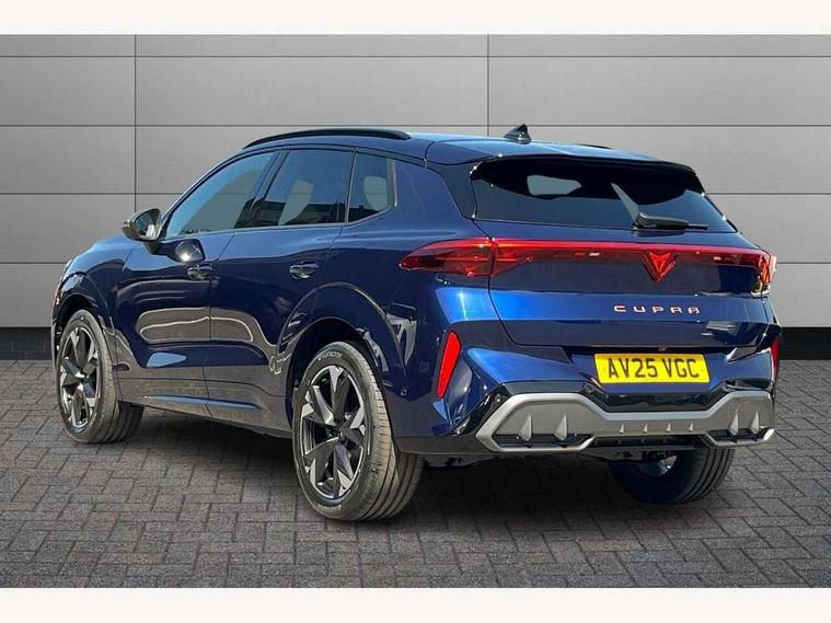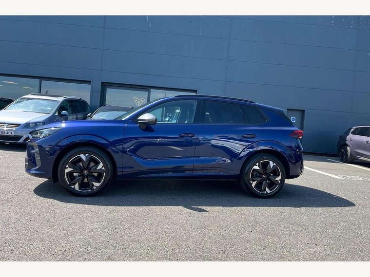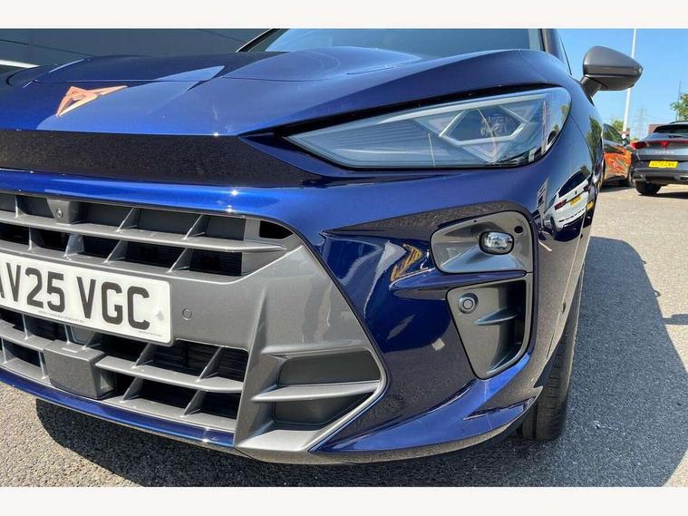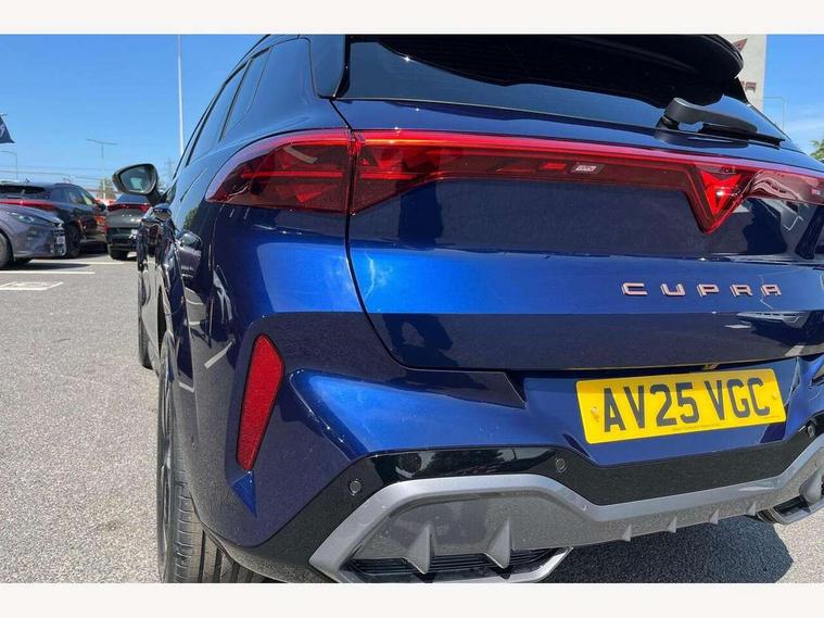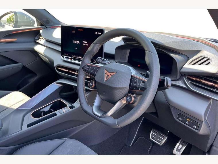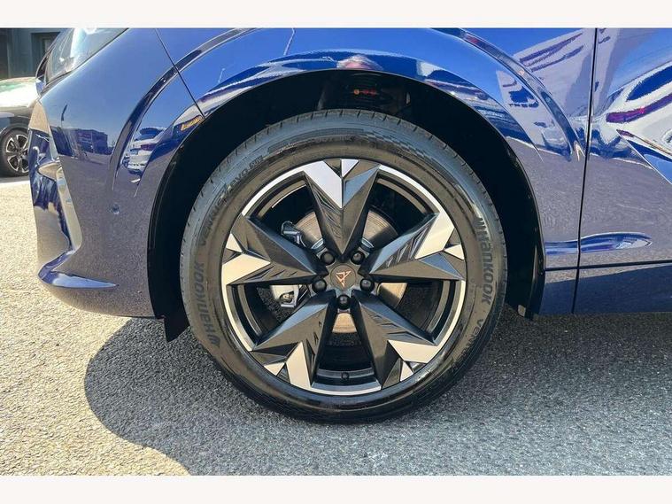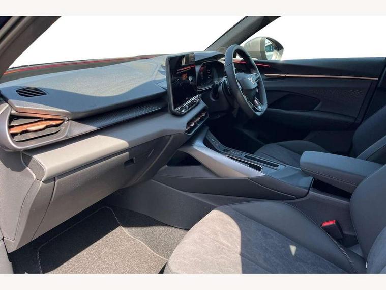 10.25" digital cockpit and configurable dashboard, Adaptive cruise control with follow-to-stop and speed limiter, Advanced driver alert system, Advanced lane assist with semi-automatic vehicle control in a medical emergency and traffic jam assist, Driving profile selection and conventional shock absorber, Dynamic road sign display, E-call, Electric tailgate with virtual pedal, Emergency steering support with turn assist, Four x USB Type C ports (2 in front and 2 in rear), Front and rear parking sensors, Front assist (Forward collision warning with automatic braking) with multifunction camera and front cross traffic assist, Head up Display, Intelligent park assist, Media system with Nav - 12.9" touch display, voice control, full link phone (wired/wireless), DAB and Steering wheel mounted controls, Rear traffic assist, Side and exit assist, Speed sensitive power steering, Start/stop system with regenerative braking, Top view camera (front camera, rear camera, 2 side cameras), Wireless phone charger, Auto dimming rear view mirror, Black roof rails, CUPRA 3D rear lights with ceremony & swiping indicator and illuminated logo, Dark tinted rear windows, Daytime running lights with automatic headlight control and Coming and Leaving home function, Door mirrors with memory function and lowing function on passenger mirror, Dynamic headlight range control, Electric front/rear windows, Electrically adjustable, heated and folding door mirrors, Front fog lamps with cornering function, Heat reflecting windscreen, High beam assist, LED headlamps with signature "CUPRA LED", Rain sensing wipers, Rear fog light on one side, back up light on both sides, Rear side wing doors, Rear wash/wipe, Third brake light, Welcome lights (within exterior mirror housing), 3 seat bench in 2nd row, Black roof lining, Cupra sports pedals, Dinamica cloth upholstery, Driver seat memory function, Electrically adjustable front seats including lumbar support, Front and rear head restraints, Front and rear reading lights X 4, Front centre armrest, Heated front seats, Heated leather wrapped multi function sports steering wheel with tiptronic, Illuminated interior front door sills, Isofix, Operating voltage 12V, Single front passenger seat, Smart wraparound interior lighting, Sunvisors with illuminated mirror, Three zone climate control with control panel in rear, Unsplit rear seat bench, split folding backrest, with centre armrest, Variable luggage/load compartment floor, 3 point seatbelts in front with pretensioner and electric height adjustment, 3 point seatbelts on all rear seats, Brake control system - ESC and brake booster, Child proof door locks, Driver and front passenger airbags, Electronic parking brake, Front and rear disc brakes, Front interaction airbag, Front passenger airbag deactivation switch, Front side airbags with curtain airbags, Pre-crash front and rear seat belt tensioner, window closure and hazard lights, Tyre pressure monitoring system, Visual and acoustic seat belt reminder, electric contact in front and rear, Anti theft alarm, Keyless locking and starting system with keyless access, Locking wheel bolts, Black decorative trims, Chrome interior detailing, 19" Spectrum exclusive machine alloy wheels, Tool kit,