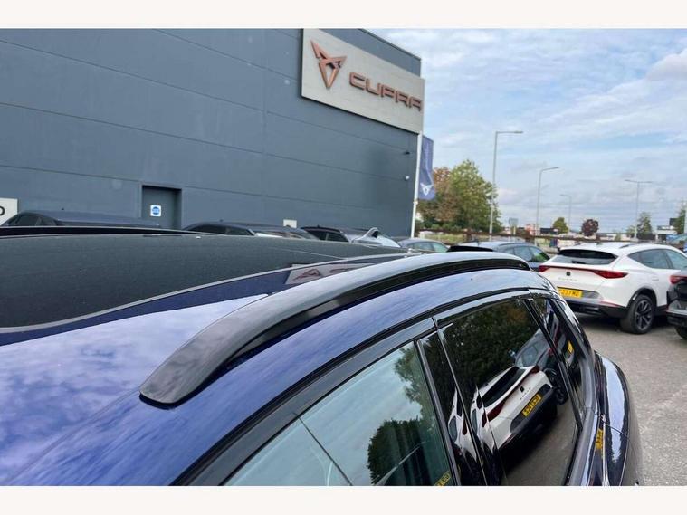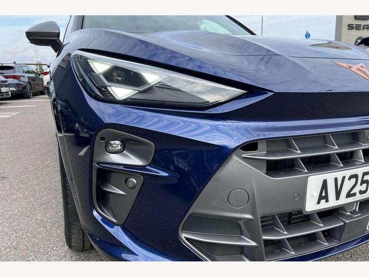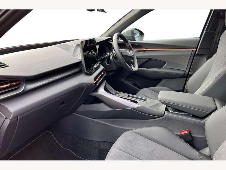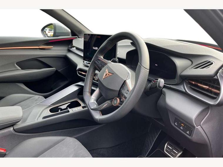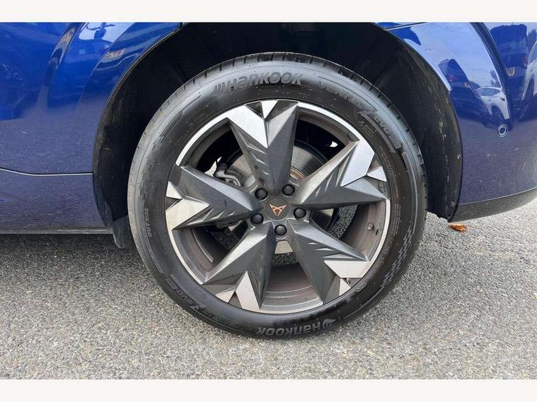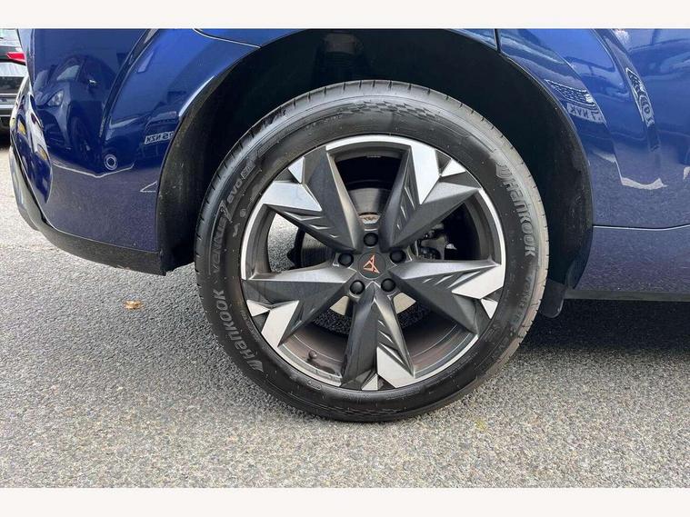 10.25" digital cockpit and configurable dashboard, Adaptive cruise control with follow-to-stop and speed limiter, Advanced driver alert system, Advanced lane assist with semi-automatic vehicle control in a medical emergency and traffic jam assist, Driving profile selection and conventional shock absorber, Dynamic road sign display, E-call, Electric tailgate with virtual pedal, Emergency steering support with turn assist, Four x USB Type C ports (2 in front and 2 in rear), Front and rear parking sensors, Front assist (Forward collision warning with automatic braking) with multifunction camera and front cross traffic assist, Head up Display, Intelligent park assist, Media system with Nav - 12.9" touch display, voice control, full link phone (wired/wireless), DAB and Steering wheel mounted controls, Rear traffic assist, Side and exit assist, Speed sensitive power steering, Start/stop system with regenerative braking, Top view camera (front camera, rear camera, 2 side cameras), Wireless phone charger, Auto dimming rear view mirror, Black roof rails, CUPRA 3D rear lights with ceremony & swiping indicator and illuminated logo, Dark tinted rear windows, Daytime running lights with automatic headlight control and Coming and Leaving home function, Door mirrors with memory function and lowing function on passenger mirror, Dynamic headlight range control, Electric front/rear windows, Electrically adjustable, heated and folding door mirrors, Front fog lamps with cornering function, Heat reflecting windscreen, High beam assist, LED headlamps with signature "CUPRA LED", Rain sensing wipers, Rear fog light on one side, back up light on both sides, Rear side wing doors, Rear wash/wipe, Third brake light, Welcome lights (within exterior mirror housing), 3 seat bench in 2nd row, Black roof lining, Cupra sports pedals, Dinamica cloth upholstery, Driver seat memory function, Electrically adjustable front seats including lumbar support, Front and rear head restraints, Front and rear reading lights X 4, Front centre armrest, Heated front seats, Heated leather wrapped multi function sports steering wheel with tiptronic, Illuminated interior front door sills, Isofix, Operating voltage 12V, Single front passenger seat, Smart wraparound interior lighting, Sunvisors with illuminated mirror, Three zone climate control with control panel in rear, Unsplit rear seat bench, split folding backrest, with centre armrest, Variable luggage/load compartment floor, 3 point seatbelts in front with pretensioner and electric height adjustment, 3 point seatbelts on all rear seats, Brake control system - ESC and brake booster, Child proof door locks, Driver and front passenger airbags, Electronic parking brake, Front and rear disc brakes, Front interaction airbag, Front passenger airbag deactivation switch, Front side airbags with curtain airbags, Pre-crash front and rear seat belt tensioner, window closure and hazard lights, Tyre pressure monitoring system, Visual and acoustic seat belt reminder, electric contact in front and rear, Anti theft alarm, Keyless locking and starting system with keyless access, Locking wheel bolts, Black decorative trims, Chrome interior detailing, 19" Spectrum exclusive machine alloy wheels, Tool kit,