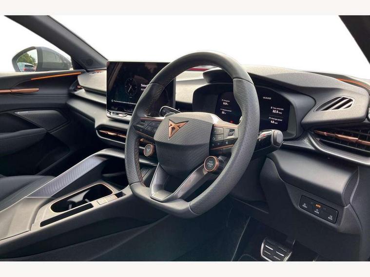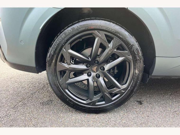 10.25" digital cockpit and configurable dashboard, Adaptive cruise control with follow-to-stop and speed limiter, Advanced driver alert system, Advanced lane assist with semi-automatic vehicle control in a medical emergency and traffic jam assist, Driving profile selection (DCC- Comfort, performance, CUPRA, Individual, Dynamic road sign display, E-call, Electric tailgate with virtual pedal, Emergency steering support with turn assist, Four x USB Type C ports (2 in front and 2 in rear), Front and rear parking sensors, Front assist (Forward collision warning with automatic braking) with multifunction camera and front cross traffic assist, Head up Display, Intelligent park assist, Media system with Nav - 12.9" touch display, voice control, full link phone (wired/wireless), DAB and Steering wheel mounted controls, Rear traffic assist, Side and exit assist, Speed sensitive power steering, Start/stop system with regenerative braking, Top view camera (front camera, rear camera, 2 side cameras), Wireless phone charger, Adaptive chassis control with a 2-valve shock absorber, Immersive by Sennheiser TM - 10 speakers, 1 central speaker, 1 subwoofer, Americas Cup Edition - lasered logo in B pillar, Auto dimming rear view mirror, Black roof rails, CUPRA 3D rear lights with ceremony & swiping indicator and illuminated logo, Dark tinted rear windows, Daytime running lights with automatic headlight control and Coming and Leaving home function, Door mirrors with memory function and lowing function on passenger mirror, Electric front/rear windows, Electrically adjustable, heated and folding door mirrors, Front fog lamps with cornering function, Heat reflecting windscreen, High beam assist, Matte paint, Panoramic sunroof, Rain sensing wipers, Rear fog light on one side, back up light on both sides, Rear side wing doors, Rear wash/wipe, Third brake light, Welcome lights (within exterior mirror housing), 3 seat bench in 2nd row, Black roof lining, Cupra sports pedals, Driver seat memory function, Electrically adjustable front seats including lumbar support, Front and rear head restraints, Front and rear reading lights X 4, Front centre armrest, Heated front seats, Heated leather wrapped multi function sports steering wheel with tiptronic, Illuminated interior front door sills, Isofix, Leather upholstery, Operating voltage 12V, Single front passenger seat, Smart wraparound interior lighting, Sunvisors with illuminated mirror, Three zone climate control with control panel in rear, Unsplit rear seat bench, split folding backrest, with centre armrest, Variable luggage/load compartment floor, Pure performance pack - Terramar, 3 point seatbelts in front with pretensioner and electric height adjustment, 3 point seatbelts on all rear seats, Brake control system - ESC and brake booster, Child proof door locks, Driver and front passenger airbags, Electronic parking brake, Front and rear disc brakes, Front interaction airbag, Front passenger airbag deactivation switch, Front side airbags with curtain airbags, Pre-crash front and rear seat belt tensioner, window closure and hazard lights, Tyre pressure monitoring system, Visual and acoustic seat belt reminder, electric contact in front and rear, Anti theft alarm, Keyless locking and starting system with keyless access, Locking wheel bolts, Black decorative trims, Chrome interior detailing, 20" Vortex exclusive sportblack matte alloy wheels, Breakdown kit, Performance tyres in polmer coating, Tool kit,