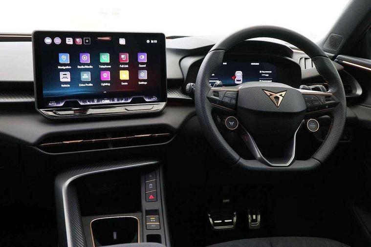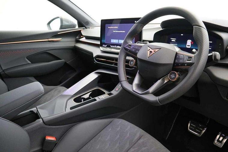 10.25" digital cockpit and configurable dashboard, Adaptive cruise control with follow-to-stop and speed limiter, Advanced driver alert system, Advanced lane assist with semi-automatic vehicle control in a medical emergency and traffic jam assist, Driving profile selection and conventional shock absorber, Dynamic road sign display, E-call, Electric tailgate with virtual pedal, Emergency steering support with turn assist, Four x USB Type C ports (2 in front and 2 in rear), Front and rear parking sensors, Front assist (Forward collision warning with automatic braking) with multifunction camera and front cross traffic assist, Head up Display, Intelligent park assist, Media system with Nav - 12.9" touch display, voice control, full link phone (wired/wireless), DAB and Steering wheel mounted controls, Rear traffic assist, Side and exit assist, Speed sensitive power steering, Start/stop system with regenerative braking, Top view camera (front camera, rear camera, 2 side cameras), Wireless phone charger, Auto dimming rear view mirror, Black roof rails, CUPRA 3D rear lights with ceremony & swiping indicator and illuminated logo, Dark tinted rear windows, Daytime running lights with automatic headlight control and Coming and Leaving home function, Door mirrors with memory function and lowing function on passenger mirror, Dynamic headlight range control, Electric front/rear windows, Electrically adjustable, heated and folding door mirrors, Front fog lamps with cornering function, Heat reflecting windscreen, High beam assist, LED headlamps with signature "CUPRA LED", Rain sensing wipers, Rear fog light on one side, back up light on both sides, Rear side wing doors, Rear wash/wipe, Third brake light, Welcome lights (within exterior mirror housing), 3 seat bench in 2nd row, Black roof lining, Cupra sports pedals, Dinamica cloth upholstery, Driver seat memory function, Electrically adjustable front seats including lumbar support, Front and rear head restraints, Front and rear reading lights X 4, Front centre armrest, Heated front seats, Heated leather wrapped multi function sports steering wheel with tiptronic, Illuminated interior front door sills, Isofix, Operating voltage 12V, Single front passenger seat, Smart wraparound interior lighting, Sunvisors with illuminated mirror, Three zone climate control with control panel in rear, Unsplit rear seat bench, split folding backrest, with centre armrest, Variable luggage/load compartment floor, 3 point seatbelts in front with pretensioner and electric height adjustment, 3 point seatbelts on all rear seats, Brake control system - ESC and brake booster, Child proof door locks, Driver and front passenger airbags, Electronic parking brake, Front and rear disc brakes, Front interaction airbag, Front passenger airbag deactivation switch, Front side airbags with curtain airbags, Pre-crash front and rear seat belt tensioner, window closure and hazard lights, Tyre pressure monitoring system, Visual and acoustic seat belt reminder, electric contact in front and rear, Anti theft alarm, Keyless locking and starting system with keyless access, Locking wheel bolts, Black decorative trims, Chrome interior detailing, 19" Spectrum exclusive machine alloy wheels, Tool kit,