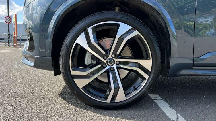 12.3" Progressive Driver Display, 360 degree surround view parking camera with side proximity sensors, 9" centre console portrait touch screen, Adjustable steering wheel force, Bluetooth hands free telephone connection, Driver alert control with lane keeping aid, Driver assistance (pilot assist and adaptive cruise control), Driver awareness - Blind spot information system with steer assist, cross traffic alert with autobrake and rear collision warning and mitigation, Emergency call service, Front and rear park assist, Google Automotive Services - Navigation with Voice recoginition and google assistant, Handsfree power tailgate opening and closing, Oncoming Lane Mitigation, Power operated tailgate, Service interval indicator, Speed limiter, Speed sensitive steering, Trip computer, Volvo on call, Wireless Mobile Phone Charger, 8 speed automatic transmission with start/stop + manual change functions, Active four C chassis - four corner adaptive dampers with electronic air suspension, DAB Radio (Digital Audio Broadcasting), Premium Sound by Bowers and Wilkins, dirac live, dolby pro logic II surround sound, 18 speakers/1400W output and fresh air subwoofer, Steering wheel remote infotainment controls, Active bending headlights with adaptive shadow technology, Adaptive brake lights with high level LED brake lights, Auto dimming interior + exterior mirrors, Auto folding and heated power door mirrors, Automatic headlight levelling system, Automatic LED Headlights + Active high beam incorporating daytime running lights, Body colour bumpers, Dark tinted windows - rear side windows and rear screen, Front and rear power windows, Headlight cleaning system, High gloss black door mirrors and window surround, High gloss black front and rear bumper deco, High gloss black mesh front grille with surround, Home safe and approach lighting, Integrated roof rails in high gloss black, LED front fog lights with cornering light function, Power glass tilt and slide panoramic sunroof with sun curtain, Puddle lights, Rain sensor with automatic windscreen wiper activation, Rear side wing doors, Rear wash/wipe with intermittent wipe setting, Roof antenna, Roof spoiler, Visible VIN plate, 12V socket front tunnel console, rear passenger compartment and cargo area, 2 seat bench in 3rd row, 2nd Row centre armrest with and cupholders, 3 seat bench in 2nd row, 4 zone electronic climate control with Clean zone air quality system + pollen filter, A-pillar parking ticket holder, Advanced interior air cleaner PM2.5, Air conditioning for 3rd row of seats, Ambient door and instrument panel lighting, B Pillar ventilation, Bright metal luggage threshold, Centre console cupholders and storage, Floor mats, Front and rear door pocket and front cupholder illumination, Front and rear reading lights, Theatre lighting and centre armrest storage illumination, Front footwell and side step illumination, Front headrests, Front seat cushion extensions, Heated front seats, Heated rear seats, Heated steering wheel, Height/reach adjustable steering column, Illuminated front and rear tread plates, Illuminated luggage compartment, Illuminated tailgate, Illuminated vanity mirrors + ticket holder, Illumination lockable glovebox compartment, Integrated sun curtains in rear doors, Isofix outer rear child seat preparation in 2nd row, Load protection net, Luggage compartment divider with grocery bag holder, Outboard armrest with cupholder and storage for third row passengers, Power driver seat with multi directional lumbar support and memory for seat and exterior mirrors, Power folding 2nd row headrests, Power passenger seat with multi directional lumbar support and memory, Rear footwell and side step illumination, Rear headrests, Semi automatic load cover, Single front passenger seat, Underfloor luggage compartment storage, 7 three point seatbelts, City safety with steering support includes pedestrian, cyclist and large animal detection and front collision warning with full auto brake, Drivers knee airbag, Dual stage driver/passenger airbags, First aid kit, Front seats SIPS airbags, Hill descent control - off drive mode, Hill start assist, IC (Inflatable Curtains) - Full Length, Passenger airbag cut-off switch, Power child locks on rear doors, Power parking brake with auto hold function, Road sign information display, Run off Road Mitigation, Run off Road Protection, Seatbelt reminder and pretensioners for all seats, SIPS (Side Impact Protection System), Slippery road and hazard light alert, Stability and Traction Control with Spin control, Engine Drag Control and Corner Traction Control, Tyre pressure monitoring system, Vehicle deceleration control with Anti-lock Brake System, Electronic Brake Distribution and Emergency Brake Assist, Warning triangle, WHIPS whiplash protection system - front, Anti-theft alarm including immobiliser/volume sensor + level sensor, Care key with user defined top speed, Key integrated remote control central locking + fuel flap with deadlocking system and auto open/close power windows, Keyless drive includes keyless entry and keyless start, Locking wheel nuts, Private locking for glovebox and tailgate, Tailored Instrument Panel and Door Tops with Contrast Stitching, Tempa spare wheel and jack,