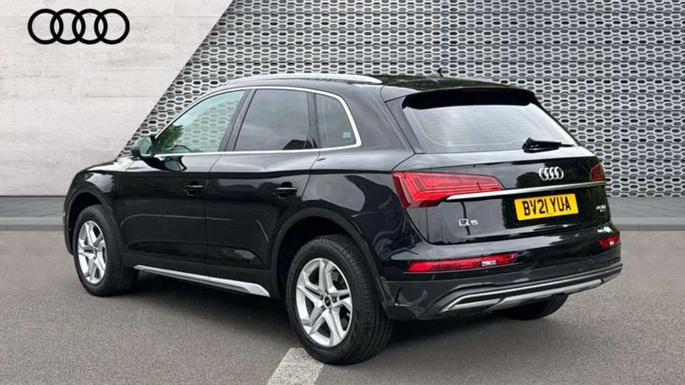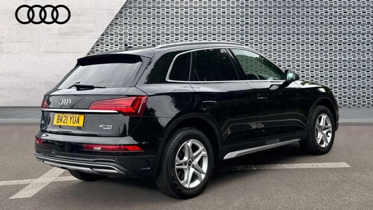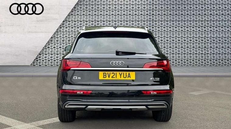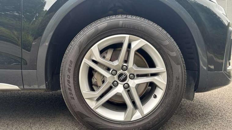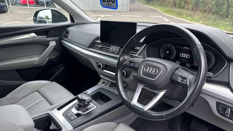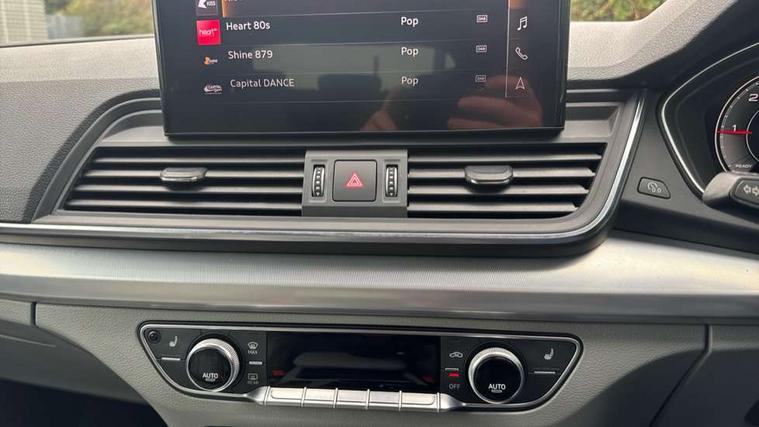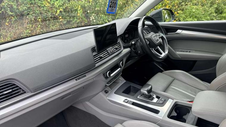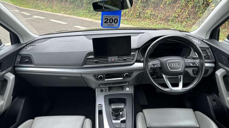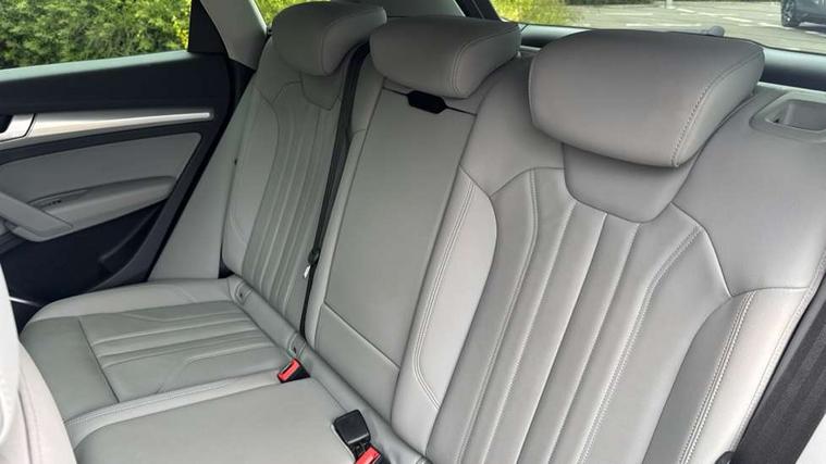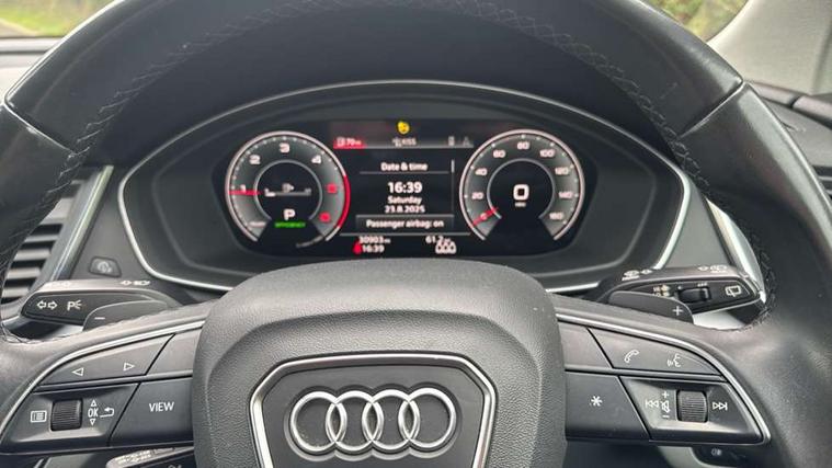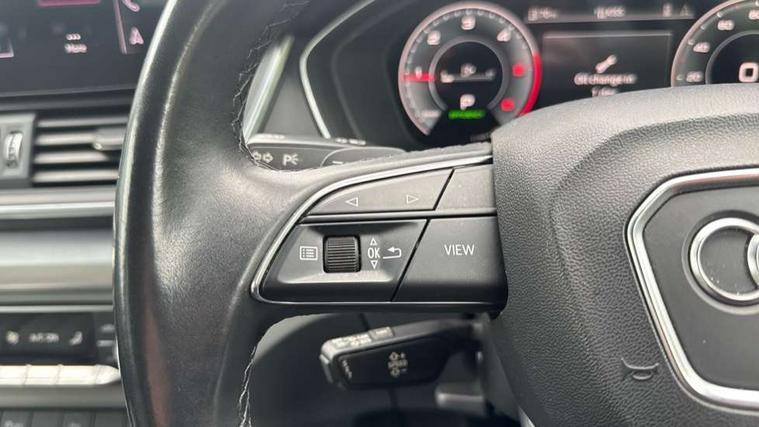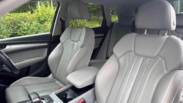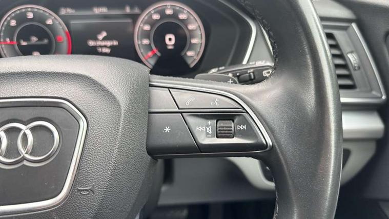 Amazon alexa Integration, Audi connect safety and service (e-call), Audi drive select, Audi virtual cockpit plus with 12.3" screen and three different layout designs, Audi wireless smartphone interface, Automatic start-stop system with coasting functionality and efficiency programme, Cruise control + speed limiter, Electro - mechanical power assisted steering, MMI navigation plus with 10.1" touch screen, Mobile telephone preparation - bluetooth interface, Power tailgate, Service interval indicator, Voice control system with Audi hotword activation "Hey Audi", Diesel particulate filter, Dynamic suspension, Quattro on demand, 2 USB charging ports, DAB Digital radio, Acoustic windscreen, Air inlets in matt titanium black with blades in matt aluminium silver, Aluminium roof rails, Auto dimming rear view mirror, Automatic headlight adjustment, Automatic headlights and windscreen wipers, Body colour bumpers, Body colour door mirrors, Chrome plated exhaust trims, Door sills in Selenite silver, Electric adjustable/heated/folding door mirrors, Front and rear electric windows, LED headlights and LED tail lights, Lower bumpers painted in contrast Manhattan grey, Matt selenite silver underbody protection, Matt twilight grey radiator grille with chrome vertical struts, Rear chrome trim strip below lights, Rear diffuser strip in selenite silver, Rear spoiler, Rear wiper, Roof bars, 3 rear headrests, 3 spoke multifunction leather steering wheel with shift paddles, 40:20:40 split folding rear seat with rear centre armrest, Deluxe 3 zone electronic climate control, Door sills trims with aluminium inlays, Front centre armrest, Front/rear floor mats, Heated front seats, Height adjustable front head restraints, Height/reach adjustable steering column, ISOFIX child seat mounting and top tether, Manual seat adjustment with 4-way electric lumbar support, Removable luggage compartment floor, Silver cloth headlining, Sunvisors with vanity mirrors, Trunk roller cover, Twin leather upholstery + front sports seats, High gloss pack - Q5, LED interior light pack - Q5, 3 point seatbelts on all seats, 6 airbags - Driver, front passenger, curtain and side airbags, Electrically operated child locks on rear doors, Electromechanical parking brake, Electronic stabilisation control including ABS, ASR and EDL, Front passenger airbag deactivation, Hill descent control, Hill hold assist, Multi collision brake assist, Pop-up bonnet for pedestrian protection, Pre sense city, Seat belt force limiter, Seatbelt monitoring, Tyre pressure warning, Warning triangle and first aid kit, Anti theft alarm, Anti-theft wheel bolts, Keyless Go access/ignition system, Aluminium rhombus inlay, Tool kit,