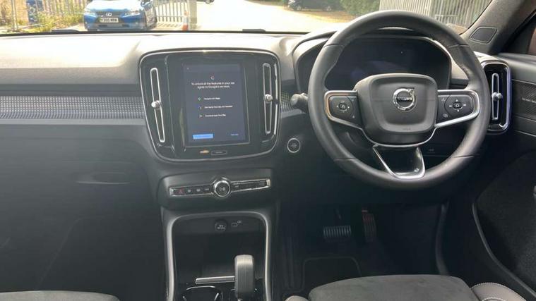 12.3" Progressive Driver Display, 360 degree surround view parking camera with side proximity sensors, 9" centre console portrait touch screen, Adjustable steering wheel force, Android auto (Wired), Apple carplay (wired), Bluetooth handsfree system, Driver alert control, Driver assistance (pilot assist and adaptive cruise control), Driver awareness - Blind spot information system with steer assist, cross traffic alert with autobrake and rear collision warning and mitigation, E-call, Front park assist, Google automotive services - Enabled entertainment apps, navigation with google maps, voice recognition with google assistant, Hands free power tailgate, Intelligent speed assistance, Lane keeping aid, Oncoming Lane Mitigation, Rear park assist, Speed sensitive steering, Volvo cars services with app - Driving journal, emergency and breakdown call, engine remote start, remote door locking/unlocking and vehicle dashboard, Wireless/Inductive Mobile Phone Charging, Automatic transmission with start/stop and manual change functions, Dynamic chassis, DAB Digital radio, Premium Sound by Harman Kardon, Dolby Pro Logic II Surround Sound, Dirac Unison, 12 speakers/600W and subwoofer, Steering wheel mounted remote controls, Active bending pixel LED headlights with adaptive shadow technology, Active high beam incorporating daytime running lights, Adaptive brake lights with high level LED brake lights, Auto dimming feature for exterior door mirrors, Auto dimming interior mirror, Automatic headlamp levelling, Dark tinted windows - rear side windows and rear screen, Front aluminium tread plates, Front and rear electric windows, Headlight cleaning system, High gloss black front and rear skid plate, High gloss black front bumper deco, High gloss black mesh front grille with high gloss black surround, High gloss black window trim, Home safe and approach lighting, Integrated roof rails in high gloss black, LED front fog lights with cornering function, Power glass tilt and slide panoramic sunroof with sun curtain, Puddle lights, Rain sensor with automatic windscreen wiper activation, Rear side wing doors, Rear wiper, Roof antenna, Roof spoiler, Visible VIN plate, 12V socket in front tunnel console and luggage compartment, 2-Zone electronic climate control with CleanZone air quality system and pollen filter, 3 seat bench in 2nd row, 3 Spoke tailored steering wheel with chrome trim, 60/40 versatile split folding rear seat, Centre console cupholders and storage, Flexible load floor and grocery bag holder, Floor mats, Front cabin courtesy lights, Front door pocket, front cupholder, ambient front door, rear reading, rear courtesy, instrument panel and tailgate lighting, Front footwell illumination, Front headrests, Front reading lights, Front seat cushion extensions, Front side step illumination (under door), Glovebox bag hook, Heated front seats, Height/reach adjustable steering column, High gloss centre tunnel deco, Illuminated glovebox, Illuminated luggage compartment, Illuminated vanity mirrors + ticket holder, Integrated waste bin, Isofix attachments on outer rear seats, Load cover, Load protection net, Multi directional lumbar support for driver and passenger seat, Power driver seat with memory + exterior mirrors memory, Power folding rear headrests, Power passenger seat, Rear armrest with cupholders, Single front passenger seat, Underfloor cargo storage, Climate pack without heated front seats - XC40, 3x3 point rear seatbelts, City safety with steering support with Pedestrian + cyclist + front collision warning with full auto brake and rear auto brake, Driver and passenger airbags, Drivers knee airbag, Electronic parking brake with auto hold, First aid kit, Front and outer rear seatbelt reminder and pretensioners, Front seats SIPS airbags, Hill descent control, Hill start assist, Inflatable curtain, Passenger airbag cut-off device, Power child locks on rear doors, Road sign information display, Run off Road Protection, SIPS (Side Impact Protection System), Slippery road and hazard light alert, Stability and Traction Control with Spin control, Engine Drag Control and Corner Traction Control, Tyre pressure monitoring system, Vehicle deceleration control with Anti-lock Brake System, Electronic Brake Distribution and Emergency Brake Assist, Warning triangle, WHIPS whiplash protection system - front, 2 x Key integrated remote control central locking including with deadlocking system and auto open/close windows and sunroof, Anti-theft alarm including immobiliser/volume sensor + level sensor, Keyless drive includes keyless entry and keyless start, Locking wheel nuts,