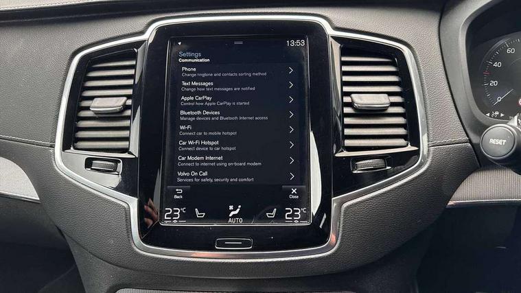 12.3" Active TFT crystal driver's instrument display, 9" centre console portrait touch screen, Adjustable steering wheel force, Bluetooth hands free telephone connection, Drive mode settings, Driver alert control with lane keeping aid, Driver assistance (pilot assist and adaptive cruise control), Driver awareness - Blind spot information system with steer assist, cross traffic alert with autobrake and rear collision warning and mitigation, Emergency call service, Front and rear park assist, Handsfree power tailgate opening and closing, Oncoming Lane Mitigation, Remote engine start, Sensus navigation with European mapping and traffic information, Service interval indicator, Speed limiter, Speed sensitive steering, Trip computer, Voice activated control for key functions, Volvo on call, 8 speed automatic transmission with start/stop + manual change functions, All wheel drive system, Touring chassis, DAB Radio (Digital Audio Broadcasting), Steering wheel remote infotainment controls, Adaptive brake lights with high level LED brake lights, Auto dimming interior + exterior mirrors, Automatic headlight levelling system, Automatic LED Headlights + Active high beam incorporating daytime running lights, Body colour bumpers, Dark tinted windows for rear side windows and cargo area, Dual integrated exhaust pipes with high gloss black surround, Electric folding and heated door mirrors, Front and rear power windows, Heated washer nozzles, High gloss black Deco lower front bumper, High gloss black door mirrors, High gloss black lower rear valance, High gloss black mesh front grille with surround, High gloss black window surround, Home safe and approach lighting, Integrated roof rails in high gloss black, Puddle lights, Rain sensor with automatic windscreen wiper activation, Rear side wing doors, Rear wash/wipe with intermittent wipe setting, Roof antenna, Roof spoiler, Visible VIN plate, 12V socket front tunnel console, rear passenger compartment and cargo area, 2 seat bench in 3rd row, 3 seat bench in 2nd row, A-pillar parking ticket holder, Ambient door and instrument panel lighting, B Pillar ventilation, Bright metal luggage threshold, Cargo divider with grocery bag holder, Centre console cupholders and storage, Charcoal headlining, Driver's side lower dashboard storage compartment, Front and rear door pocket and front cupholder illumination, Front footwell and side step illumination, Front headrests, Front seat cushion extensions, Heated front seats, Height/reach adjustable steering column, Illuminated front and rear tread plates, Illuminated luggage compartment, Illuminated tailgate, Illuminated vanity mirrors + ticket holder, Illumination lockable glovebox compartment, Integrated sun curtains in rear doors, Load protection net, Lower dashboard, tunnel console, Lower door panel in blond, Multicolour theatre lighting, Outboard armrest with cupholder and storage for third row passengers, Power driver seat with multi directional lumbar support and memory for seat and exterior mirrors, Power folding 2nd row headrests, Power passenger seat with multi directional lumbar support and memory, Rear footwell and side step illumination, Rear headrests, Semi automatic load cover, Single front passenger seat, Sports floor mats, Sports leather gear knob, Sports pedals, Underfloor cargo storage, 7 three point seatbelts, City safety includes pedestrian, cyclist and large animal detection and front collision warning with full auto brake, Drivers knee airbag, Dual stage driver/passenger airbags, First aid kit, Front seats SIPS airbags, Hill descent control, Hill start assist, IC (Inflatable Curtains) - Full Length, Passenger airbag cut-off switch, Power parking brake with auto hold function, Road sign information display, Run off Road Mitigation, Run off Road Protection, Seatbelt reminder and pretensioners for all seats, SIPS (Side Impact Protection System), Slippery road and hazard light alert, Stability and Traction Control with Spin control, Engine Drag Control and Corner Traction Control, Tyre pressure monitoring system, Vehicle deceleration control with Anti-lock Brake System, Electronic Brake Distribution and Emergency Brake Assist, Warning triangle, WHIPS whiplash protection system - front, Anti-theft alarm including immobiliser/volume sensor + level sensor, Care key with user defined top speed, Key integrated remote control central locking + fuel flap with deadlocking system and auto open/close power windows, Keyless drive (includes keyless entry and keyless start) with remote tag, Locking wheel nuts, Private locking for glovebox and tailgate, Metal mesh inlays, Tailored Instrument Panel and Door Tops with Contrast Stitching, Tempa spare wheel and jack,