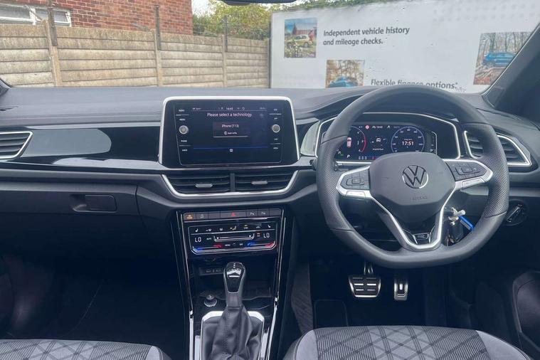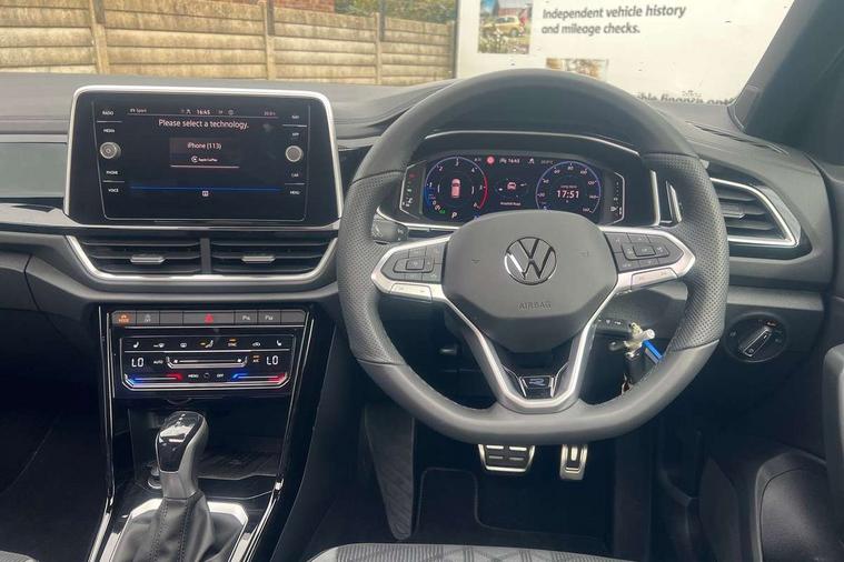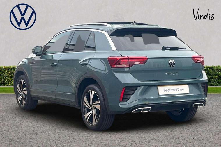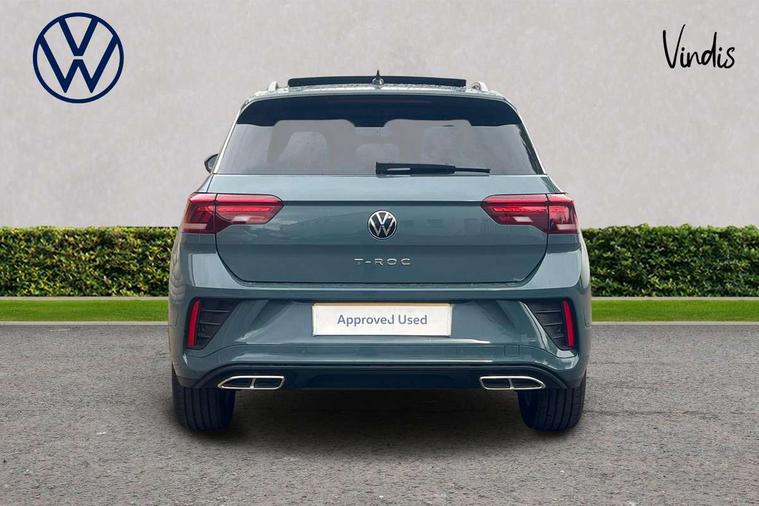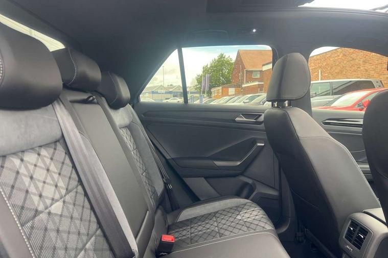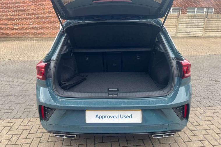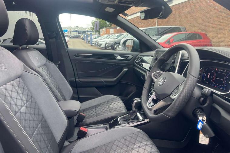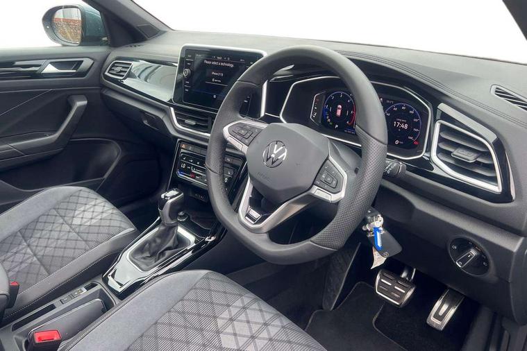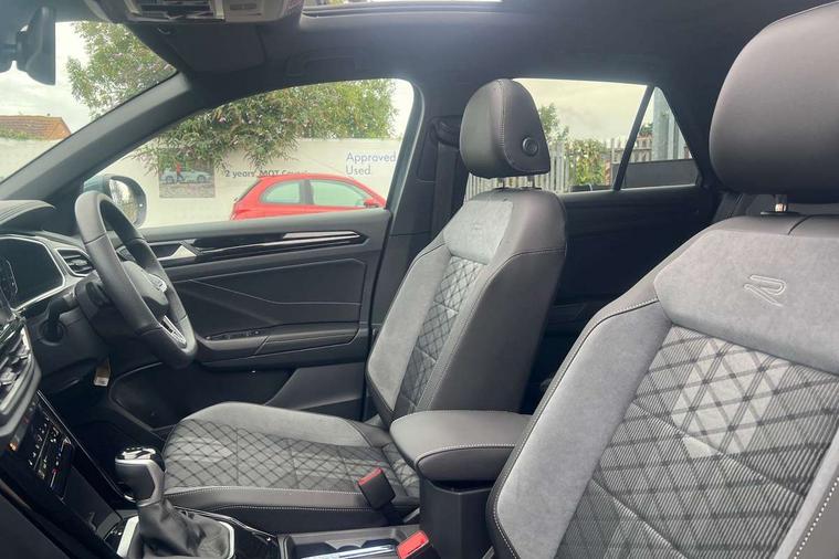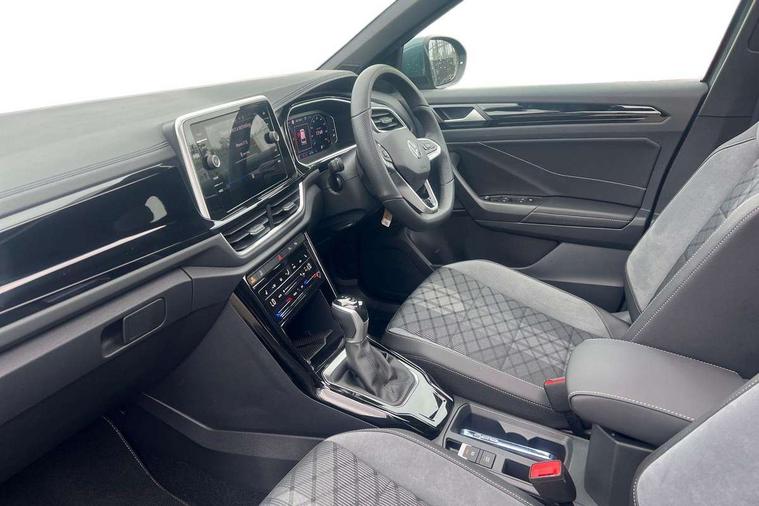 10.25" Digital cockpit pro, Advanced driver attention and drowsiness monitor, Dynamic road sign display, Emergency call service, Lane keeping system Lane Assist, Mobile phone interface, Modified key software - reduce switch off time for key status change to Long no motion, Online services, Park assist including front and rear parking sensors, Service interval indicator, Tailgate/trunk lid release from outside, Think blue trainer driver tips and journey analysis, Warning sound and light for front seatbelts unfastened, Wireless app connect, Battery regeneration during braking, Start/stop function with battery regeneration, DAB Digital radio, Diversity antenna for FM reception, Front and rear 6 speakers, Music playback - MP3, WMA and AAC files, Premium USB cable in choice of either Apple or Android smartphone compatibility, SD card slot, Simultaneous pairing of 2 compatible mobile devices, Title and cover art display, We Connect and We Connect Plus functionality, Auto dimming interior rear view mirror, Automatic hazard lights activation under emergency braking, Automatic headlight control with LED separate daytime running lights with coming/leaving home function, Body coloured exterior mirror housings and door handles, Electrically adjustable and heated door mirrors, Extended roof spoiler, Exterior mirrors aspherical on driver side, convex on front passenger side, External USB type C socket and charging sockets, Front windscreen wiper with intermittent wipe and 4 position delay, Heated rear window, LED 3rd brake light, LED rear combination lamps, LED rear number plate lights, Power windows with comfort operation and circuit breaker, Privacy glass for rear side windows and rear window, R-Line design body coloured bumpers, Rain sensor, Rear exhaust tailpipe, Rear fog light on one side and reversing lights on both sides, Rear side wing doors, Rear wash/wipe with intermittent wipe setting, Remote electrically foldable door mirrors, puddle lights and reverse activated passenger's door mirror, 12V power socket in centre console, 3 rear head restraints, 3 seat bench in 2nd row, 4 load lashing points in luggage compartment, Air care climatronic air conditoning system with active combination filter and 2-zone temperature control, Black roof lining, Chrome plated decorative trims, Chrome plated radiator grille inserts, air vent surrounds and light switch surrounds, Door and side trim panel with leatherette insert, Front + rear carpet mats, Front centre armrest, Front cupholders x 2, Front footwell illumination, Front reading light, Front scuff plates with R Line logo, Front seat back storage pockets, Glove compartment door with light, Instrument lighting, white adjustable panel illumination, Interior ambient lighting and surround lighting, Interior light delay, Isofix child seat preparation, Leather gearshift handle, Load-through provision with cup holder when folded down ('Unsplit rear seat bench, split folding backrest, with centre armrest), Luggage compartment lighting, Single front passenger seat, Stainless steel pedals, Storage compartment in left and right luggage area, Storage compartment in rear doors, Storage compartments in driver and front passenger doors, Sunvisors with illuminated vanity mirrors, Variable boot floor, height adjustable and removable, Driver assistance pack without proactive passenger protection - T-Roc, 3 point height adj front seatbelts + pretensioners, 3 point seatbelts in outer rear with ECE label, ABS, Child locks on rear doors, City emergency braking and pedestrian monitoring, Driver and front passenger airbag with front passenger airbag deactivation, Driver and front passenger safety-optimised head restraints, Drivers seatbelt reminder, Electronic parking brake, Electronic Stability Control (ESC) inc EDL (Electronic Differential Lock) and ASR (Traction Control), Front and rear passengers curtain airbag system including front side airbags, Hill start assist, Predictive pedestrian protection, Rear disc brakes, Two tone horn, Tyre pressure loss indicator, Volkswagen roadside assistance, Piano black decorative inserts in dashboard and front door trim panels, Trims for alloy wheels,