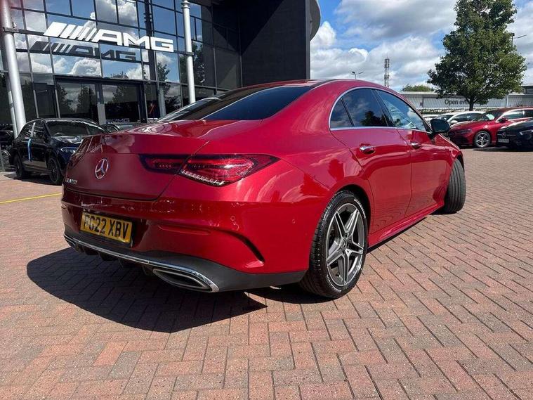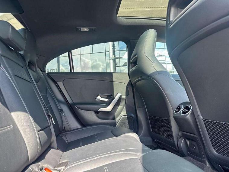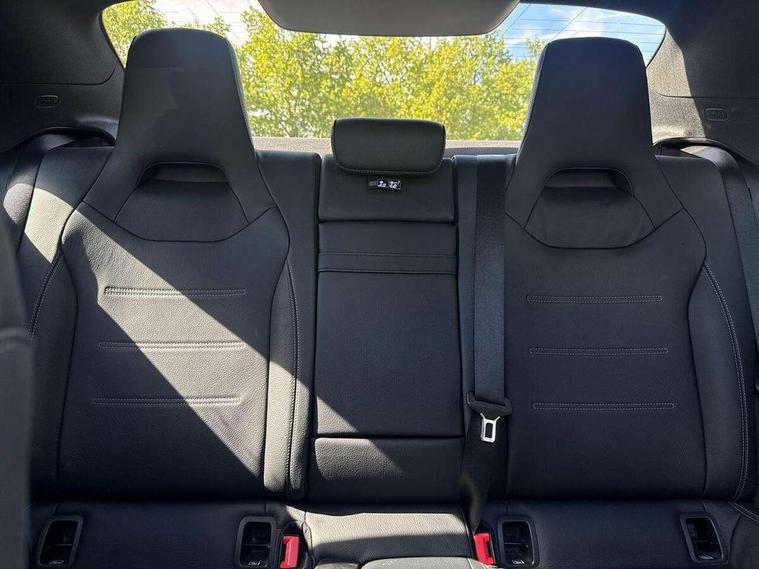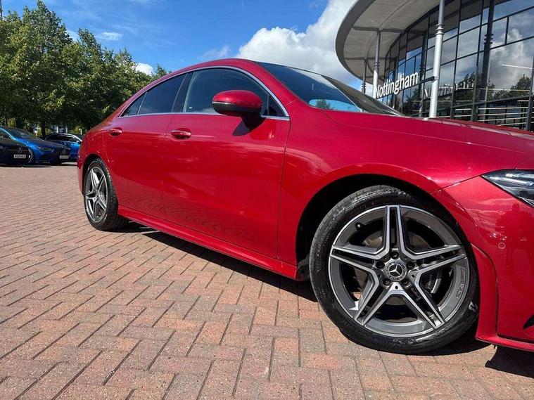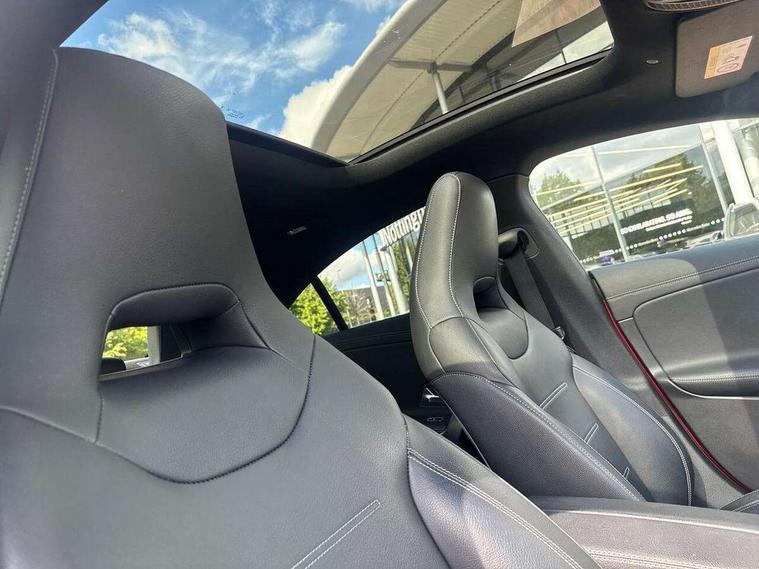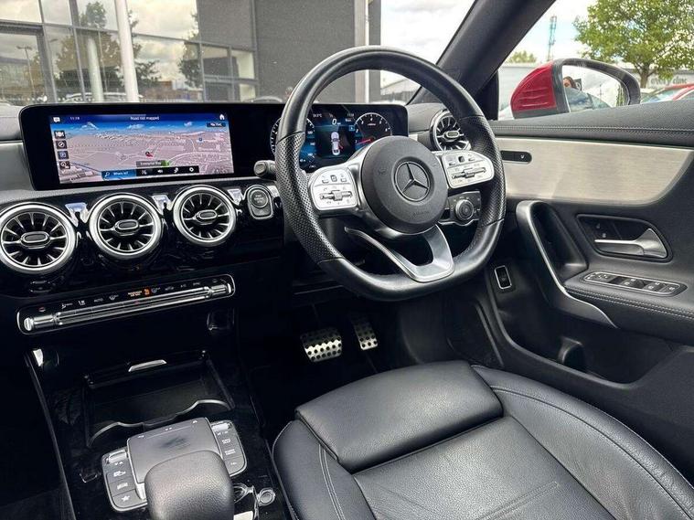 10.25 inch Instrument display with digital cockpit, 10.25 inch touchscreen central media display, Attention assist - Monitors steering behaviour and long journey fatigue, Bluetooth connection, Car wash mode, DYNAMIC SELECT with a choice of driving modes (ECO, Comfort, Sport and Individual), ECO start/stop function, Fluid level warning indicator for fuel, oil, coolant and washer fluid, Hard-disk navigation, Hey Mercedes Voice activation, Lamp failure indicator, Mercedes me connect including emergency call system, accident recovery, breakdown and maintenance management, Mercedes me remote services, Outside temperature gauge, Owners manual and service booklet in English, Pre-installation of private car share, Preinstallation for Mercedes Benz link, Radio aerial integrated into front and rear windshields, Service indicator (ASSYST), Smartphone integration with Apple CarPlay and Android auto, Traffic sign assist, Trip computer in multifunction display with current consumption indicator, 7G-DCT 7 speed automatic transmission, Lowered comfort suspension, Rear axle multi-link, DAB digital radio tuner, MBUX multimedia system with DAB digital radio and touchpad including satellite navigation, Mid-range sound system, USB (type C) ports (2) in stowage compartment and 1 in front of centre console, Adaptive brake lights, AMG body styling with AMG front apron and rear apron and visible exhaust tailpipe in chrome trim elements, AMG bodystyling side skirts, Auto headlights, Body colour bumpers, Body colour door handles, Chrome beltline strips, Chrome weather strip, Diamond radiator grille pins in chrome with silver painted louvres and chrome insert, Electric panoramic sliding sunroof, Electric windows, Electrically adjustable and heated door mirrors with integrated LED indicators, Exhaust system with 2 Visible tailpipe trim elements and rear apron with trim in chrome, Headlamp assist automatic headlamp activation, Heated glass rear windscreen + timer control, High level LED third brake light, Integrated LED daytime running lights, Interior mirror with black reading lamps and frameless, LED tail lamp, Multibeam LED headlamps with adaptive highbeam assist plus, Privacy glass with dark tinting on rear side windows and rear window, Rain sensing windscreen wipers with two sensitivity settings, Rear boot, Rear fog lamp, Rear side wing doors, Window line trim strip in chrome, 3 seat bench in 2nd row, 3 spoke flattened bottom nappa leather multifunction steering wheel with perforated leather in grip area, 40:20:40 split folding rear seat backrests, Air conditioning - Two zone thermotronic luxury automatic climate control with display, Air vents with surround in silver chrome, Automatic child seat recognition sensor, Black roof lining, Brushed stainless steel sports pedals with rubber studs, Floor mats with stitched AMG lettering, Front centre armrest with stowage, Galvanished gear shift paddles on steering wheel, Heated front seats, Illuminated front door sills with changeable cover, Illuminated glove compartment stowage, Interior lighting - 64 colour Ambient lighting, Luggage net on driver/front passenger seat backrest, Manually height and reach adjustable steering column, Rear armrest with two integral cup holders for drinks, Rear head restraints, Single front passenger seat, Sport seats with fixed head restraints, Stowage compartment in centre console with retractable cover, Sunvisors with illuminated vanity mirrors, Touchpad on center console, Twin front cupholders, Two outer rear seat isofix and top tether child seat fixing points, Keyless go pack - CLA, Light and sight pack - CLA, Mirror pack - CLA, Parking package - CLA, Seat comfort pack - CLA, Active bonnet pedestrain safety measure which detects an impact and raises bonnet by 65mm, Adaptive brake assist with hold function and hill start assist, Anti-lock braking system (ABS), Black seat belts, Bonnet with power domes, Brake pad wear warning indicator, Childproof locks manually operated for rear doors and electrically operated for rear power windows, Crash responsive emergency lighting, Driver and front passenger head and sidebags, Driver and front passenger windowbags, Drivers knee airbag, Dual stage driver and front passenger airbags, Electric parking brake, Electronic stability programme with acceleration skid control, ESP curve dynamic assist, Front and rear seatbelt reminder, Front passenger seat occupancy sensor, Three point rear seat belts, Tyre pressure monitoring system, Warning triangle and first aid kit, Remote central locking and crash sensor with emergency opening function, Urban guard vehicle protection system with immobiliser and interior protection, Light aluminium with longitudinal grain interior trim, 18" 5 twin spoke design alloy wheels painted in titanium grey with high sheen finish, Summer tyres, Tirefit tyre sealant kit,