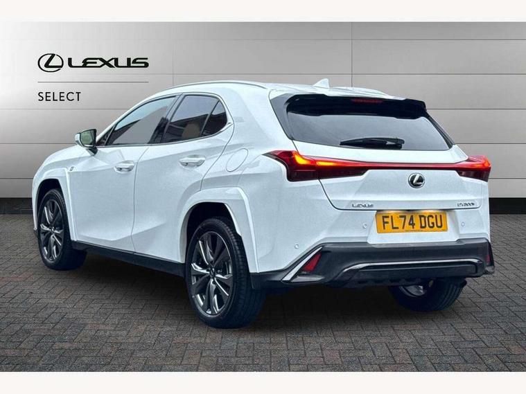 5 Driving modes EV/Normal/Eco/Sport/Sport+, Analogue clock with GPS function, Apple car play/Android Auto, Blind spot monitoring (BSM) with Rear cross traffic alert and auto brake (RCTAB), Bluetooth mobile connectivity, Driver monitoring system, E-call, Electric power steering (EPS) with speed sensitive features, Emergency steering assist, F SPORT exclusive digital speedometer, Front and rear parking sensor with intelligent clearance sonar, Front and rear smart entry, Front bicyclist detection, Front motorcycle rider detection daytime, Front pedestrian detection, Fully digital 12.3" combimeter, multi-information display, Functional module switch for driver seat, Handsfree power back door, Intersection turn assist, Lane change flasher function, Lexus link pro with 12.3" Touchscreen, embedded navigation, LSS+3 includes dynamic radar cruise control, pre collision system, lane departure alert, emergency driving stop, proactive driving assist and OTA, Parking assist monitor with on-screen guard, Pre-crash system, Predictive efficiency drive, Push button start, Remote touch interface, Reversing camera, Road sign assist, Tailgate electric lift and close, Tailgate height memory function, Traffic sign recognition, Trip computer, Wireless apple C smartphone integration, Wireless Smartphone charger, Adaptive variable suspension with rear performance dampers, Coil spring suspension front and rear, Vehicle Dynamics Integrated Management (VDIM), Vehicle Stability Control (VSC), 10 speakers premium audio system, 2 front USB C and 2 rear USB C charging points, AM/FM and DAB radio, AUX socket with VTR compatibility, Steering wheel mounted audio controls, 3 flash lane change indciators, 750kg towing capacity, Acoustic windscreen, Active brake lights, Aero stabilising arch mouldings, Aero stabilising rear lights, Aero ventilated wheels, Auto dimming interior rear view mirror, Auto headlights, Automatic flashing hazard rear headlights (FHL) and safe exit assist (SEA), Bi-LED (low and high beam) headlights with Auto High Beam (AHB), Black and body-coloured outer mirror cover, Body adhesive, laser screw welding and laser brazed roof structure, Body colour roof drip mouldings, Body coloured door handles, Body coloured roof spoiler, Chrome door belt moulding, Chrome moulding side windows frame, Door outside handle puddle lamp, Electro chromic, heated, auto folding door mirrors with reverse tilt function, F mesh signature grille, F SPORT badge front wings, F SPORT exterior styling, F Sport front bumper jet black bumper and grille garnish, F Sport rear bumper, F SPORT stainless steel scuff plates with LEXUS, Follow me home lights, Front and rear one touch power windows, with anti-jam protection, Front and rear performance rod, Halogen front indicator lights, Landing shibo door mirrors, LED cornering headlights, LED daytime running lights, LED front fog lights, LED rear combination tail lights, LED rear fog light, LED third brake light, Lexus chrome plated rear badge, Light green UV reduction windows, Paint protection film, Privacy glass, rear doors and tailgate, Rain sensor windscreen wipers, Rear side wing doors, Rear wiper, Resin rear scuff plates, Shark fin roof aerial, Silver roof rails, Single hidden exhaust pipe, Towing preparation, Variable front intermittent wipers, Water repellent glass front side glass, Wiper blade, 12V accessory port centre console and luggage compartment, 2 cup holders in the front and rear centre console, 2 way manually adjustable rear headrests, 2 x folding shopping bag hooks in boot, 2 x sun visors with vanity mirror and lamp, 3 seat bench in 2nd row, 3 spoke perforated leather trimmed steering wheel with paddle shift, 4 way manually adjustable front headrest, 4 x tie down hooks in the boot, 60/40 split folding rear seat, 8-way electrically adjustable front seats with 2-way power lumbar support, Active sound control, Ambient illumination front centre console, Automatic air recirculation control, Black roof lining, Card holder installed in driver and passengers sun visors, Centre armrest with storage, Driver and passenger door pocket, Driver side machined aluminium footrest, Dual zone electronic climate control + Nano-E humidity sensor, F SPORT logo embossed on front headrests, F SPORT seats, Glovebox, Heated front seats, Heated steering wheel, i-Size attachment outer rear seats, Illuminated entry system, Integral knee pads for front centre console, LED boot light, LED Door courtesy lights, LED glove box light, LED interior illumination, Luggage cover manually folding, Machined aluminium sports pedals, Map pockets in the rear of passenger's front seat, Perforated leather gearshift, Rear air vents with 2 USB chargers, Rear center armrest, Remote climate control, S-Flow technology for climate control, Single front passenger seat, Smooth leather F sport upholstery, Storage tray under audio panel, Tahara door panel finish, Tahara meter hood, Textile carpet mats, Tilt/telescopic adjustable electric steering wheel, Touch Screen Cloth, Under deck storage, Under desk side storage, 2 x Isofix child rear seat restraints, 3x3 point rear seatbelts, Acoustic vehicle alerting system, Anti-lock braking system (ABS), BAS (Brake Assist System), Driver and front passenger 2 stage airbag, Driver and front passenger knee airbag, Driver/front passenger side airbags, EBD - Electronic brakeforce distribution, ECB (Electronically Controlled Brake System), Electric child locks, Electric parking brake, Front adjustable seatbelt anchor points, Front and rear curtain shield airbags, Front outer seatbelt+pre-tensioners, force limiter+tension reduction: 3-point with active safety link to PCS, Front wheel brake 16.5 inch discs, Hill start assist control (HAC), Passenger airbag cut-off device, Rear outer seatbelt+pre-tensioners, force limiter+tension reduction: 3-point with active safety link to PCS, Centre belt w/o pre tensioner+force limiter, Rear wheel brake - 16inch discs, Secondary Collision Brake (SCB), TRC 