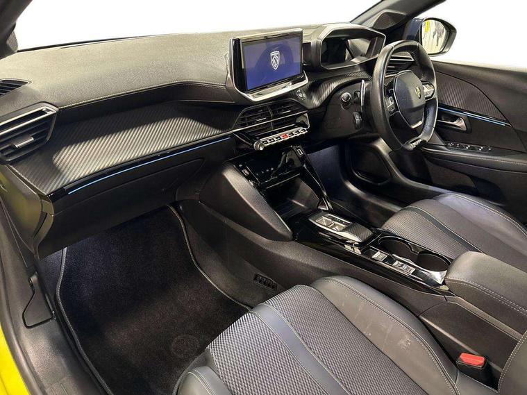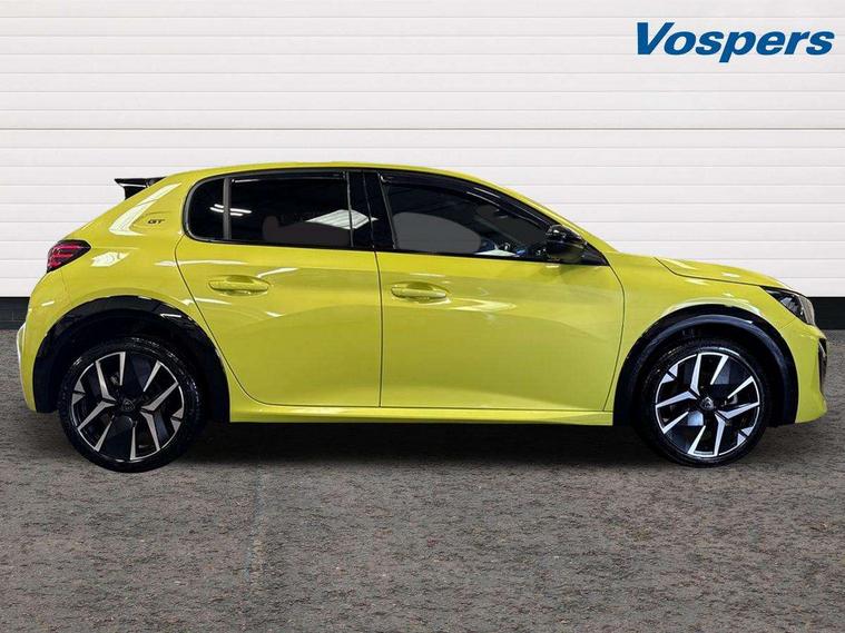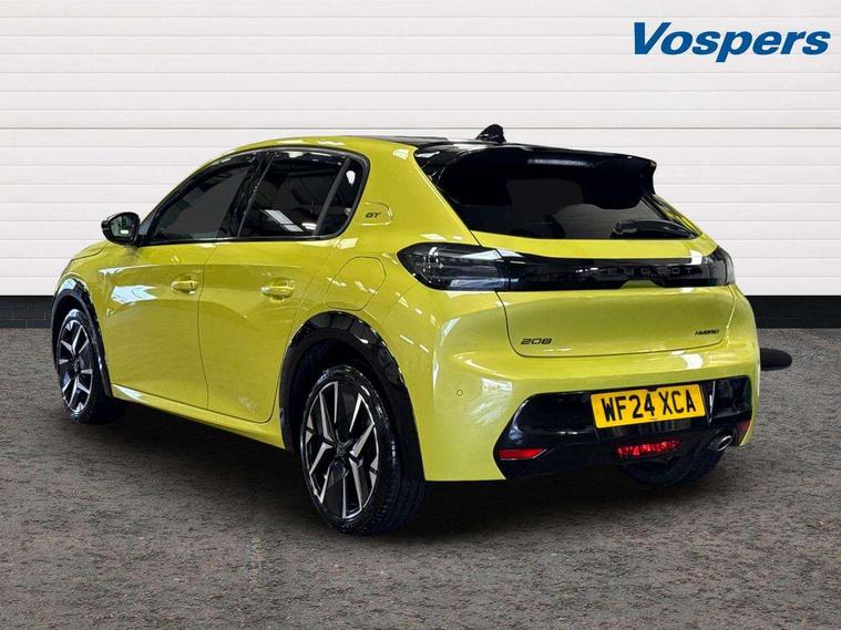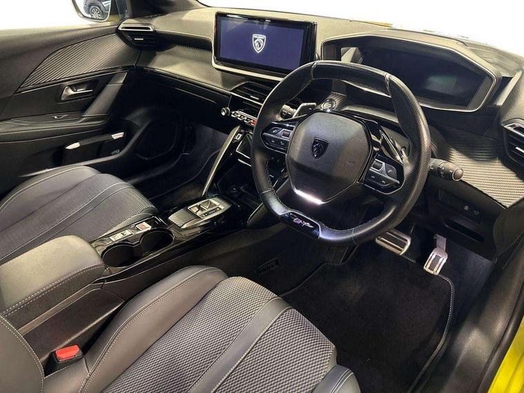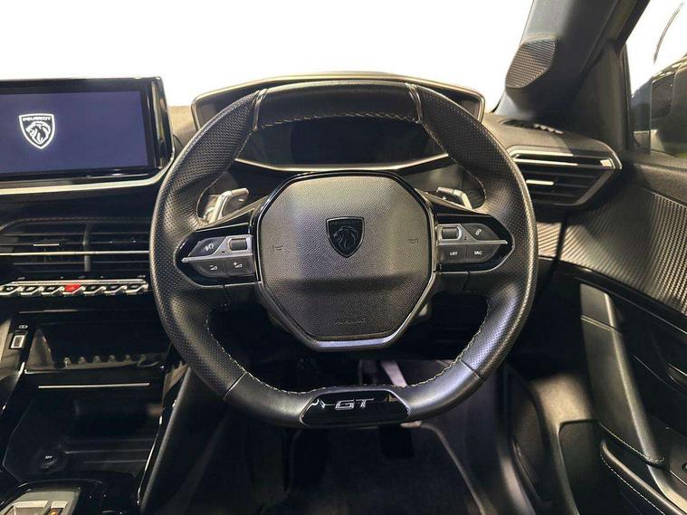 Bluetooth telephone facility, Drive mode select (Eco/Normal/Sport), Driver attention warning, Emergency call service, Exterior temperature indicator with ice warning, Front and rear parking sensors, Gear lever - e-Toggle, Multi function trip computer, PEUGEOT i-Cockpit with 10" configurable 3D colour head up instrument panel, PEUGEOT i-Cockpit with 10" HD capacitive colour touchscreen, PEUGEOT i-Cockpit with compact steering wheel, PEUGEOT SOS and assistance, Push button start, Smart phone docking station, Smartphone 15W wireless charging plate, Speed limit recognition and recommendation, Wireless mirror screen with apple carplay and android auto, 6 Speakers - 2 tweeters and 4 door speakers, DAB Digital radio, Peugeot i-connect infotainment system - 10in HD touchscreen, AM/FM/DAB digital radio, Wifi Mirroring, Bluetooth & 2 USB connection, USB-A socket (x1) and USB-C socket (x1) - rear, USB-C data and charge socket and USB-C charge socket in front, Voice recognition for radio, navigation and telephony features, 2 X Rear number plate lights, Acoustic windscreen, Antenna - Gloss Black 'fin' design, Automatic hazard light activation upon heavy brake application, Body coloured exterior door handles, Dark tinted rear side and tailgate windows, Diamond black rear spoiler, Door sills protection with PEUGEOT signature lettering, Electric heated and power folding door mirrors with courtesy floor lighting, Frameless electrochrome interior rear view mirror, Full LED headlights with automatic height adjustment and PEUGEOT smartbeam assist, Gloss black B pillar, Gloss black door mirror shells, Gloss black front bumper grille with body colour accents, Gloss black rear cluster connecting strip, Gloss black wheel arch extensions, Gloss black window weatherstrips, GT model designation badging on C pillar, Headlights left on audible warning, LED 3 claw horizontal rear lighting signature (with daylight function) and LED brake lights, indicators and reversing lights, LED daytime running lights with distinctive 3 claw signature, LED front indicators, LED third brake light, Model designation badges front and rear in basalt grey, One touch electric front/rear windows with pinch protection, Rear bumper with gloss black finish, Rear reversing lights, Rear side wing doors, Rear windscreen wiper triggered automatically in reverse gear, Roof spoiler, Tailgate with heated rear windscreen and wiper blade, Variable front intermittent wipers, 1/3 to 2/3 split folding rear seats, 12V socket, 3 seat bench in 2nd row, 8 Colour personalisable ambient lighting, Adamite green contrast stitching to front and rear armrest, front centre console, dashboard facia, Aluminium pedals, Automatic mono zone climate control air condition, Boot lighting, Driver and front passenger dynamic seats, Driver and front passenger seat manual adjustment in longitudinal and back rest angle, Driver and front passenger seat mechanical height adjustment, Driver and passenger sun visors, front footwells and central storage with LED lighting, Electric power steering with reach and rake adjustable steering column, Front centre armrest with storage compartment, Front LED interior light, front LED reading spotlights(x2), rear LED reading spotlight(x2), High centre console with 2 cup holders, Luxury carpet mats, Map pockets on the backs of the front seats, Multi function full grain perforated leather steering wheel with adamite green stitch detail and 'GT' emblem, Passenger seat height adjuster, Piano keys gloss black plated toggle switches to access main functions of the vehicle, Rear centre headrest, Roof lining - Mistral black, Seatbelt unfastened on the move audible and visual alert for front and rear seats, Single front passenger seat, Visibility pack - 208, 2x Isofix child seat fitting on outer rear seats, 3 rear 3 point seatbelts, ABS (Anti-lock Braking System) with EBD (Electronic Brakeforce Distribution) and EBA (Emergency Braking Assistance), Active safety brake with night function/cyclists/pedestrians, Child locking functionality on rear doors, Driver and front passenger airbag with passenger airbag deactivation, Driver/front passenger side airbags, Electric parking brake, ESP with Hill Assist, Front and rear curtain airbags, Front and rear disc brakes, Front optimised safety headrests and 3 x rear retractable headrests with height adjustable, Front three point retractable seatbelts with force limiters, Remote plip(x2) for locking, unlocking, includes emergency key blade, Tyre pressure monitoring system, Acoustic vehicle alert system (AVAS), Alarm - Connected, volumetric , perimetric, anti lift sensor, Automatic door locking when moving off, Deadlock, Electronic code immobiliser, Peugeot Open and Go System, Remote central locking, Carbon effect Dashboard, front and rear door panel finish, 17" Yanaka two tone diamond cut alloy wheels wheels includes gloss black inserts, Space saver spare wheel,