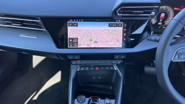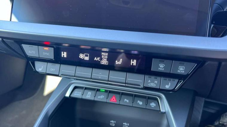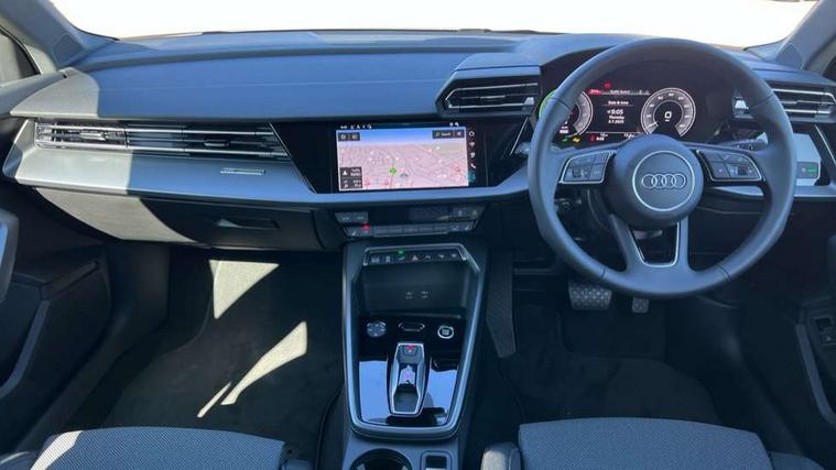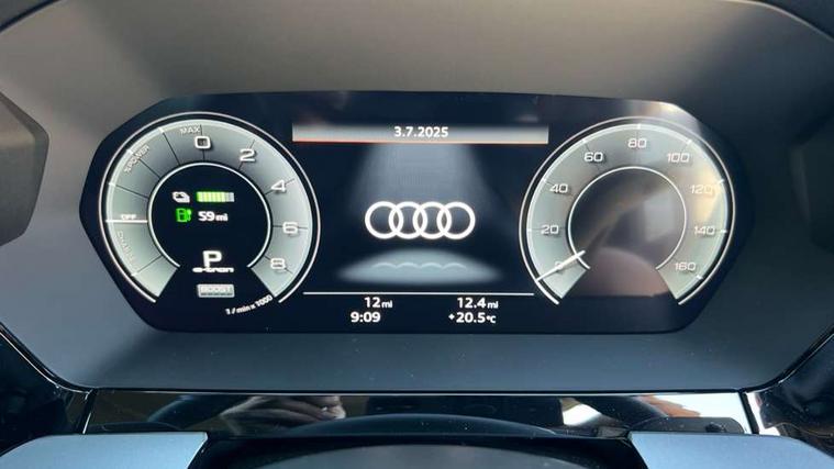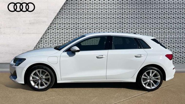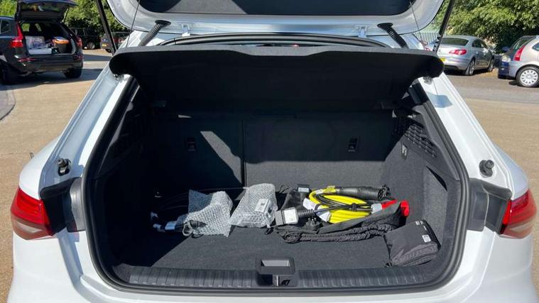 Adjustable speed limiter, Audi drive select, Audi smartphone interface with app store includes wireless Apple carplay, Android auto and Amazon alexa integration, Audi virtual cockpit plus - 12.3" full HD resolution dynamic digital instrument cluster, Automatic start/stop system with recuperation, Bluetooth interface, Camera based traffic sign recognition, Collision avoidance assistant, Cruise control, Distraction and Fatigue warning, e-Call (emergency call), Electromechanical power speed sensitive steering, Emergency assist, Lane departure warning system, MMI Navigation Plus with high resolution 10.1" colour touch screen display, Park Assist with parking system Plus, Service indicator, Trip computer, Voice control system with natural language interaction, 3 pin 10 amp domestic charging cable, CCS socket for DC charging, Charging cable for public charging, mode 3 (type 2), 32 A, Compact charging system, Industrial connector CEE 32 A, 230 V, length 1.6 m, Standard suspension, Type 2 socket for AC charging, Audi Phonebox light with wireless charging, Audi sound system - 10 loudspeakers including centre loudspeaker and subwoofer, DAB Digital radio, USB ports with charging function in the rear, 3rd brake light, Acoustic glass windscreen, Aluminium window trim, Auto dimming frameless rear view mirror, Body colour exterior mirrors, Body colour roof spoiler, Dipped beam, main beam, position light and turning light, Electrically adjustable/heated/folding/auto dimming door mirrors with integrated LED indications + kerb view function for passenger side, Exterior model badging, Front electric windows, Front radiator grill in high gloss dark chrome, Front side air inlets in grained matt black with silver frame, Heat insulating glass windscreen, LED daytime running lights, LED headlights and halogen rear lights, Light and rain sensors, Rear diffuser and grill in grained matt black with silver frame, Rear electric windows, Rear side wing doors, Rear window, rear door windows and rear side windows in clear glass, Rear wiper, 12V socket and storage compartment in front centre console, 3 seat bench in 2nd row, 3 spoke leather multifunction steering wheel with gear shift paddles, 3-zone deluxe automatic air conditioning, 4 way electrically adjustable lumbar support for driver and front passenger, 60/40 split folding rear seat bench, Black front and rear floor mats, Convenience auxiliary air conditioning, Front and rear headrests, Front centre armrest, Front door sill trims with aluminium inlay, Heated front seats, Height and reach adjustable steering wheel, Manual boot compartment lid, Manually adjustable front seats, Routine cloth upholstery with front sports seats, Seat side bolsters, Single front passenger seat, Steel grey cloth headlining, Aluminium interior elements pack - A3, LED interior lighting pack -A3, 3x3 point rear seat belts, Acoustic vehicle alerting system, Driver and front passenger airbag with passenger airbag deactivation, Electronic Stabilisation Control (ESC) including ABS, ASR and EDL, First aid kit with warning triangle and 2 safety vests, Front side airbags with head airbags and interaction airbag, Hill hold assist, Pre-sense front with pedestrian and cyclist detection, Seatbelt monitoring, Tyre pressure loss indicator, Anti theft alarm, Anti-theft wheel bolts, Electronically operated child locks, Immobiliser, Remote central locking with safelock, Black dashboard, Inlays in volcano grey fine paint finish, Tyre repair kit,