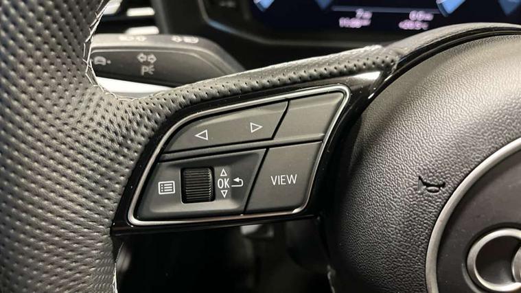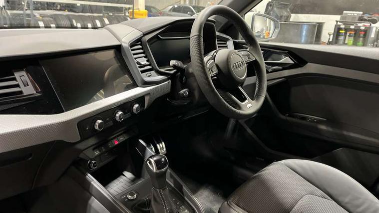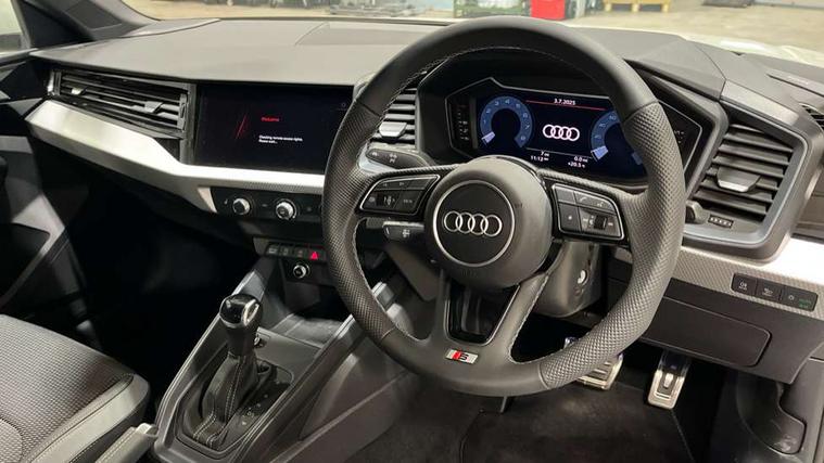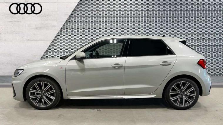 10.25" Digital instrument cluster display classis style instrument dials + speed, odometer, time, outside temperature, telephone menu + fuel level warning, Advanced driver attention and drowsiness monitor, Audi connect emergency call and service, Audi drive select, Audi remote connect and control, Audi smartphone interface, Bluetooth interface, Camera based traffic sign recognition, Cruise control, Driver's information system, Electromechanical power steering, Lane departure warning system, Rear parking sensor, Service interval indicator, Speed limiter, Start stop system with recuperation, Voice control system, Washer fluid level indicator, Sports suspension, 2 x USB type C connection points, 6 loudspeakers, DAB Digital radio, MMI radio plus with 10.1" colour MMI display screen and MMI touch, Auto dimming rear view mirror, Body coloured door mirrors, Door sill trims with aluminium inlays and S line logo in front, Electric front and rear windows, Electrically adjustable, heated, folding door mirrors with integrated LED side indicator, Front side air inlets in grained matt black and C frame in anthracite black, Headlight cleaning system, Heat insulating glass windscreen and side windows, Heated rear windscreen, High level LED brake light, LED daytime running lights, LED headlights with range control LED rear lights + dynamic rear indicators, Light and rain sensors, Privacy glass, Radiator grille and rear diffuser in matt anthracite black, Radiator protective grille frame in matt aluminium silver, Rear fog lights, Rear side wing doors, Rear wiper, S line badges on front wings, Side front spoiler lips in grained matt black, 12V socket in centre console with two cup holders, 3 rear seats with headrests, 3 seat bench in 2nd row, 3 spoke leather multi-function plus steering wheel features S badging and grips in perforated leather with contrast stitching, 40:60 Split folding rear seat or fully collapsed, Black cloth headlining, Front and rear velour black floor mats with contrast stitching in fine silver, Front head restraints, Front passenger seat, Height and reach adjustable steering wheel, Interior lighting includes roof module, front and rear reading lights and right luggage compartment lighting, ISOFIX child seat mounting for front passenger and outer rear seats including top tether attachment point of outer rear seats, Leather gear knob with aluminium trim, Leather handbrake grip, Manual air conditioning, Manual height adjustable for driver and front passenger seat, Manually adjustable lumbar support in front seats, Stainless steel pedals, Ambient lighting package - A1, Luggage compartment pack - A1, S line exterior styling pack - A1 Sportback, 3x3 point rear seatbelts, Audi pre-sense front with pedestrain and cyclist recognition, Brake assist function, Driver and front passenger airbag with front side and head airbags, Electronic Stability Control including ABS, EBD, ASR and EDL, Front passenger airbag deactivation switch, Hill hold assist, Manual rear child locks, Seatbelt height adjustment for front seats, Seatbelt monitoring, Tyre pressure loss indicator, Warning triangle and first aid kit, Anti theft alarm, Anti theft wheel bolts, Immobiliser, Remote control key with safelock, Aluminium trim for control switches, air vents and digital instrument cluster, Black dashboard, Silver grey inlays polygon structure in diamond paint finish, Structured grey accent surfaces insert of air vents, interior door handle recesses and centre console in quartz paint finish,