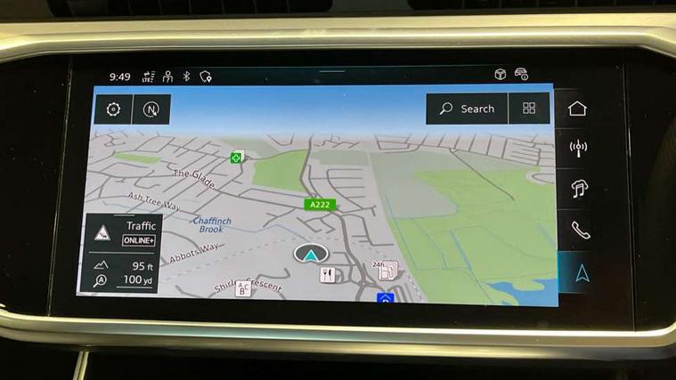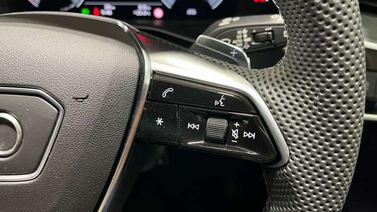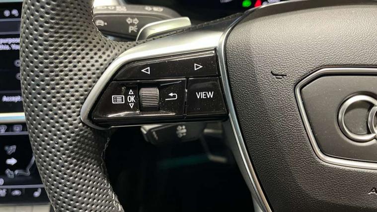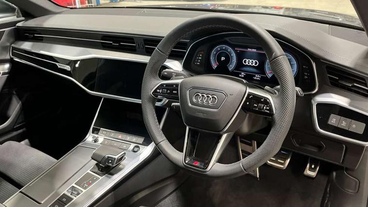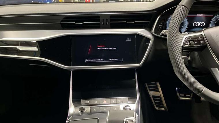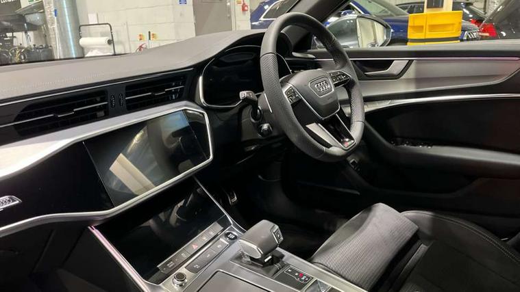 Audi connect safety and service (e-call), Audi connect with Amazon Alexa Integration, Audi drive select, Audi parking system plus - acoustic and visual park assist system for front and rear, Audi virtual cockpit, Automatic start/stop system with coasting functionality, Bluetooth interface, Camera based traffic sign recognition, Lane departure warning system, MMI navigation plus with 10.1" and 8.6" touch screens, Power operated tailgate, Progressive steering, Rear view camera, Service interval indicator, Smartphone interface includes wireless Apple carplay/Android Auto, Voice control system, Sports suspension, Audi front music interface, Audi sound system, Auxiliary input socket, DAB Digital radio, USB connection, Aluminium roof rails, Body colour rear roof spoiler, Body coloured door mirrors, Electric front/rear windows, Electrically adjustable heated and folding + automatically dimming exterior mirrors with memory function, Frameless auto dimming interior rear view mirror, Front intermittent wipers, Heat insulating darkened glass in side and rear windows, Heat insulating glass in windshield, LED rear lights with dynamic indicators, LED signature front daytime running light, LED third brake light, Matrix LED headlights, Matt black rear diffuser with diffuser strip and tailpipes in chrome, Matt black side air intake grille with inlay in matt aluminium, Privacy glass, Radiator grille in anthracite black matt, single frame in chrome and horizontal struts in matt aluminium silver, Rain and light sensors, Rear side wing doors, Rear wiper, 2 zone deluxe electronic climate control, 3 spoke high multi-function perforated leather steering wheel with contrast stitching and shift paddles, 40/20/40 split folding 3 rear seat bench in 3 parts with rear centre armrest, Audi phone box light, Black cloth headlining, Electrically adjustable front seats including seat height, fore/aft position, backrest angle and 4-way lumbar with memory for driver's seat, Front and rear floor mats, Front centre armrest, Front head restraints, Heated front seats, Height/reach adjust steering wheel, Illuminated door sill trims with S logo, Illuminated sun visors with vanity mirrors, Leather gear knob, Luggage compartment system, Rear headrests, Single front passenger seat, Stainless steel pedals and foot rest, Tool kit and car jack, LED Interior Ambient Lighting Pack - A6, Non smoking pack - A6, S line exterior style pack - A6, 3 point seatbelts on all seats, Airbags - Front side, front and rear including head, Audi pre-sense front, EBD - Electronic brakeforce distribution, Electromechanical parking brake, Electronic Stability Control (ESC) including ABS, ASR and EDL, Extended pedestrian protection measures, ISOFIX child seat mounting for front passenger seat and ISOFIX child seat mounting with Top Tether for outer rear seats, Manual child proof rear door locks, Seatbelt monitoring, Tyre pressure warning light, Warning triangle and first aid kit, Anti theft alarm with tow away protection, Anti-theft wheel bolts and wheel loosening detection, Immobiliser, Keyless Go, Remote central locking, Matt brushed aluminium inlays,