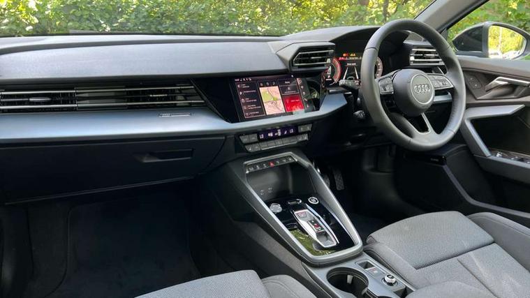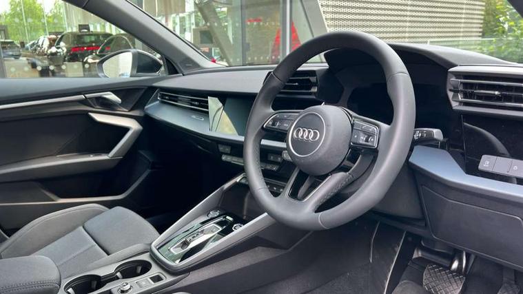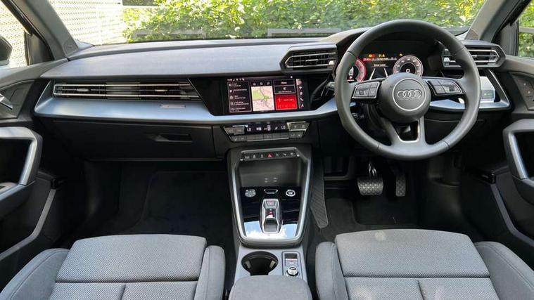 Adjustable speed limiter, Audi drive select, Audi smartphone interface with app store includes wireless Apple carplay, Android auto and Amazon alexa integration, Audi virtual cockpit plus - 12.3" full HD resolution dynamic digital instrument cluster, Automatic start/stop system with recuperation, Bluetooth interface, Camera based traffic sign recognition, Collision avoidance assistant, Cruise control, Distraction and Fatigue warning, e-Call (emergency call), Electromechanical power speed sensitive steering, Emergency assist, Lane departure warning system, MMI Navigation Plus with high resolution 10.1" colour touch screen display, Park Assist with parking system Plus, Service indicator, Trip computer, Voice control system with natural language interaction, Standard suspension, Audi Phonebox light with wireless charging, Audi sound system - 10 loudspeakers including centre loudspeaker and subwoofer, DAB Digital radio, USB ports with charging function in the rear, 3rd brake light, Acoustic glass windscreen, Aluminium window trim, Auto dimming frameless rear view mirror, Body colour exterior mirrors, Dipped beam, main beam, position light and turning light, Electrically adjustable/heated/folding/auto dimming door mirrors with integrated LED indications + kerb view function for passenger side, Exterior model badging, Front electric windows, Front radiator grill in high gloss dark chrome, Front side air inlets in grained matt black with silver frame, Heat insulating glass windscreen, LED daytime running lights, LED headlights and halogen rear lights, Light and rain sensors, Rear boot, Rear diffuser and grill in grained matt black with silver frame, Rear electric windows, Rear side wing doors, Rear window, rear door windows and rear side windows in clear glass, 12V socket and storage compartment in front centre console, 3 seat bench in 2nd row, 3 spoke leather multifunction steering wheel with gear shift paddles, 3-zone deluxe automatic air conditioning, 4 way electrically adjustable lumbar support for driver and front passenger, 60/40 split folding rear seat bench, Black front and rear floor mats, Front and rear headrests, Front centre armrest, Front door sill trims with aluminium inlay, Heated front seats, Height and reach adjustable steering wheel, Manual boot compartment lid, Manually adjustable front seats, Routine cloth upholstery with front sports seats, Seat side bolsters, Single front passenger seat, Steel grey cloth headlining, Aluminium interior elements pack - A3, LED interior lighting pack -A3, 3x3 point rear seat belts, Driver and front passenger airbag with passenger airbag deactivation, Electronic Stabilisation Control (ESC) including ABS, ASR and EDL, First aid kit with warning triangle and 2 safety vests, Front side airbags with head airbags and interaction airbag, Hill hold assist, Pre-sense front with pedestrian and cyclist detection, Seatbelt monitoring, Tyre pressure loss indicator, Anti theft alarm, Anti-theft wheel bolts, Electronically operated child locks, Immobiliser, Remote central locking with safelock, Black dashboard, Inlays in volcano grey fine paint finish,