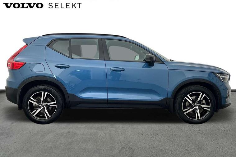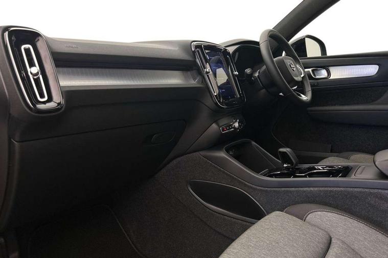 12.3" Progressive Driver Display, 360 degree surround view parking camera with side proximity sensors, 9" centre console portrait touch screen, Adjustable steering wheel force, Bluetooth hands free telephone kit, Cruise control, E-call, Front park assist, Google automatic services - Nav with google maps, apple carplay/android auto, voice recognition with google assistant, Hands free power tailgate, Lane keep assist with driver alert control, Oncoming Lane Mitigation, Rear park assist, Speed limiter, Speed sensitive steering, Wireless/Inductive Mobile Phone Charging, Dynamic chassis, DAB Digital radio, High performance sound, 8 speakers/250W, front USB and 2 rear type C USB, Steering wheel mounted remote controls, Adaptive brake lights with high level LED brake lights, Auto dimming feature for exterior door mirrors, Auto dimming interior mirror, Automatic headlamp levelling, Automatic LED Headlights + Active high beam incorporating daytime running lights, Front aluminium tread plates, Front and rear electric windows, High gloss black front and rear skid plate, High gloss black mesh front grille with high gloss black surround, High gloss black window trim, Home safe and approach lighting, Integrated roof rails in high gloss black, LED front fog lights, Puddle lights, Rain sensor with automatic windscreen wiper activation, Rear side wing doors, Rear wiper, Roof antenna, Roof spoiler, Visible VIN plate, 12V socket in front tunnel console and luggage compartment, 2-Zone electronic climate control with CleanZone air quality system and pollen filter, 3 seat bench in 2nd row, 3 Spoke tailored steering wheel with chrome trim, 60/40 versatile split folding rear seat, A-pillar parking ticket holder, Centre console cupholders and storage, Flexible load floor and grocery bag holder, Floor mats, Front door pocket, front cupholder, ambient front door, rear reading, rear courtesy, instrument panel and tailgate lighting, Front footwell illumination, Front headrests, Front reading light and theatre lighting, Front seat cushion extensions, Front tunnel pocket, Glovebox bag hook, Heated front seats, Height adjustable passenger seat, Height/reach adjustable steering column, High gloss centre tunnel deco, Illuminated glovebox, Illuminated luggage compartment, Illuminated vanity mirrors, Integrated waste bin, Isofix attachments on outer rear seats, Load protection net, Multi directional lumbar support, Power driver seat with memory + exterior mirrors memory, Rear armrest / integral cup holders / storage tray, Rear headrests, Single front passenger seat, Underfloor cargo storage, Climate pack without heated front seats - XC40, 3x3 point rear seatbelts, City safety with steering support with Pedestrian + cyclist + front collision warning with full auto brake and rear auto brake, Drivers knee airbag, Dual stage driver/passenger airbags, Electronic parking brake with auto hold, First aid kit, Front and outer rear seatbelt reminder and pretensioners, Front seats SIPS airbags, Hill descent control, Hill start assist, Inflatable curtain, Passenger airbag cut-off device, Power child locks on rear doors, Road sign information display, Run off Road Mitigation, Run off Road Protection, SIPS (Side Impact Protection System), Slippery road and hazard light alert, Stability and Traction Control with Spin control, Engine Drag Control and Corner Traction Control, Tyre pressure monitoring system, Vehicle deceleration control with Anti-lock Brake System, Electronic Brake Distribution and Emergency Brake Assist, Warning triangle, WHIPS whiplash protection system - front, Anti-theft alarm including immobiliser/volume sensor + level sensor, Key integrated remote control central locking + fuel flap with deadlocking system and auto open/close power windows, Keyless drive includes keyless entry and keyless start, Locking wheel nuts,