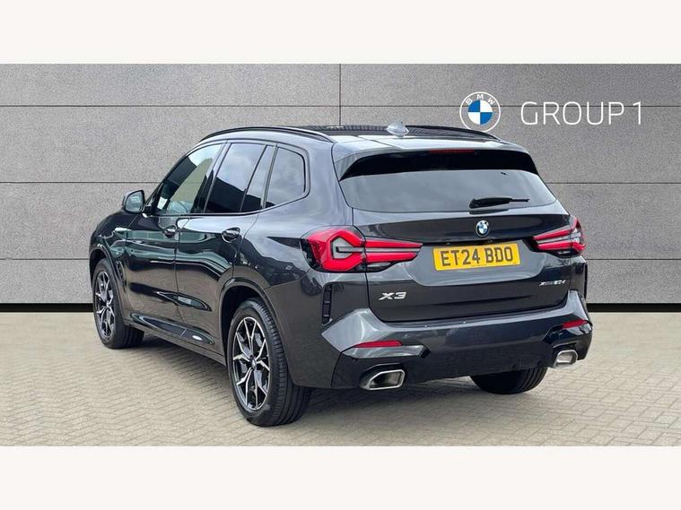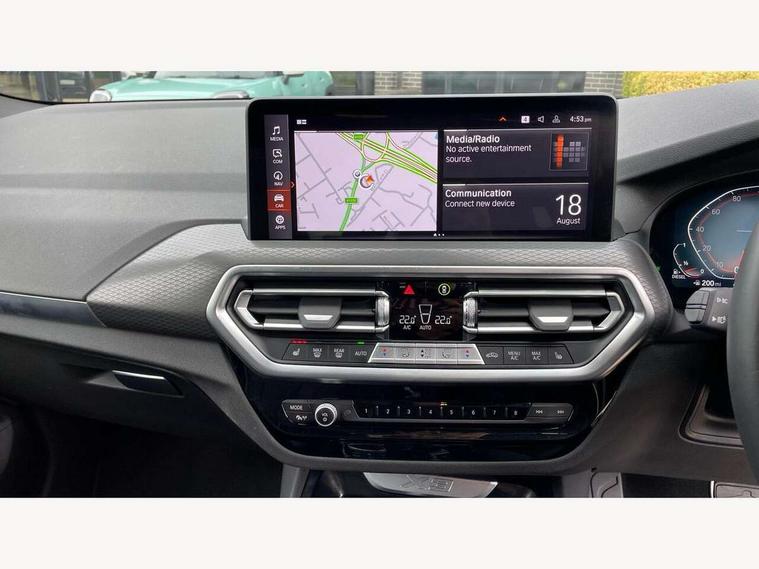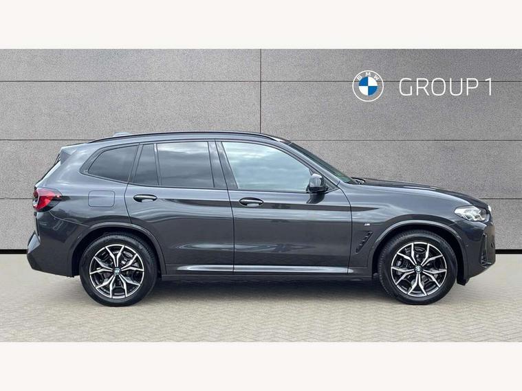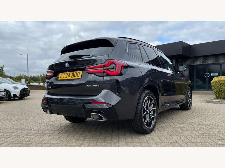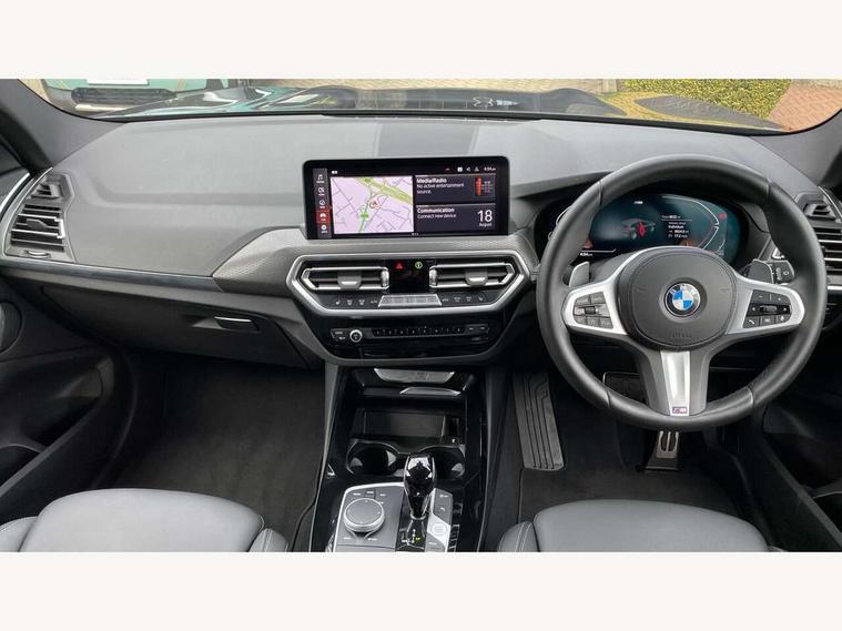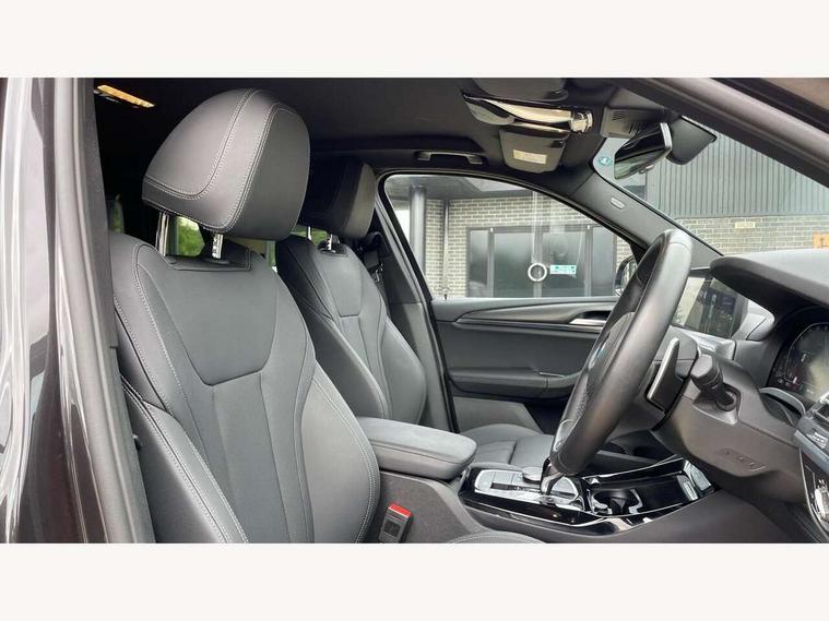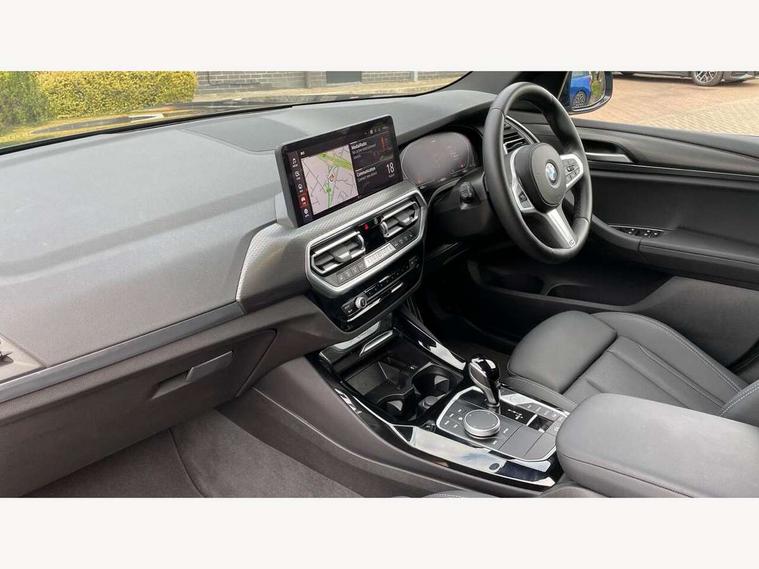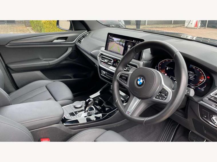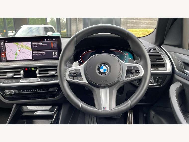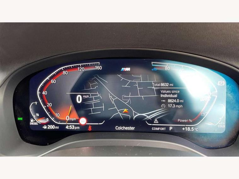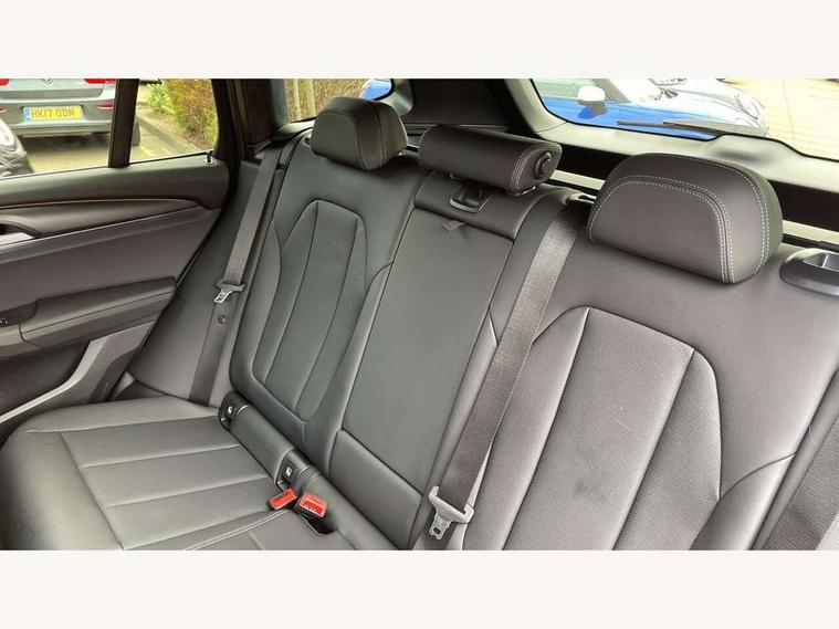 Active Guard, Attentiveness assist, BMW Live Cockpit Professional nav system including 12.3" instrument display + 12.3 high resolution control display, BMW Online services, BMW Teleservices, Brake pad wear indicator in front and rear, Check Control warning system for monitoring of lights and door/luggage compartment open warning, Condition based service - BMW service history, electronic service booklet, integrated owner's handbook, Connected drive services, Electric boot lid, Front/rear Parking distance control, iDrive touch controller with 8 favourite buttons, Instrument cluster with speedometer with mph readout, tachometer, fuel gauge and oil temperature gauge, Lights on warning by audio warning signal when ignition is switched off, Oil sensor for level and grade, warning by check control system, On board computer - average speed+fuel consumption, service interval, clock/date, odometer/trip meter, outside temperature display and ice warning, Optimum shift indicator, Personal Profile - automatic lock when driving away selectable, Run flat indicator, Stop/start system, Variable sports power steering with drive performance control Sport+ mode, Automatic transmission with gearshift paddles, Diesel particulate filter, Incorrect fuelling protection, Larger capacity fuel tank, M sport suspension, Multi-link rear suspension, BMW professional radio/CD/MP3, DAB tuner, Acoustic glazing, Automatic windscreen wipers and automatic headlight, Black finish on B pillars, Body colour door handles, Body colour electric adjust heated aspherical door mirrors, Body colour roof mouldings, Body coloured bumpers, Direction indicator, side repeaters, integrated in exterior mirrors, Dynamic brake lights, Exhaust tailpipes - dual, round, split left and right with chrome finisher, Fingertip control / anti-trap function on electric window, Folding wing mirrors with auto dimming, Follow me home headlights, Front and rear bumper system with replaceable deformation elements, Front and rear electric windows, Gloss chrome tailpipes finishers, Green tinted heat insulating glass, Heated windscreen washer jets, High beam assistant, High gloss black shadow line roof rails, High gloss shadowline exterior trim in decorative moulding side frame/recess cover/guide rail/B, C pillars/mirror frame and triangle with mirror base, High level 3rd brake light incorporating LED Technology, Interior rear view electrochromatic mirror with automatic anti dazzle function, LED tail lights, Lightweight engineering, M aerodynamic bodystyling, M Sport entry door sill strips, Model designation, Rain sensor, Rear side wing doors, Rear wing door, Rear wiper, Shark fin antenna, Side exterior M designation badges, Visible VIN plate, Welcome lighting, Windscreen wipers with adjustable interval, 12V power point in luggage area, 12V power socket in front centre console, 2 x USB Type C ports for charging and data transmission (front centre console) and 2 x USB Type C ports for charging (rear centre console), 3 rear headrests, 3 seat bench in 2nd row, 3 zone automatic air conditioning, 4 lashing points to secure luggage, 40:20:40 split folding rear seat with loading system, Ambient lighting, Anthracite headlining, Automatic interior light when door is opened/ignition switched off or via remote key, Floor mats in velour, Foldable storage floor with compartment, Four grab handles integrated in roof lining, Front and rear bottle holders integrated into door trim storage compartments, Front and rear side armrests integrated into door trim, Front centre armrest with storage compartment, Front footwell lights, Front head restraints, Front passenger seat, Front sports seats, Front/rear courtesy lights with soft on/off dimming, Front/rear reading lights, Heated front seats, Isofix rear child seat preparation, Leather gear knob, Lockable glove compartment, Luggage area underfloor compartment, Luggage compartment lighting, M sport leather steering wheel, Multifunction steering wheel, Parcel shelf removeable and storable under boot floor, Reach and rake adjustable steering column, Rear centre armrest with 2 cupholders, Removable / retractable luggage cover, Slope adjustable rear seats, Storage compartment in rear centre console and front/rear door trims, Sun visors with vanity mirrors and ticket pocket, Toolkit located in luggage compartment, Two front cupholders with removable oddments tray/lid, Connected pro pack - X3, ADB - Automatic Differential Brake, Anti-lock braking system (ABS) with brake assist, Automatic Stability Control (ASC), Battery safety cut-off, BMW emergency call, Brake drying, Brake energy regeneration, Braking pre-tensioning, Child locks on rear doors, Cornering brake control (CBC), Crash Sensor - activation of central locking release, hazard warning light and interior lighting, Deactivation of fuel pump in the event of a crash, Driver and front passenger front and side airbags with passenger deactivation and ITS front and rear head airbags, Driver and front passenger knee airbag, DSC+, Dynamic brake control, Dynamic Traction Control - DTC, Electromechanical parking brake, Hill descent control, Hill start assist, Seatbelt security check for front seats, Side impact protection, Three point seatbelts to all seats with front and outer rear pyrotechnic belt tensioners and seat belt force limiters, Two tone horn, Tyre pressure sensor, Ventilated front and rear disc brakes, Warning triangle and first aid kit, Central locking switch for all doors, fuel filler cap and luggage compartment, Electronic engine immobiliser, Locking wheel nuts, Remote control including two integrated key - one button for open/close all lockable content, windows and separate button for open luggage compartment, Remote control Thatcham category 1 alarm, Start/stop button with Comfort Go keyless engine start and auto Start/stop deactivation button, Low rolling resistance tyres,