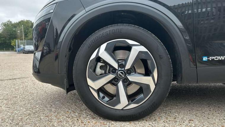 Blind spot warning, Drive modes (sport, normal, eco), e-Pedal step, Electric speed sensitive power steering, Emergency and breakdown call, Front and rear parking sensors, Full Digital 12.3" TFT Digital Combimeter, Google maps services - search, weather, 3D maps and Google street view, Idle stop/start system, Intelligent around view monitor, Intelligent Cruise control (ICC), Intelligent driver alert system, Intelligent forward collision warning, Intelligent lane intervention, Lane departure prevention, Lane departure warning system, Maximum speed limiter, Moving object detection, Nissan connect 12.3 inch touchscreen infotainment system, Nissan connect navigation, Push button starter, Rear cross traffic alert, Rear view camera, Remote control services - door locks, lights, horn and car locator, Telematics - notifications and connectivity services, TomTom live traffic services, Traffic sign recognition with legal speed adjustment, Trip computer, Virtual personal assistant and firmware over the air capability, Wireless Apple CarPlay and wired Android Auto, 6 speakers, AM/FM audio system with DAB, Bluetooth audio streaming, Front USB connections (Type-A and Type-C), Rear USB charging only ports (Type-A and Type-C), Auto dimming rear view mirror, Auto rear wiper when reversing, Automatic hazard signal with emergency stop signal, Body colour mirror caps, Body coloured door handles, Bodyside mouldings, Chrome side window finisher, Door handle with button, e-POWER badging, Electric auto folding door mirrors, Electrically adjustable and heated door mirrors with LED turn indicator, Follow me home headlights, High beam assist, Intelligent auto headlights, LED 3rd brake light, LED daytime running lights, LED Headlights, LED rear lights, One touch front and rear electric windows with remote opening and closing, Partially body coloured bumpers, Privacy glass, Rear bumper with graphite insert, Rear reversing light (bulb lighting), Rear roof spoiler, Rear side wing doors, Rear styling plate, Shark fin antenna, Splash free rain sensing wipers, Super UV and infrared cut glass, Three blink turn signal, 12v power socket in dashboard and luggage, 2x Rear coat hooks, 3 bench rear seats in 2nd row, 3 rear headrests, 4 folding assist grip, 6-way manually adjustable driver's seat, 60/40 split folding rear seat bench, Ambient lighting around centre console, Centre console storage tray, Chrome interior door handles, Cloth monoform upholstery, Driver and front passenger sunvisors with illuminated vanity mirrors, Driver seat back pocket, Dual zone automatic climate control with pollen filter, e-POWER shifter, Front and rear door storage, Front centre console and armrest, Front cupholders x 2, Front door with bottle holders, Glovebox with light, Hard trunk cover, Height adjustable driver's seat, Height adjustable front headrests, Height adjustable passenger seat, Luggage board system, Luggage space lighting, Manually adjustable passenger (slide recline + lifter), Multifunction steering wheel, Passenger seat back pocket, Rear armrest with 2 cupholders, Rear door bottle holders, Single front passenger seat, Soft PVC kneepad, Steering wheel switches, Sunglasses holder, Tilt/telescopic adjustable steering wheel, Two rear isofix child seat anchorage points with top tether, Welcome light and console tray ambient lighting, 3x3 point rear seatbelt pretensioners + load limiters, ABS with EBD and brake assist, Active brake limited slip, Auto hold function, Child locks on rear doors, Curtain and front side, far side airbags, Driver and passenger airbags, Driver, passenger and 2nd row rear seat belt reminder, Electronic parking brake, Front seatbelt pretensioners + load limiters, Height adjustable front seatbelts, Hill start assist, Intelligent blind spot intervention, Intelligent front emergency braking with pedestrian, cyclist recognition and junction assist, Intelligent rear automatic braking, Tyre pressure monitoring system, Vehicle dynamic control, Capless fuel filler, Engine immobiliser, Intelligent Key, Remote central door locking with deadlocking, Thatcham Cat.1 alarm, Interior instrumental panel B finisher, 18" Diamond cut alloy wheels, Tyre puncture repair kit,
