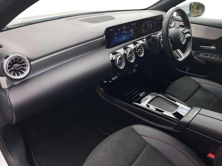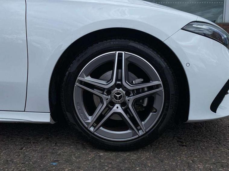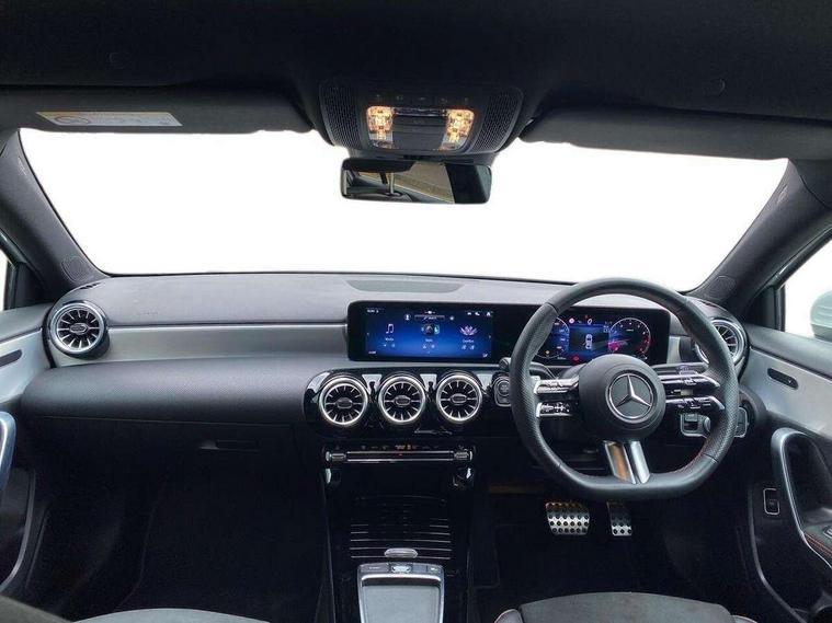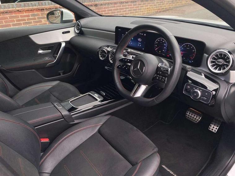 10.25 inch touchscreen central media display, 10.25" Digital instrument cluster display screen, Attention assist, Brake pad wear indicator warning light, Car wash mode, Cruise control + speed limiter, Direct steering, Direction indicators with lane change function, Dual bluetooth interfaces, DYNAMIC SELECT with a choice of driving modes (ECO, Comfort, Sport and Individual), ECO start/stop function, Engine start/stop button, Fluid level warning indicator for fuel, oil, coolant and washer fluid, Fluorescent jacket for driver, Hard-disk navigation, Hey Mercedes Voice activation, Lamp failure indicator, Lane keeping system, Mercedes me connect including emergency call system, accident recovery, breakdown and maintenance management, Mercedes me remote services, Outside temperature gauge, Owners manual in English, Pre-installation of private car share, Preinstallation for Mercedes Benz link, Remote boot closing, Service indicator (ASSYST), Smartphone integration with Apple CarPlay and Android auto, Speed limit assist, Speed sensitive power steering, Trip computer in multifunction display with current consumption indicator, Wireless charging, Lowered comfort suspension, DAB Digital radio, MBUX multimedia system, Mercedes Benz sound system (100 W) with 6 speakers, 4 Electric Front and Rear windows, Adaptive brake lights, AMG body styling - AMG front apron with front splitter and AMG rear apron and visible exhaust tailpipe trim elements, Body colour bumpers, Body colour door handles with chrome inserts, Body colour side skirt, Body coloured door mirrors, Chrome beltline strips, Diamond radiator grille with pins in fine star pattern, Electric adjustable and heated door mirrors with integrated LED side indicators, Exhaust system with 2 visible tailpipe trim elements and rear apron, Headlamp assist automatic headlamp activation, Heat insulating dark tinted rear and rear side windows, Heated glass rear windscreen + timer control, LED High Performance headlamps including integral LED daytime running lamps and adaptive highbeam assist, LED tail lamp, Privacy glass, Radio aerial, Rain sensing windscreen wipers with two sensitivity settings, Rear boot, Rear fog lights, Rear side wing doors, Third brake light featuring LED technology, Window line trim strip in chrome, 3 seat bench in 2nd row, 3 Spoke flat bottom leather multi function steering wheel with perforated leather in grip area, 4 way lumbar support, 40:20:40 split folding rear seats, Air conditioning - One zone thermatic automatic climate control with automatically controlled air distribution, Automatic child seat recognition sensor, Black air vents with surround in silver chrome, Black roof lining, Brushed stainless steel sports pedals with rubber studs, Floor mats with AMG lettering, Front centre armrest with stowage, Front door sills with Mercedes Benz lettering, Front seat backs luggage nets, Galvanished gear shift paddles on steering wheel, Heated front seats, Height/reach adjustable steering column, Interior lighting - 64 colour Ambient lighting, Interior mirror with reading lamps in black and frameless, Rear armrest with 2 cupholders, Seat occupancy sensor for front passenger seat, Single front passenger seat, Sports seats with adjustable head restraints, Stowage compartment in centre console with retractable cover, Sunvisors with illuminated vanity mirrors, Twin front cupholders, Keyless go comfort pack - A Class, Light and sight pack - A Class, Mirror package - A Class, Parking pack - A Class, Seat comfort pack - A Class, USB pack plus - A Class, 3 rear 3 point seatbelts, ABS with Brake Assist, Active bonnet, Active brake assist includes forward collision warning system with autonomous braking, Adaptive brake assist with hold function and hill start assist, Black seatbelts, Bonnet with power domes, Childproof locks manually operated for rear doors and electrically operated for rear power windows, Crash responsive emergency lighting, Driver and passenger head and side airbags, Drivers knee airbag, Dual stage driver/passenger airbags, Electronic parking brake, ESP curve dynamic assist, ESP with ASR, Front and rear seatbelt reminder, ISOFIX and top tether child seat fixing points in two outer rear seats, Tyre pressure monitoring system, Warning triangle and first aid kit, Window airbags, Alarm system/interior protection/immobiliser, Guard 360 degree vehicle protection, Remote central locking and crash sensor with emergency opening function, Light longitudinal grain aluminium trim, 18" AMG 5 twin spoke light alloy wheels, aerodynamically optimised, painted in termolite grey with high sheen finish, Summer tyres, Tirefit sealant kit,