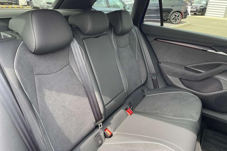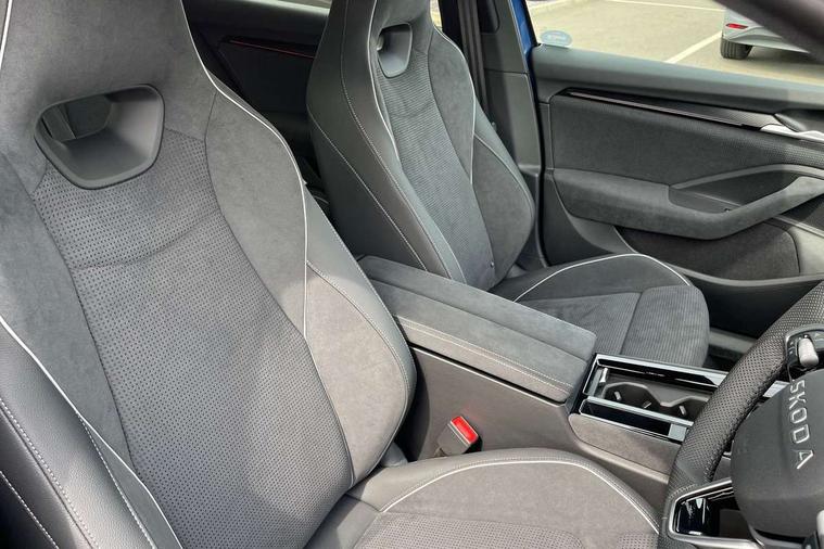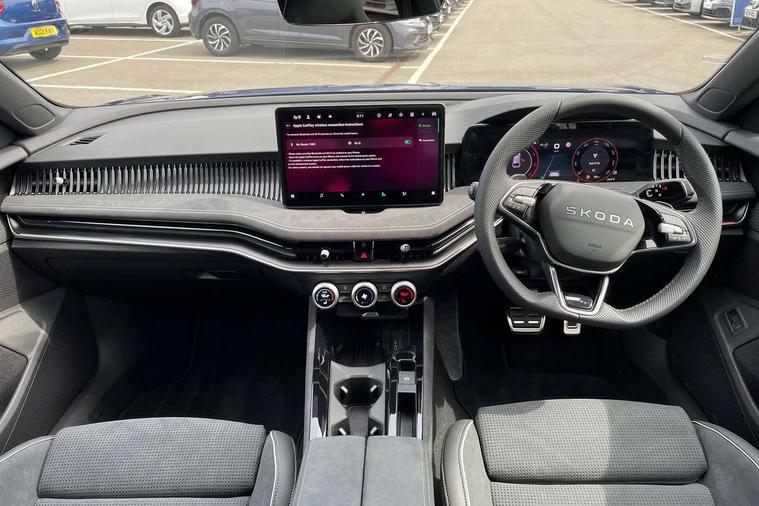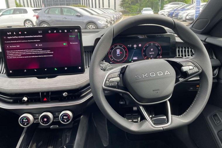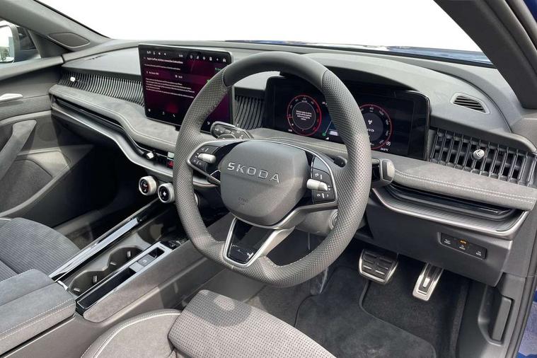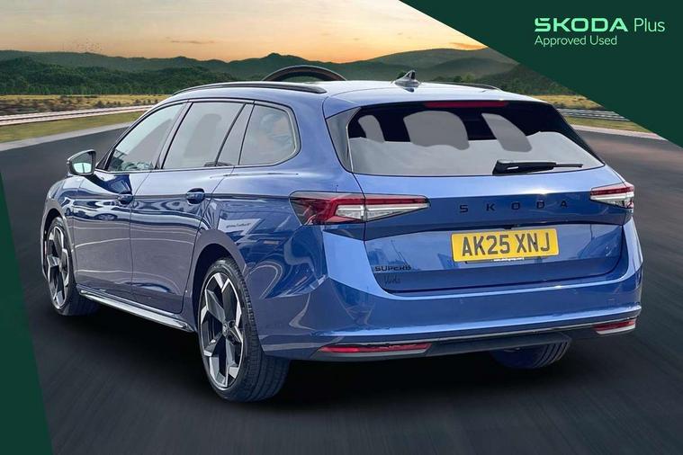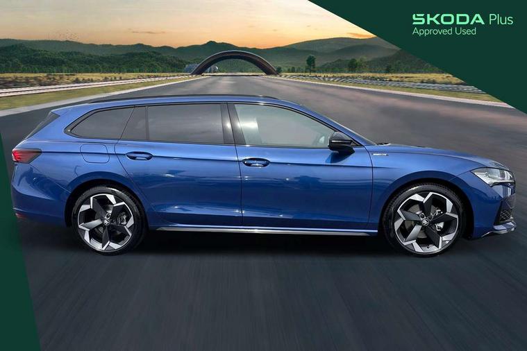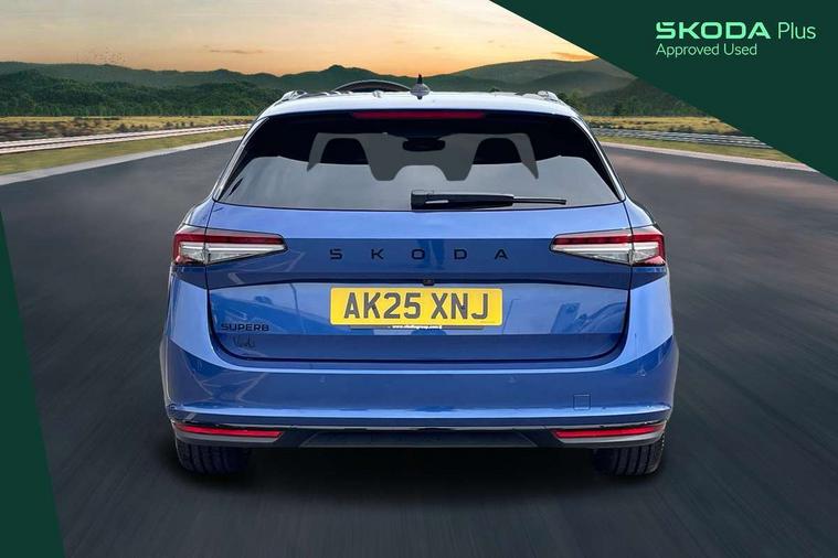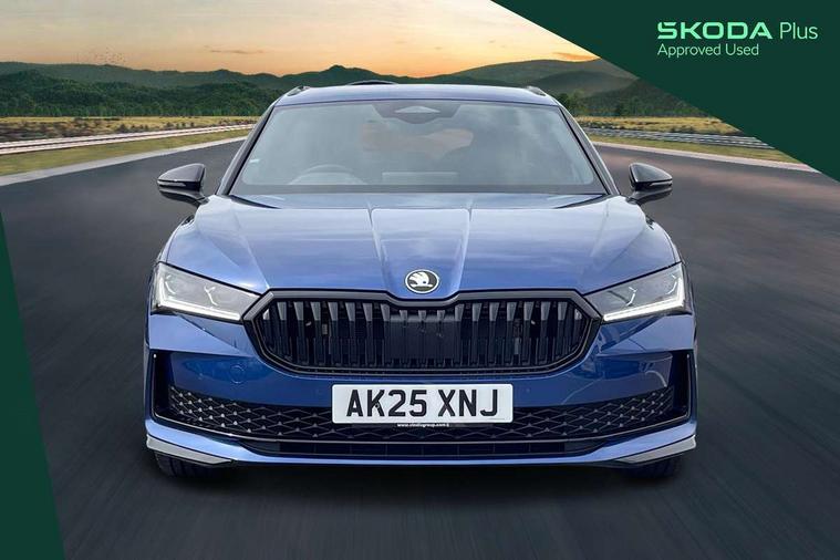 13" touchscreen display with satellite navigation, 4x USB-C ports (2x in front centre console and 2x in rear) (45W), Adaptive cruise control with speed assist, lane assist plus and traffic tram assist, Blind spot detection with door exit warning, Bluetooth system, CareConnect and Emergency Call, ChatGPT functionality, Driver fatigue sensor, Front assist with extended predictive pedestrian protection, Front cross traffic assist, PAS, Quick start all heating software functionality, Stop/start engine system, Traffic sign recognition, Turn assist with evasive assistance, Virtual Cockpit - 10.25" digital display, Voice control system, Washer for rear camera, Wireless charging for one smartphone (15W) with cooling function, Wireless smartlink apple carplay, SmartLink+ android auto, Dynamic chassis control plus with progressive dynamic steering, DAB Digital radio, Display cleaner, FM radio connection, Web radio connection, Acoustic side windows and interior noise suppression, Backdrop lighting, Black exterior styling window and grille surrounds, Black roof rails, Body colour door handles, Dynamic range control with poor weather light and integrated fog light, Electrically adjustable, heated, folding and driver side auto-dimming door mirrors with memory function, integrated indicators and logo projection, Frameless auto-dimming rear view mirror with USB-C, Gloss black door mirrors, Ice scraper in fuel tank cap, LED 3rd brake light, Light assist with High beam control, Light assistant (coming/leaving home/tunnel light), Privacy glass, Rear fog lights (x2), Rear roof spoiler, Rear side wing doors, Rear windscreen wiper, Skoda lettering in black, Sportline badging, Sports bumpers, Windscreen wipers with rain sensor, 12V socket 1x centre console 1x boot, 14-way electrically adjustable, memory, front seats with 4-way pneumatic lumbar support, and extendable thigh support with smart comfort entry aid, 2x cargo elements in boot, 2x light in boot, 3 seat bench in 2nd row, 4x foldable bag hooks in boot, 60:40 Split folding rear seats, Aluminium pedals, Bottle holders in the front doors 1.5 litre bottle and rear 1.5 litre bottle, Cup holder in front with easy open mat, Front armrest with storage box, Front sports seats, Heated and ventilated front seats, Height adjustable front and rear head restraints, Illuminated glovebox, Interior lights with control switches, Isofix child seat fittings in outer rear and front passenger seats, LED front and rear reading lights, Single front passenger seat, Skoda lettering on steering wheel, Storage compartment with cover, Storage pockets on back of front seats, Sun visors with illuminated vanity mirrors, Ticket holder on A Pillar, Tri zone climate control, Umbrella in driver's door, Light and view package - Superb, Transport package - Superb Estate, 3 rear seatbelts, 8 Airbags - Front driver and passenger, front side driver and passenger, centre, curtain front and rear, drivers knee, Crew protect assist, Driver and passenger seatbelts with warning light, Electronic parking brake, ESC including ABS, EBV, MSR, ASR, EDS, HBA, DSR, RBS, CBC, multi-collision brake (MKB) and Auto hold, Hill hold assist, Power operated child lock in rear doors, Alarm with interior monitoring tilt sensor and back up horn, Backrest remote release from trunk, Electronic engine immobiliser, Keyless start/stop, Remote central locking with SAFE system, Third key, Walk away locking, Decorative front door sills, 19" Torcular polished black alloy wheels with anti theft wheel bolts,