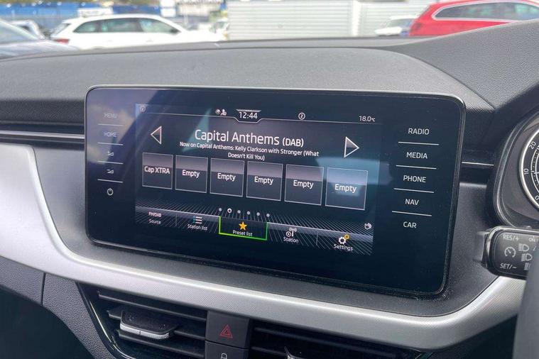 Amundsen satellite navigation with 9.2" glass colour touchscreen display, web radio, voice control and traffic sign recognition, Bluetooth system, E-call, Front assist system, Gesture control, PAS, Service indicator, Speed limiter, Wireless Smartlink for Apple CarPlay (wired for Android Auto), 8 Speakers, Auxiliary input socket, DAB Digital radio, Body colour bumpers, Body colour door mirrors and handles, Chrome grille surround, Dimming rear view mirror with black surround, Electrically adjustable and heated door mirrors, Front and rear electric windows, Headlight range control, Heated rear window, LED rear lights - low functionality, LED third brake light, Light sensors, Privacy glass, Rain sensor, Rear fog lights, Rear side wing doors, Rear wiper, 12V Accessory socket in centre console, 3 seat bench in 2nd row, Chrome inner door handles, Cloth upholstery, Front head restraints, Glove compartment with illumination, Height adjustable driver and front passenger seats - manual, Ice scraper, Isofix child seat fittings on outer rear seats, ISOFIX on front passenger seat, Manual lumbar support for front seats, Rake/reach adjustable steering wheel, Reading lights, Single front passenger seat, Sun visors with illumination on front passenger, Textile floor mats, Third rear headrest, Top tether for front passenger seat, Umbrella in driver's door, 3x3 point rear seatbelts, Airbags - driver and front passenger, ESP, Front passenger airbag deactivation switch, Front side airbags with curtain airbags, Hill hold control, Manual parking brake, Manual rear child locks, One tone horn, Rear disc brakes, Seatbelt reminder for driver an co-driver, Traction control, Tyre pressure monitor, Anti-theft alarm system with interior monitoring, backup horn, towing protection and remote central locking with SAFE system, Anti-theft wheel bolts, Electronic engine immobilizer, Silver haptic decorative insert on the dashboard with hot stamping in glossy black,