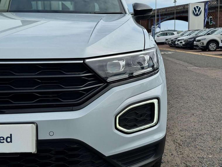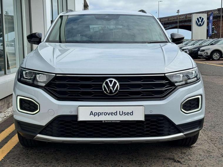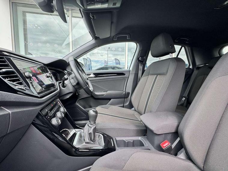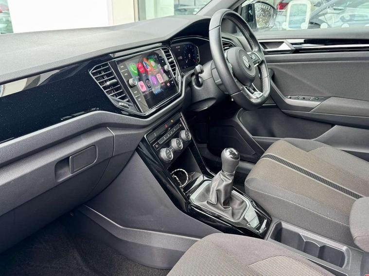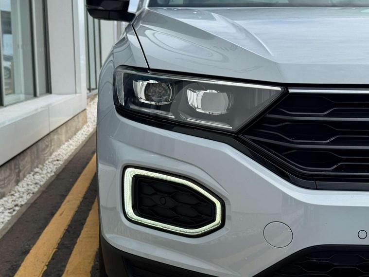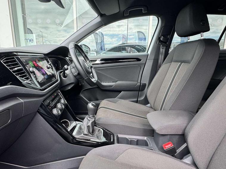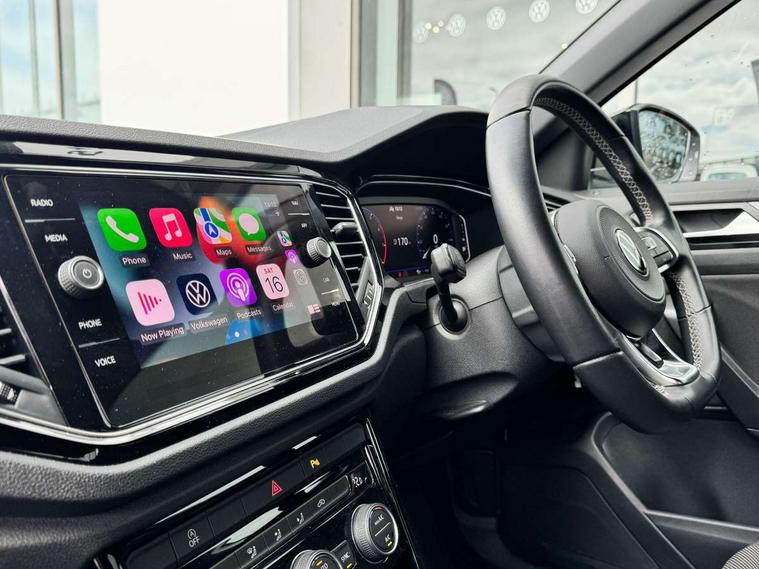 'Lights On' Reminder warning buzzer, Adaptive cruise control, Bluetooth telephone and audio connection for compatible devices, Car information display, Driver tips and journey analysis, Emergency call service, Lane assist with warning text instrument cluster, Modified key software - reduce switch off time for key status change to Long no motion, Multifunction camera, Multifunction computer with visual gear change recommendation for fuel consumption, Service interval indicator, Think blue trainer driver tips and journey analysis, Warning sound and light for doors and tailgate open, Warning sound and light for front seatbelts unfastened, Wireless app connect for apple carPlay, Battery regeneration during braking, Start/stop function with battery regeneration, DAB Digital radio, Diversity antenna for FM reception, Multi device interface (MDI) with USB connection, Music playback - MP3, WMA and AAC files, Premium USB cable in choice of either Apple or Android smartphone compatibility, SD card slot, Simultaneous pairing of 2 compatible mobile devices, Single CD player, glovebox mounted, SMS functionality - read, compose and send SMS messages using touch-screen display, Storage compartment with longitudinal and height adjustable in armrest and two rear air vents, Title and cover art display, USB-C Interface and USB charging socket, Auto dimming interior rear view mirror, Automatic coming/leaving home lighting function and daytime running lights, Automatic hazard lights activation under emergency braking, Black grained lower door protectors, Black grained wheel arches, Black roof rails, Body colour door handles, Body colour sports bumpers with silver metallic underbody fascia, Body coloured bumpers and radiator grille with chrome trim and front fog lamps with chrome bezel, Chrome trim on upper and lower radiator grille, Dusk sensor, Electrically foldable, adjustable and heated door mirrors with puddle lights and reverse activated kerb-view adjustment on passenger's door mirror, Exhaust tailpipes in black, External USB type C socket and charging sockets, Front and rear electric windows, Front windscreen wiper with intermittent wipe and 4 position delay, Fully galvanised body, Heated rear window, High level 3rd brake light, LED headlamps with automatic range adjustment and unique signature LED separate daytime running lights, LED rear number plate lights, LED tail lamp rear comination lamps, Privacy glass, Rain sensor, Rear tinted glass from B-pillar backwards approx 65% tinted, Rear wash/wipe with intermittent wipe setting, Trim strips on grille and vehicle side, Volkswagen roundel, 12V socket in centre console storage area, 3 rear head restraints, 4 load lashing points in luggage compartment, Black roof lining, Climate control - 2 zone electronic air conditioning with automatic air recirculation and allergy filter, Door and side trim panel, Drawer under drivers seat, Front centre armrest, Front cupholders x 2, Front seat back storage pockets, Glovebox, Height adjustable front seats, Height/reach adjust steering wheel, Instrument lighting, white adjustable panel illumination, Interior light in footwell, Isofix easy fit child seat preparation for 2 outer rear seats, LED interior light with switch off delay/dimmer and 2 front/rear LED reading lights, Load through provision with single cup holder when folded down, Luggage compartment cover, removable, Luggage compartment lighting, Split folding rear seat backrests with centre armrest, Storage compartment in left and right luggage area, Storage compartment in rear doors, Storage compartments in driver and front passenger doors, Sunvisors with illuminated vanity mirrors, Three spoke multi-function leather trimmed steering wheel and gearknob, White ambient lighting, Black decal on C-pillar pack - T-Roc, 3 rear three point seatbelts, ABS, Curtain airbags, Driver and front passenger safety-optimised head restraints, Drivers and front passengers airbags with passengers deactivation switch, Drivers seatbelt reminder, Electronic parking brake with auto hold, Electronic stability control (ESC) includes ASR, EDL, EDTC and trailer stabilisation function, Front assist with city emergency braking and pedestrian monitoring, Front seat side impact airbags, Predictive pedestrian protection, Rigid safety cell with front and rear crumple zones, Single tone horn, Three point height adjust front seatbelts + pretensioners, Tyre pressure loss indicator, Ventilated front and rear disc brakes, Volkswagen roadside assistance, Alarm with remote central locking and interior protection, Electronic engine immobiliser, Remote central locking with SAFELOCK, radio remote control with 2 remote control folding keys, Black decorative trims, Piano black decorative inserts in dash, centre console and door panel, 18" Arlo black diamond turned surface alloy wheels with low rolling resistance tyres and anti theft wheel bolts,