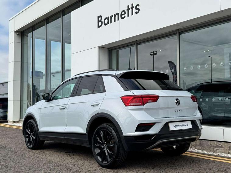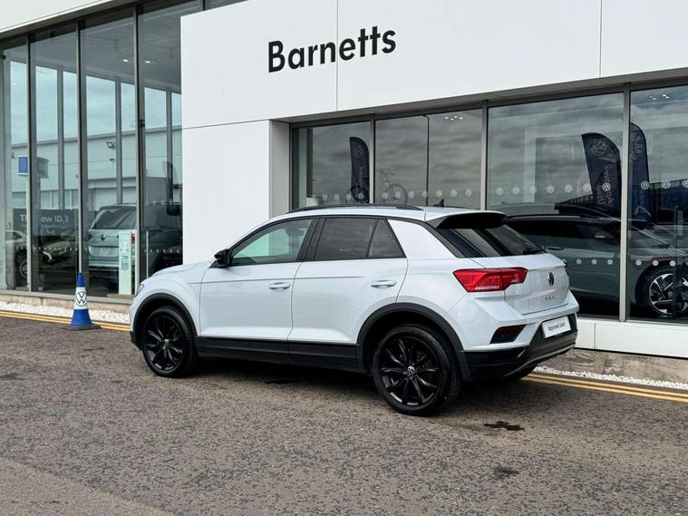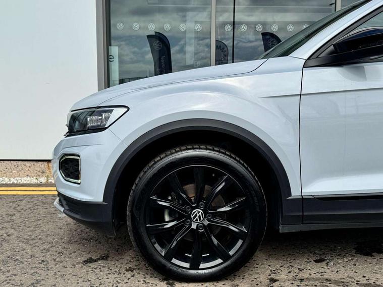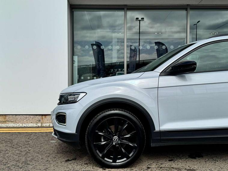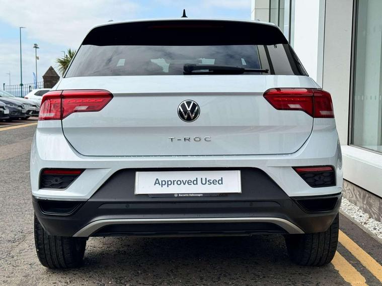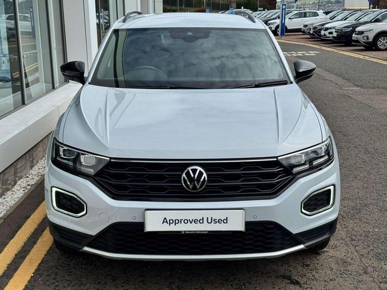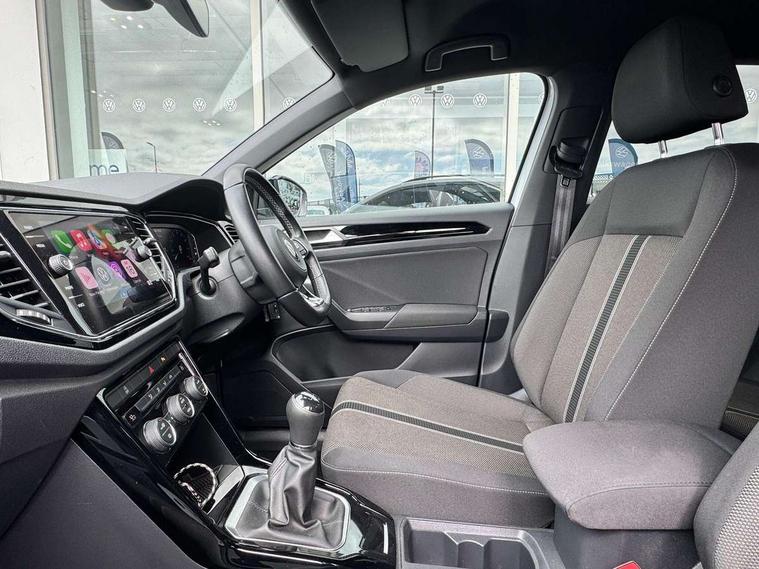'Lights On' Reminder warning buzzer, Adaptive cruise control, Bluetooth telephone and audio connection for compatible devices, Car information display, Driver tips and journey analysis, Emergency call service, Lane assist with warning text instrument cluster, Modified key software - reduce switch off time for key status change to Long no motion, Multifunction camera, Multifunction computer with visual gear change recommendation for fuel consumption, Service interval indicator, Think blue trainer driver tips and journey analysis, Warning sound and light for doors and tailgate open, Warning sound and light for front seatbelts unfastened, Wireless app connect for apple carPlay, Battery regeneration during braking, Start/stop function with battery regeneration, DAB Digital radio, Diversity antenna for FM reception, Multi device interface (MDI) with USB connection, Music playback - MP3, WMA and AAC files, Premium USB cable in choice of either Apple or Android smartphone compatibility, SD card slot, Simultaneous pairing of 2 compatible mobile devices, Single CD player, glovebox mounted, SMS functionality - read, compose and send SMS messages using touch-screen display, Storage compartment with longitudinal and height adjustable in armrest and two rear air vents, Title and cover art display, USB-C Interface and USB charging socket, Auto dimming interior rear view mirror, Automatic coming/leaving home lighting function and daytime running lights, Automatic hazard lights activation under emergency braking, Black grained lower door protectors, Black grained wheel arches, Black roof rails, Body colour door handles, Body colour sports bumpers with silver metallic underbody fascia, Body coloured bumpers and radiator grille with chrome trim and front fog lamps with chrome bezel, Chrome trim on upper and lower radiator grille, Dusk sensor, Electrically foldable, adjustable and heated door mirrors with puddle lights and reverse activated kerb-view adjustment on passenger's door mirror, Exhaust tailpipes in black, External USB type C socket and charging sockets, Front and rear electric windows, Front windscreen wiper with intermittent wipe and 4 position delay, Fully galvanised body, Heated rear window, High level 3rd brake light, LED headlamps with automatic range adjustment and unique signature LED separate daytime running lights, LED rear number plate lights, LED tail lamp rear comination lamps, Privacy glass, Rain sensor, Rear tinted glass from B-pillar backwards approx 65% tinted, Rear wash/wipe with intermittent wipe setting, Trim strips on grille and vehicle side, Volkswagen roundel, 12V socket in centre console storage area, 3 rear head restraints, 4 load lashing points in luggage compartment, Black roof lining, Climate control - 2 zone electronic air conditioning with automatic air recirculation and allergy filter, Door and side trim panel, Drawer under drivers seat, Front centre armrest, Front cupholders x 2, Front seat back storage pockets, Glovebox, Height adjustable front seats, Height/reach adjust steering wheel, Instrument lighting, white adjustable panel illumination, Interior light in footwell, Isofix easy fit child seat preparation for 2 outer rear seats, LED interior light with switch off delay/dimmer and 2 front/rear LED reading lights, Load through provision with single cup holder when folded down, Luggage compartment cover, removable, Luggage compartment lighting, Split folding rear seat backrests with centre armrest, Storage compartment in left and right luggage area, Storage compartment in rear doors, Storage compartments in driver and front passenger doors, Sunvisors with illuminated vanity mirrors, Three spoke multi-function leather trimmed steering wheel and gearknob, White ambient lighting, Black decal on C-pillar pack - T-Roc, 3 rear three point seatbelts, ABS, Curtain airbags, Driver and front passenger safety-optimised head restraints, Drivers and front passengers airbags with passengers deactivation switch, Drivers seatbelt reminder, Electronic parking brake with auto hold, Electronic stability control (ESC) includes ASR, EDL, EDTC and trailer stabilisation function, Front assist with city emergency braking and pedestrian monitoring, Front seat side impact airbags, Predictive pedestrian protection, Rigid safety cell with front and rear crumple zones, Single tone horn, Three point height adjust front seatbelts + pretensioners, Tyre pressure loss indicator, Ventilated front and rear disc brakes, Volkswagen roadside assistance, Alarm with remote central locking and interior protection, Electronic engine immobiliser, Remote central locking with SAFELOCK, radio remote control with 2 remote control folding keys, Black decorative trims, Piano black decorative inserts in dash, centre console and door panel, 18" Arlo black diamond turned surface alloy wheels with low rolling resistance tyres and anti theft wheel bolts,