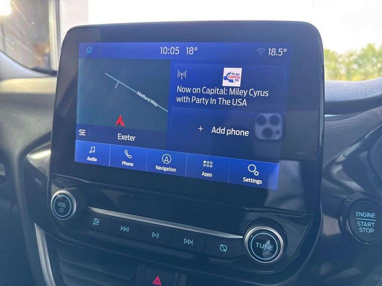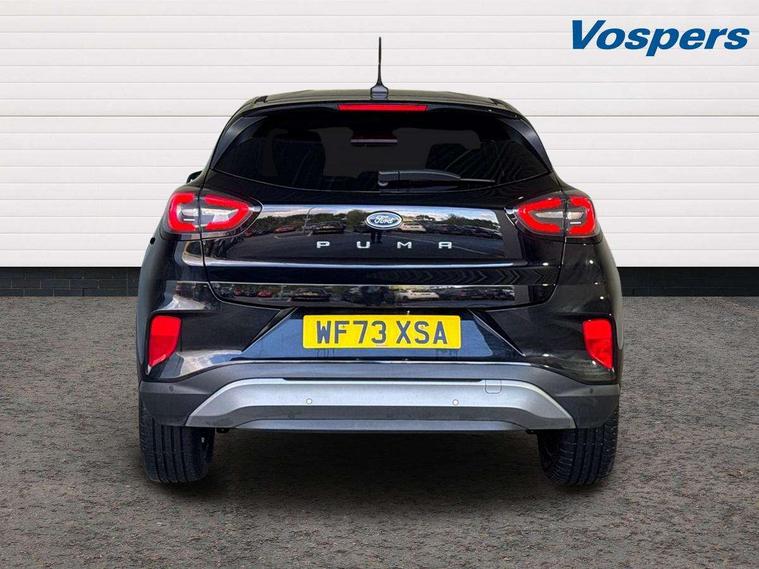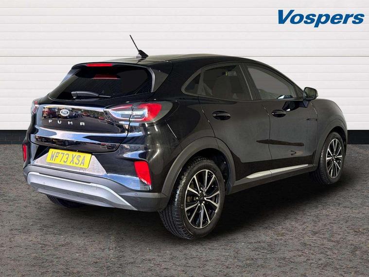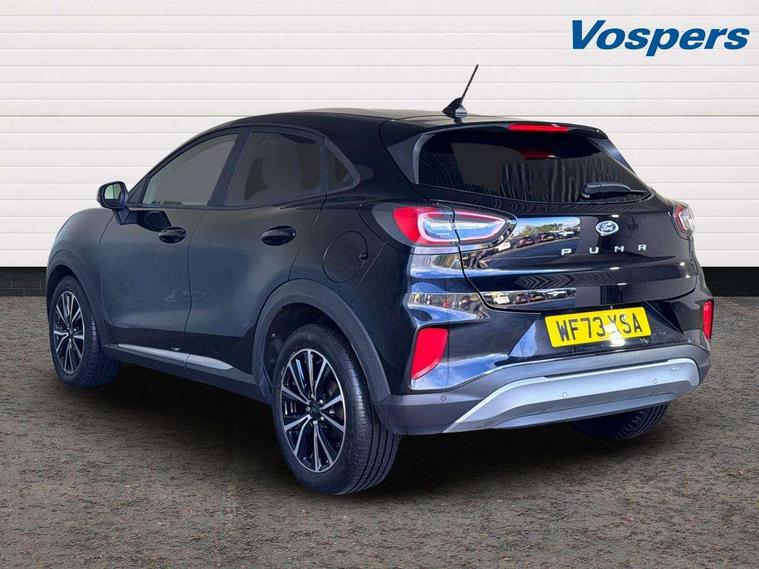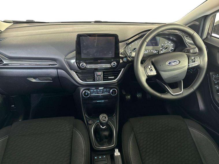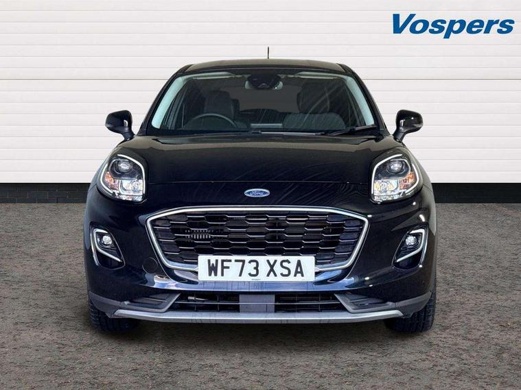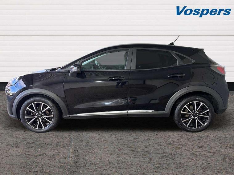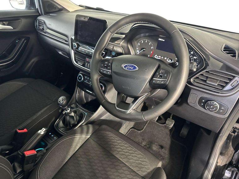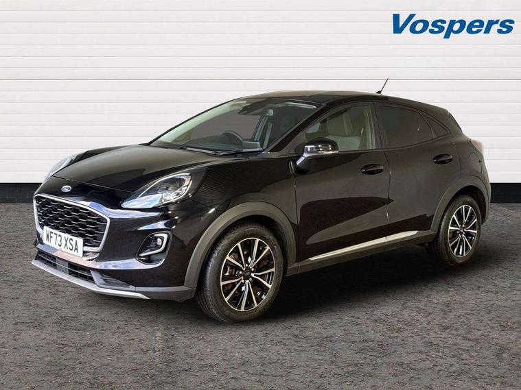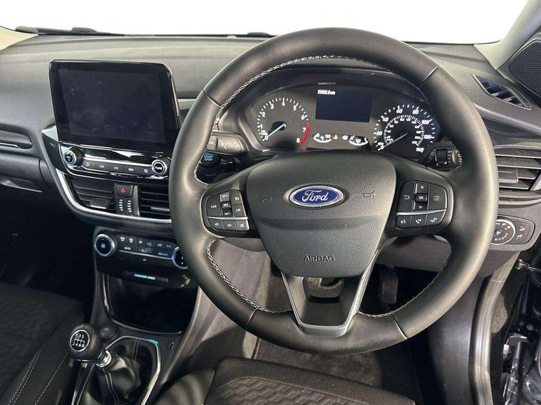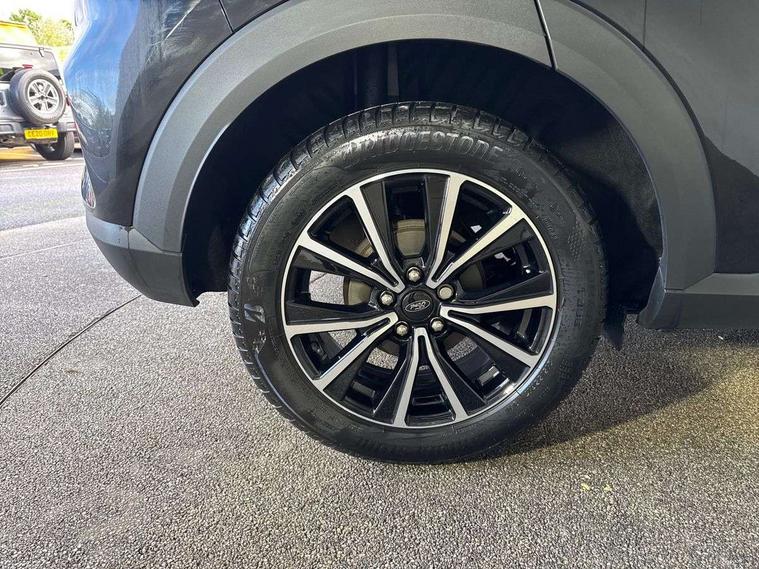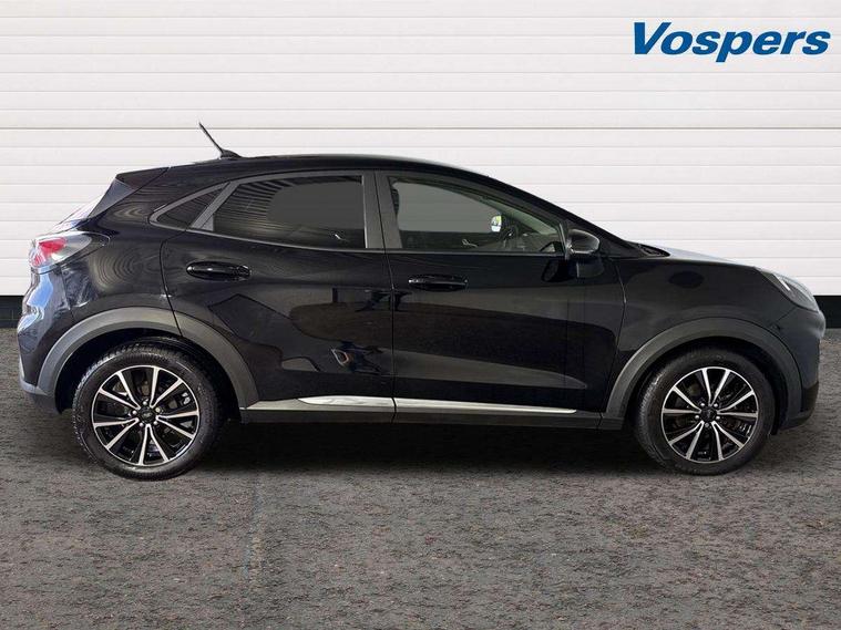 Driver impairment monitor, Emergency call service, Ford easy fuel, Lane keeping aid with lane departure warning, Power assist steering, Power start button, Rear parking sensor, Selectable drive modes(Normal, sport, Eco, trail, slippery), Speed sign recognition, Standard suspension, Automatic headlights with auto high beam, Automatic rain sensing wipers, Body colour rear spoiler, LED rear lamps, Power foldable heated door mirrors with puddle lamps, Projector headlamps with LED day time running lights and front fog lamps, Quickclear heated windscreen, Rear side wing doors, Rear wiper, Third brake light, 3 seat bench in 2nd row, Centre console with armrest and stowage, Electronic automatic temperature control (EATC), Ford megabox extended bootspace, Front and rear head restraints, Front floor mats, Manual 2 way passenger seat adjustment, Manual 4 way driver seat adjust with lumbar adjustment, Sensico leather steering wheel/gear knob/handbrake, Single front passenger seat, Titanium cloth upholstery, Ford SYNC 3 navigation pack - Puma, 3 rear seatbelts, Child safety lock, Electronic stability control (ESC) and hill start assist, Pedestrian/cyclist detection & post-collision braking, Pre collision assist system, Tyre pressure monitoring system (TPMS), Thatcham alarm, 17" 10 spoke absolute black machined finish alloy wheel,