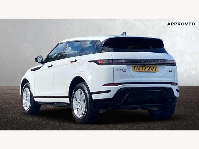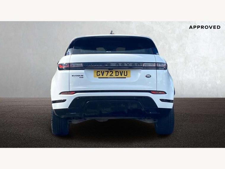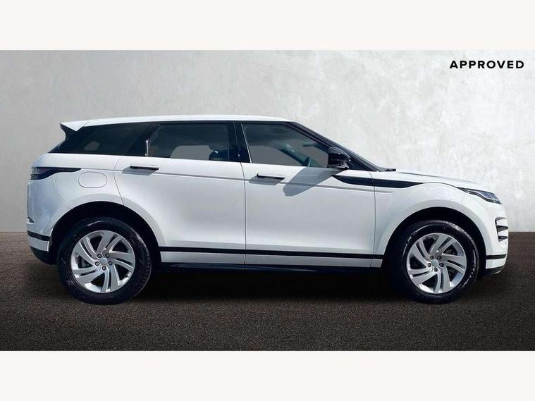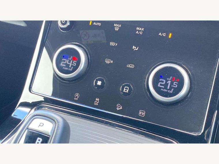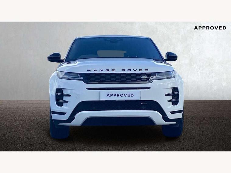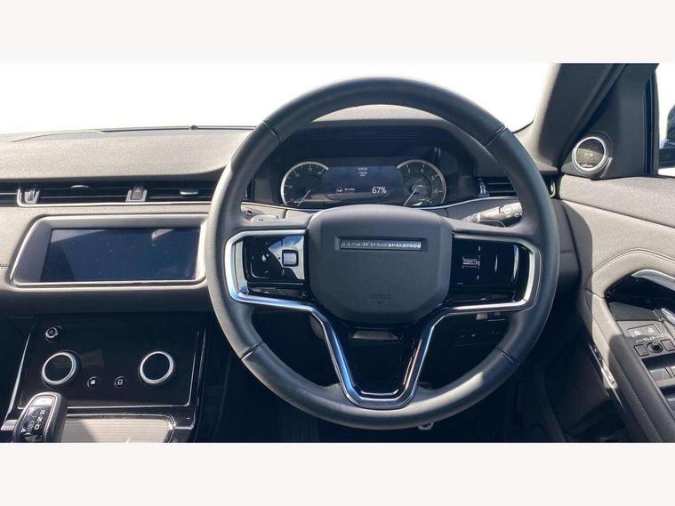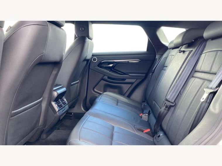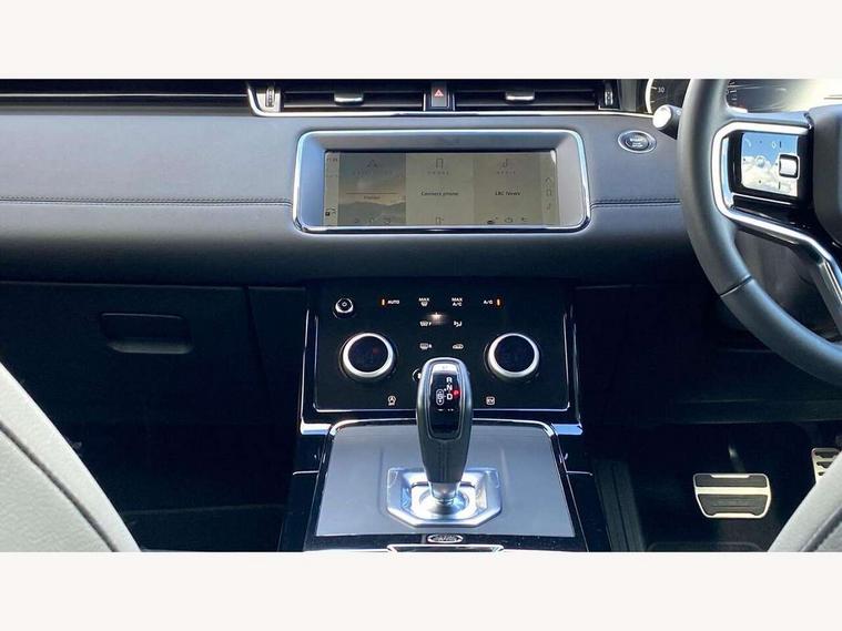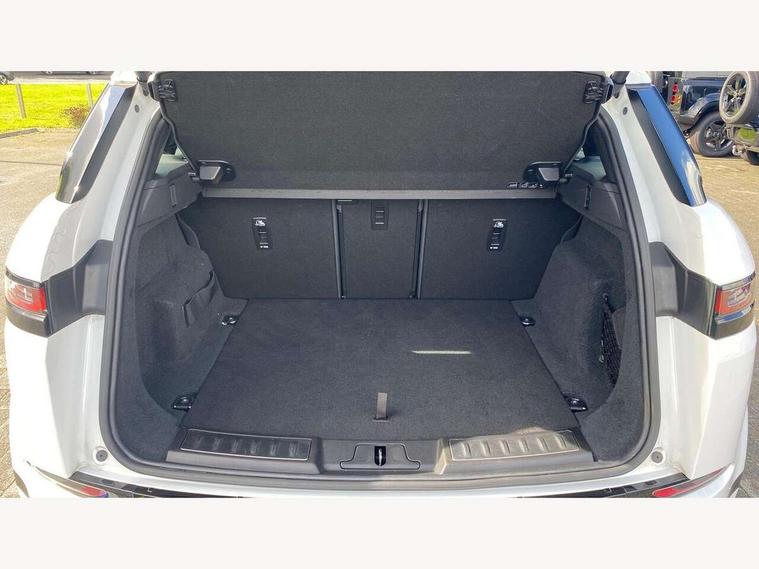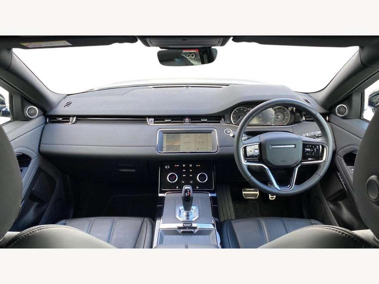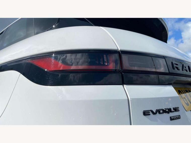 Adaptive cruise control, Android Auto, Apple car play, Blind spot assist, Bluetooth connectivity, Brake pad wear indicator warning light, Driver condition monitor, eCall emergency system, Electronic power assisted steering (EPAS), Front and rear parking aid, InControl remote, Land Rover InControl apps, Lane keep assist, Pivi pro connected includes upgraded infotainment, connected navigation pro, Nuance speech licence, Push button starter, Rear collision monitor, Rear traffic monitor, Traffic sign recognition with adaptive speed limiter, Voice control system, 7 kW onboard charger, All terrain progress control, Electric rear axle drive, Home charging cable, Large fuel tank, Passive suspension, Public charging cable, Terrain Response 2 Auto, Digital Audio Broadcast radio-DAB, Steering wheel mounted controls, Auto headlights, Automatic headlight levelling, Electric windows with one touch open/close and anti trap, Evoque and R-Dynamic badge, Flush deployable exterior door handles, Heated rear window with timer, Heated washer jets, Heated windscreen, P300e badge, Power fold, auto-dimming, heated door mirrors with approach lights and auto dimming driver side, Rain sensing windscreen wipers, Rear fog lights, Rear side wing doors, Rear wiper, Tailgate spoiler, Third brake light, 40:20:40 split folding rear seats with centre headrest and armrest, Ambient interior lighting, Bright metal pedals, Isofix system on outer rear seats, Overhead lighting console, Overhead stowage for sunglasses, Passive front head restraints, Rear air vents, Rear centre headrest, Rear head restraints, Satin chrome gearshift paddles, Single passenger seat, Sunvisors with illuminated vanity mirrors, Twin sliding front centre armrest, 3 rear 3 point seatbelts, Anti-lock braking system (ABS), Customer configurable autolock, DSC - Dynamic Stability Control, Electronic brake force distribution, Electronic parking brake, Electronic traction control, Emergency braking, Front and rear seatbelt reminder, Hill descent control, Hill launch assist, Low traction launch, Power operated child locks, Roll stability control, Six airbags - Driver and passenger airbags/driver knee airbag/front side airbag and curtain airbags, Torque vectoring brake, Tyre pressure monitoring system, Alarm, Immobiliser, Intrusion sensor, Keyless entry, Locking wheel nuts,