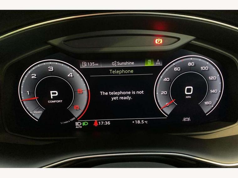 10.1" and 8.6" Dual colour touchscreens, Audi connect safety and service (e-call), Audi drive select, Audi lane departure warning, Audi phone box with wireless charging, Audi smartphone interface, Automatic start/stop system, Electro-mechanical PAS, Low washer fluid indicator, MMI - Multi Media Interface control system, MMI navigation plus with MMI touch, On board computer, Operating buttons in black, glass look with haptic feedback, Power operated tailgate, Rear view camera, Service interval indicator, Virtual cockpit, Voice control system, Adaptive air suspension, Diesel particulate filter, 2 USB ports, Audi music interface, Aux-in socket, DAB Digital radio, Acoustic windscreen, Auto dimming rear view mirror, Coming/leaving home lighting function, Electric front+rear windows, Electric/heated/folding door mirrors with memory, HD Matrix LED headlights with dynamic front and rear indicators, Headlight washers, Heat insulating glass, LED daytime running lights, LED signature DRL, Privacy glass, Rain and light sensors, Rear wiper, S line badges on front wings, S Line body styling, S line front and rear bumpers, air inlets and door trim strips, 4 way electrically adjustable lumbar support for drivers seat, 4 way electrically adjustable lumbar support for front passenger seat, 40:20:40 split folding rear bench seat, Black cloth headlining, Door sill trims with S line logo, Front centre armrest with storage compartment and angle adjustment, Front head restraints, ISOFIX on front passenger and rear outer seats, Luggage compartment sill protection in stainless steel, Rear centre armrest with 2 cupholders, Rear headrests, Self-locking centre differential, Stainless steel pedals, Sunvisors with illuminated vanity mirrors, Tool kit, Top tether anchor plate for isofix child seat, 3 point seatbelts on all seats, ABS, Curtain airbags, Driver and passenger airbags, EDL + ASR, Electromechanical parking brake, Electronic stability control, ESP, Front passenger airbag deactivation, Front side airbags, Hill descent control, Hill hold assist, Pre sense front, Predictive pedestrian protection, Seatbelt warning, Traction control, Tyre pressure monitoring system, Warning triangle and first aid kit, Anti theft alarm, Anti-theft wheel bolts and wheel loosening detection, Immobiliser, Keyless Go access/ignition system, Remote central locking, Tyre repair kit,