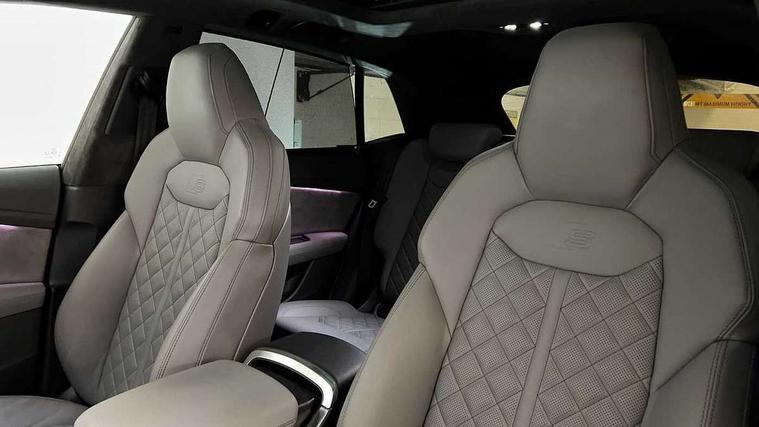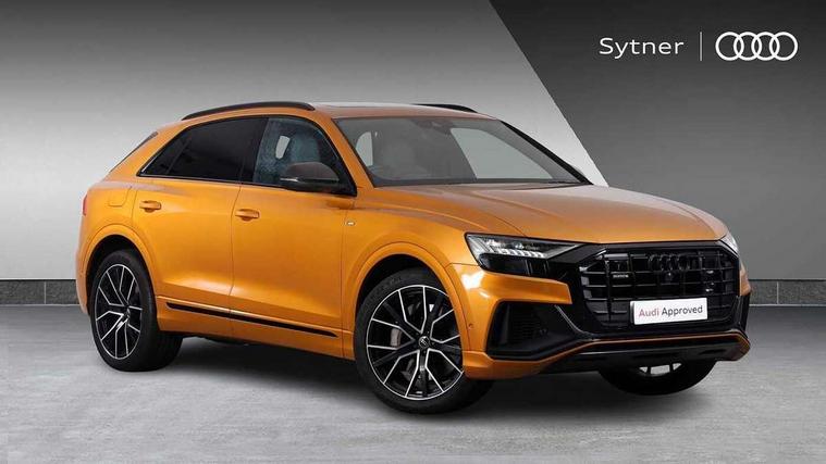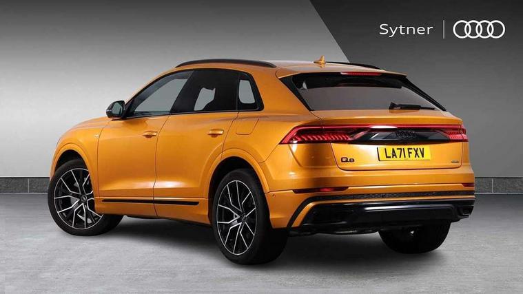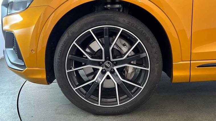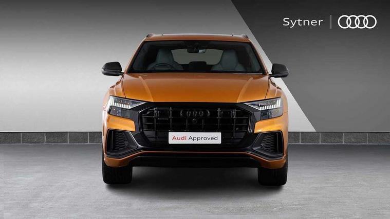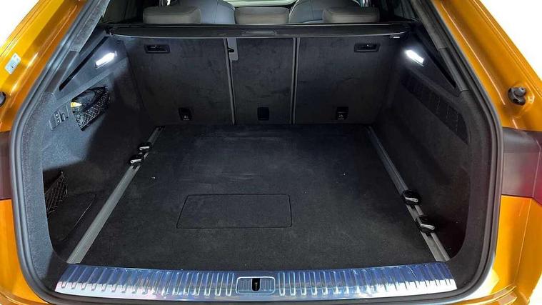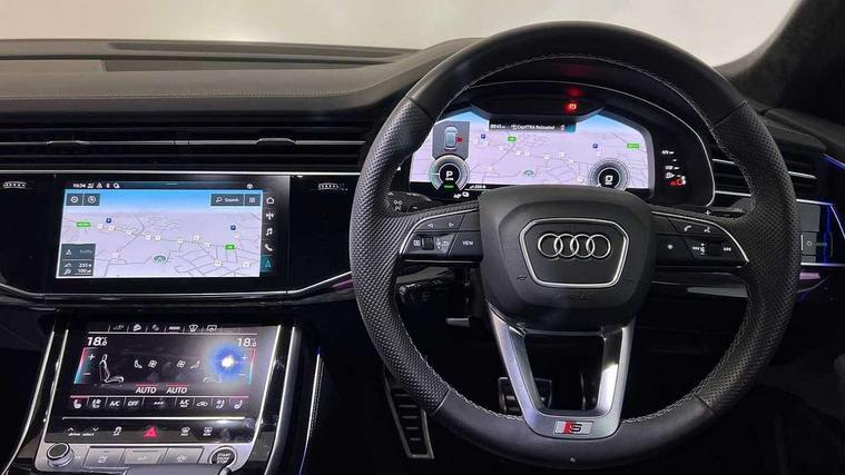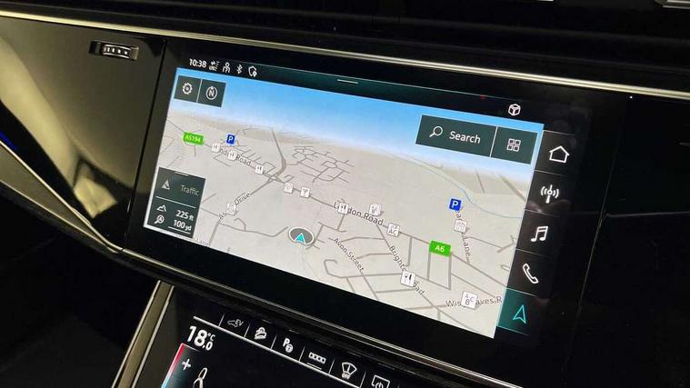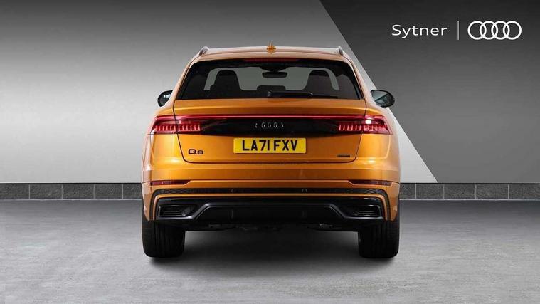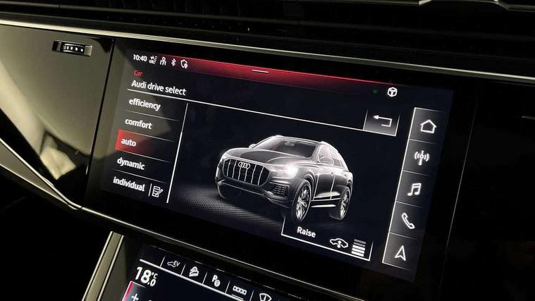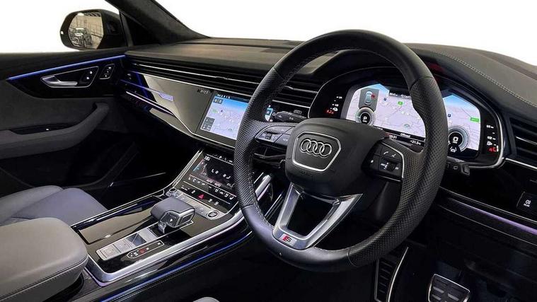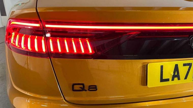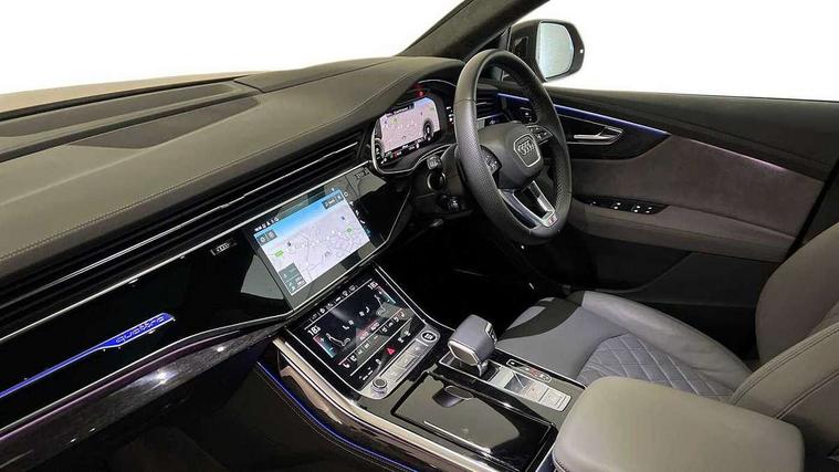 10.1" and 8.6" Dual colour touchscreens, 2 USB ports with charge and data functions in the rear, Audi connect safety and service (e-call), Audi connect with Amazon Alexa Integration, Audi drive select, Audi virtual cockpit plus, Automatic start/stop system, Electro-mechanical PAS, Head up Display, Low washer fluid indicator, MMI - Multi Media Interface control system, MMI navigation plus with MMI touch, Natural voice recognition, On board computer, Operating buttons in black, glass look with haptic feedback, Power door closure, Power operated tailgate, Service interval indicator, Smartphone interface includes wireless Apple carplay/Android Auto, 3 pin 10 amp domestic charging cable, 48V Mild hybrid technology, 7.4 kW onboard charger, Adaptive sport air suspension, Quattro all wheel drive with self locking centre differential, Type 2 mode 3 charging cable, Type 2 socket for AC charging, Audi music interface with 2 USB ports with charge and data functions, Aux-in socket, DAB Digital radio, 3rd brake light, Acoustic windscreen, Adaptive windscreen wipers with integrated washer jets, Audi Beam uses LEDs to project Vorsprung logo, Audi HD Matrix LED headlights with dynamic front and rear indicators, Auto dimming frameless rear view mirror, Coming/leaving home lighting function, Electric front+rear windows, Electric panoramic glass sunroof, Electrically folding auto dimming/adjustable/heated door mirrors with memory function, LED side indicators and kerb view function for passenger side, Gloss black finish for exterior Audi rings and Q8 logo without engine badging, Headlight washers, Heat insulating glass in windshield, LED signature daytime running lights, Platinum grey front spoiler lip and diffuser insert, Privacy glass - dark tinted rear and rear side windows from B-pillar backwards, Rain and light sensors, Rear side wing doors, Rear wiper, 3 zone automatic air conditioning including remote pre-conditioning, 4-way lumbar support for front seats, 40:20:40 split folding rear bench seat, Black Alcantara headlining, Comfort front centre armrest, Double sun visor with illuminated vanity mirror on driver and passenger side extendable, Driver and front passenger seat memory function for electrically adjustable front seats, Electric sunblind for the rear side windows and manual sunblind for the rear window, Front head restraints, Front/rear floor mats, Heated front and outer rear seats, ISOFIX child seat mounting for front passenger seat and 2 outer rear seats with top tether child seat mounting for all 3 rear seats, Luggage compartment sill protection in stainless steel, Massage and ventilation function for front seats, Rear centre armrest with 2 cupholders, Rear headrests, Rear seat bench plus, Single front passenger seat, Stainless steel pedals, City assist pack - Q8, Comfort and Sound pack - Q8, Extended leather pack - Q8, Titanium Black Styling Pack - Q8, Tour pack - Q8, 3 point seatbelts on all seats, Audi pre sense front, Child locks on rear doors, Driver and front passenger, front side and curtain airbags, Electromechanical parking brake, Electronic Stability Control (ESC) including ABS, ASR and EDL, Front passenger airbag deactivation, Hill descent control, Hill hold assist, Predictive pedestrian protection, Seatbelt monitoring, Traction control, Tyre pressure loss indicator, Warning triangle and first aid kit, Anti theft alarm with tow away protection, Anti-theft wheel bolts and wheel loosening detection, Immobiliser, Keyless go with remote central locking, Polished oak trim with grey finish inlay, Tool kit, Tyre repair kit,