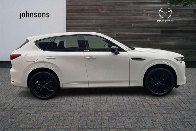 Emergency lane keeping with blind spot assist, Low washer fluid warning light, 12.3" Colour entertainment centre display with mazda connect infotainment, 12.3" TFT Colour display, Adjustable speed limiter, Blind spot assist, Blind spot monitoring with rear cross traffic alert, Cruise control, Distance alert system, Driver attention alert system, Driver Monitoring with personal identification, E-call with GPS, Emergency stop signalling system, Exit warning function, Front and rear parking sensors, Ingress / Egress support and automatic driver position guide, Integrated bluetooth, Intelligent speed assist, Kinematic posture control, Lane keep assist system (LAS) with Lane departure warning system (LDWS), Mazda Driver Personalisation System, Mazda hybrid navigation system with european mapping, Multimedia Commander, PAS, Power lift gate with handsfree function, Power start/stop button, Reversing camera with static guide lines, Speed alert, Traffic sign recognition enhanced with mandated excessive speed warning, Trip computer, Windscreen projected colour active driving display, Wireless apple car play/android Auto, Type 2 Mode 2 cable for AC charging via UK 3-pin plug, 7.2 kw On board Charger, Mi-Drive (Normal, Sport, Off-road, Towing and EV mode), Type 2 Mode 3 cable for AC charging via home or public charge points, AM/FM and DAB radio, Bose surround sound system with 12 Speaker, Bose center point, Bass match and audio pilot technology, Steering wheel mounted audio/bluetooth controls, USB-C inputs (x2 front and x2 rear), Auto dimming driver's door mirror, Automatic headlight levelling, B-pillar and C-pillar garnishes in gloss black finish, Body colour roof spoiler, Body coloured bumpers, Body coloured lower bumper, wheel arch and side mouldings, Coming/leaving home lighting function, Dark plated headlight lense, Dark plating finish signature wing in front grille, Dark plating front side garnish, Differentiated front bumper design to accentuate the intake, Dusk sensing headlights, Electric front/rear windows with one touch auto up/down, Electrically adjustable, heated auto power folding door mirrors with memory, Frameless auto dimming interior rear view mirror, Front kodo turn signal, Front wiper de-icer, Gloss black door mirrors, Headlight washers, High beam control, Honeycomb radiator grille in piano black, LED 3rd brake light, LED headlamps, LED rear signature combination lamps, Rain sensing front wipers with adjustable sensitivity and speed, Rear side wing doors, Rear wiper, Roof pillars and roof lining finished in lighter colour to soften the overall look, Signature LED daytime running lights, Silver decoration panel, 12v power outlet - front, 12V socket in boot, 3 height adjustable rear headrests, 3 seat bench in 2nd row, 40/20/40 split folding rear seats with quick levers in the boot, Ambient lighting, Cargo net, Chrome interior trim accents with steering wheel centre bezel, surround of engine start / stop button and glove box handle, Door panel trim vinyl leather with armrest, Driver and front passenger two rear grab handles with rear coat hooks, Driver and front passenger visors with covered vanity mirror and driver ticket holder, Driver seat electric tilt, slide, recline, height and lumbar adjustment, Driver, front passenger and two rear door pockets, Driver/passenger front seatback pockets, Dual zone climate control air conditioning with rear air vents, Electric telescopic and tilt adjustment steering wheel, Featuring black vinyl leather dashboard trim with titanium coloured accents, Folding rear centre armrest with two cup holders, Front centre storage with two cupholders, Front down lamp with front and rear foot lamps, Front headrests, Front passengers seat electric slide, recline, height and lumbar adjustment, Front seat ventilation with 3-stage setting, Glovebox illumination, Heated front seats with 3 stage setting, Heated leather wrapped steering wheel, Heated outer rear seats with 3-stage setting, ISOFIX child seat anchorage points attached on outer rear seats, Karakuri tonneau cover, Leather wrapped gear shift knob, LED illumination luggage compartment, Nappa leather upholstery, Paddle shift, Practical and spacious front centre armrest storage, Rear seat recline function for rear passenger comfort, Remote fold down rear seats, Roof lining (ceiling and pillars) - Black, Roof mounted sunglasses holder, Single front passenger seat, 3 point ELR front seat belts x2 with pretensioners, 3 point ELR rear seat belts, Active bonnet, Anti-lock braking system (ABS), Drivers knee airbag, DSC - Dynamic Stability Control, Electronic parking brake with auto disengage function and auto hold function, Front and rear curtain airbags, Front dual stage driver and single stage front passenger airbags, Front passenger airbag cut-off switch, Front side airbags, Front smart city brake support, Hill decent control, Hill launch assist, Manual rear child locks, Seatbelt reminder for driver/front passenger and rear seats, Traction control, Tyre pressure monitoring system (TPMS), Remote central locking with deadlocking and automatic door lock when driving, Smart keyless entry, Thatcham accredited alarm and immobiliser, Mesh metal film centre console panel, 20" Black metallic alloy wheels, Emergency tyre repair kit,