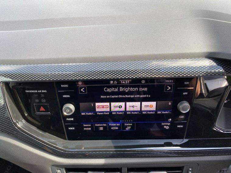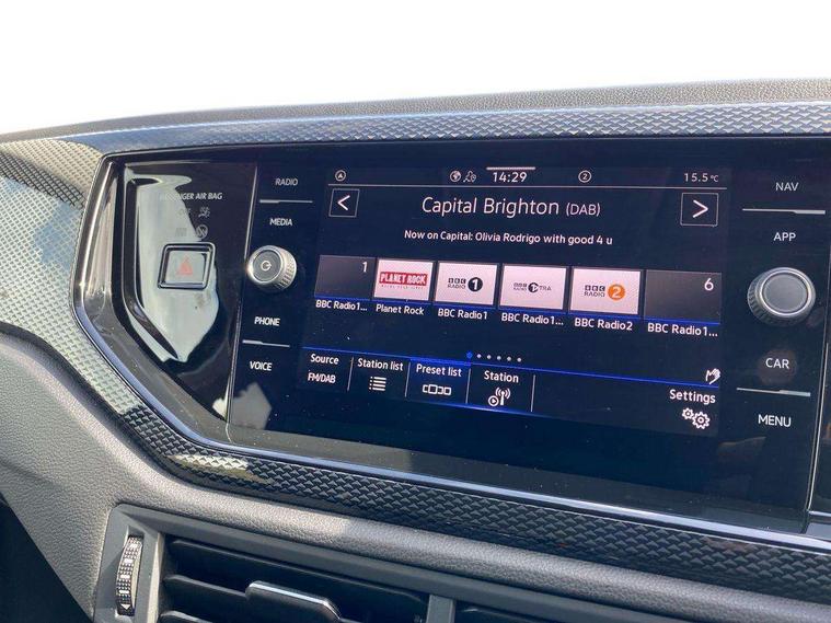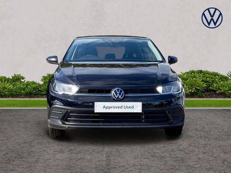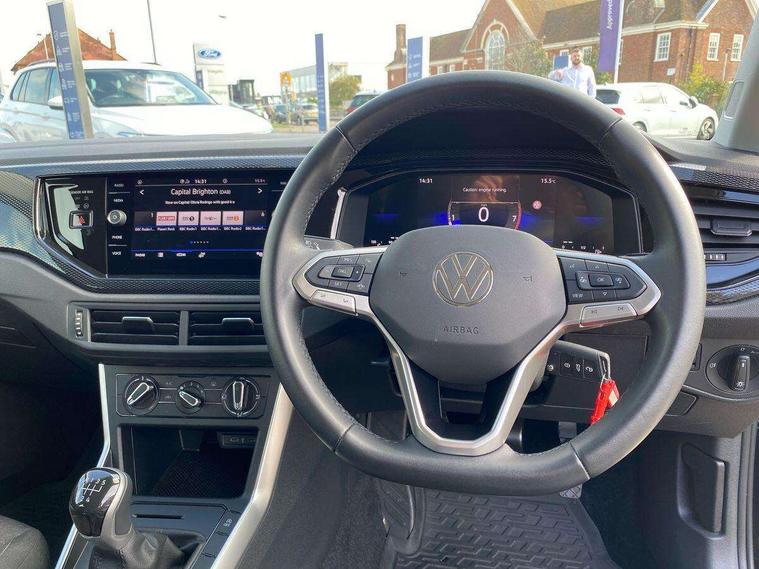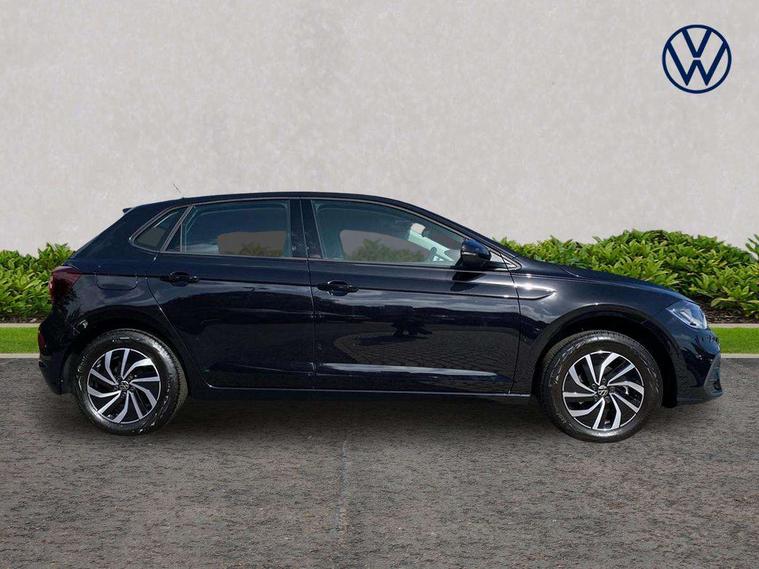 Advanced driver attention and drowsiness monitor, Bluetooth mobile phone interface, Cruise control + speed limiter, Dynamic road sign display, Emergency call service, Lane keeping system Lane Assist, Multifunction camera, Power assisted speed sensitive steering, Preparation for navigation system with media and internet package, Preparation for We connect and We connect plus, Speedo and rev counter, electronic odometer, trip, service interval display and exterior temperature gauge, Standard rear axle, Trip computer, Warning signal and warning light for front and rear seatbelts not fastened, Washer fluid level indicator, Wireless app connect, Front wheel drive, Rear shock absorpion, Start-stop system with battery regeneration (recuperation - energy recovery during braking), DAB Digital radio, Diversity antenna for FM reception, Front and rear 6 speakers, Automatic dimming interior rear view mirror, Automatic headlight control with LED separate daytime running lights with coming/leaving home function, Body colour bumpers with chrome inserts, Body colour door handles, Body colour door mirrors, Electric front windows, Engine badge deletion, Headlight range adjustment, Heat insulating and laminated safety glass windshield, LED Headlights, LED rear combination lamps, Power folding adjustable/heated exterior mirrors and front passenger exterior mirror lowering function, Rain sensor, Rear electric windows, Rear fog light, Rear side wing doors, Rear windscreen washer and wiper with interval delay, Third brake light, 12V power socket in centre console, 2 front and 2 rear reading lights with switch off delay and dimmer, 2 USB-C ports in the front, 2 USB-C charging sockets on the center console in the rear, 3 rear head restraints, 60/40 split folding rear seat and rear seat bench not split, Ceramique roof lining, Chrome plated radiator grille inserts, air vent surrounds and light switch surrounds, Door and side trim panel, Driver and front passenger seat height adjustment, Driver/passenger sunvisors with illuminated vanity mirrors, Front centre armrest, Front seat backrest storage pockets, Front standard seats, Handbrake lever handle in leather, Hartley/Thomas cloth upholstery, Headliner in recycled material, Isofix child seat preparation easy-fit (for two outer rear seats, and front passenger seat) compatible with I-size, Leather trimmed gear knob, Luggage compartment cover, Luggage compartment lighting, Removable luggage compartment floor, Single front passenger seat, Standard climatic zones, Standard pedal cluster, Three spoke leather wrapped multifunction steering wheel, Light and vision pack - Polo, 3 point height adj front seatbelts + pretensioners, 3x3 point rear seatbelts, ABS, Driver and front passenger airbag with front passenger airbag deactivation, Drivers and front passengers safety optimised head restraints, ESC (Electronic stability control) + EDL (Electronic Differntial lock) and ASR (Traction control), Extended and predictive pedestrian/ cyclist protection, Front assist with autonomous emergency braking (for Adaptive Cruise Control ACC up to 130 mph), Front curtain and side airbags with center airbag, Front disc brakes, Hill hold control, Manual child lock in rear doors, Rear drum brakes, Single tone horn, Tyre pressure loss indicator, Alarm with interior protection, Anti-theft alarm system with interior monitoring, backup horn, and towing protection, Anti-theft wheel bolts, Electronic engine immobiliser, Lava stone black gloss/matt decorative inserts in dash and front door panels, Low rolling resistance tyres,