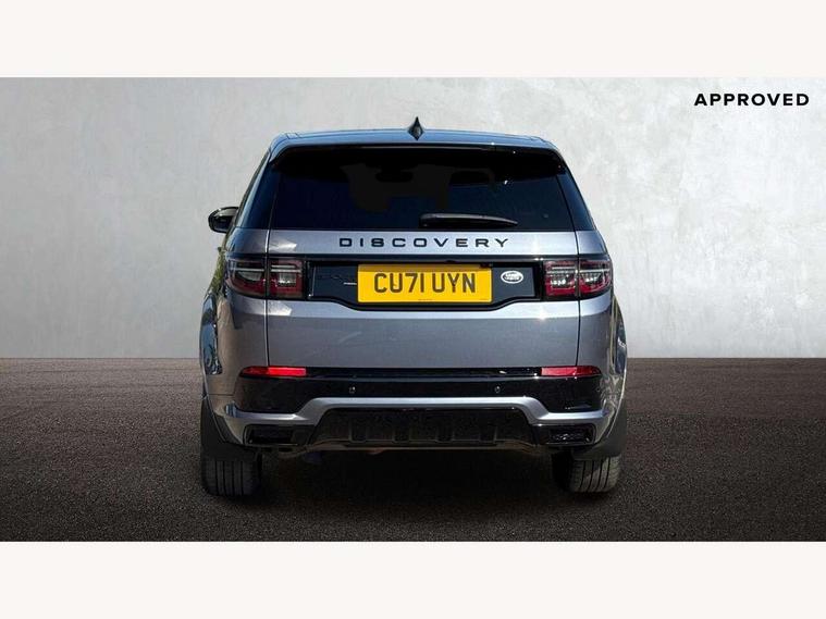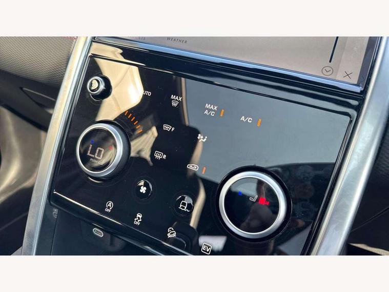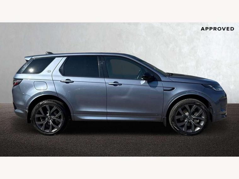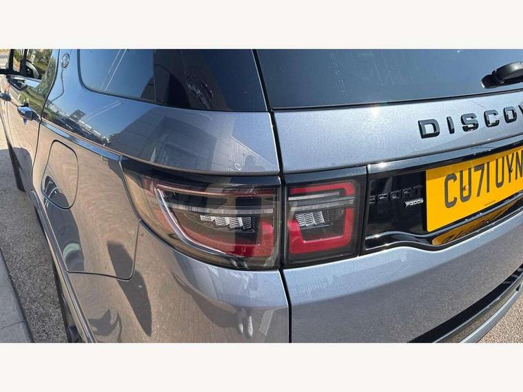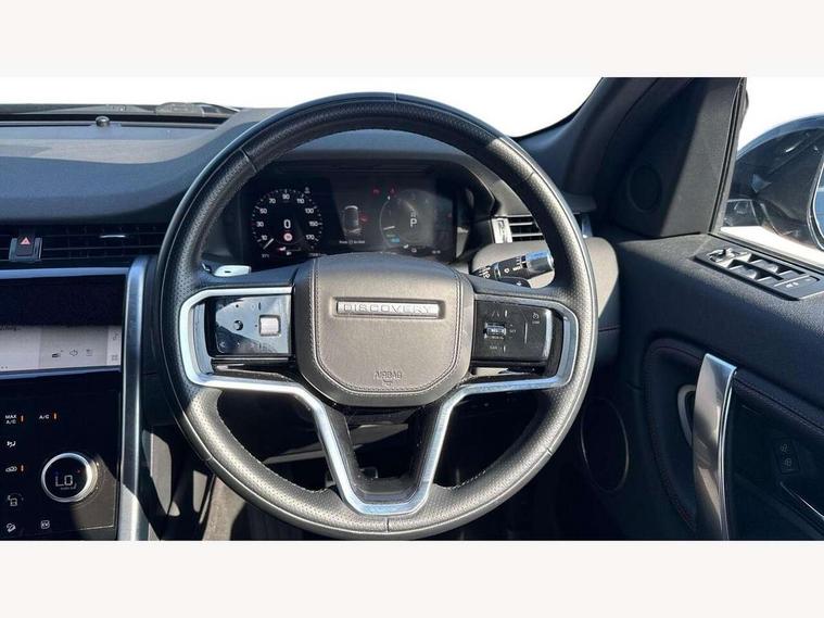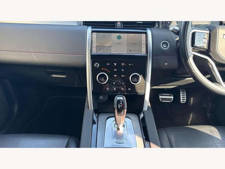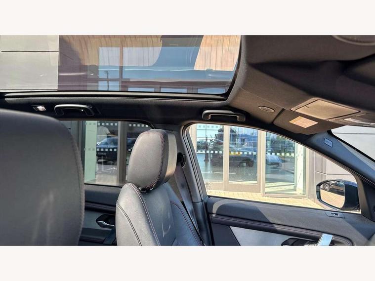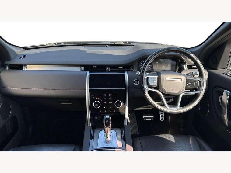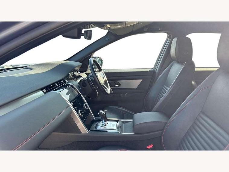 10" touch screen, Android Auto, Apple CarPlay, Blind spot assist, Clear exit monitor, Driver condition monitor, Front and rear parking aid, InControl remote premium, Interactive driver display, Lane keep assist, Locking fuel flap, PAS, Pivi Pro connected navigation system with upgraded Infotainment, Powered tailgate/boot lid, Push button start, Rear traffic monitor, Service interval indicator, Traffic sign recognition with adaptive speed limiter, Trip computer, Wade Sensing, 7 kW onboard charger, All terrain progress control, Coil suspension system, Dynamic stability control, Public charging cable, Terrain Response 2, Bluetooth connectivity including audio streaming, Digital Audio Broadcast radio-DAB, Steering wheel mounted audio controls, Automatic headlight levelling, Automatic headlights, Electric front/rear windows, Electric heated/power fold memory door mirrors with approach lights and auto dimming driver side, Fixed panoramic sunroof with powered sunblind, Front and rear recovery eyes, Heated rear window, Heated windscreen including heated washer jets, Privacy glass, R Dynamic badge, Rain sensing windscreen wipers, Rear fog lights, Rear side wing doors, Rear wiper, 5 seats, Bright metal pedals, Centre console with armrest, Footwell lights, Front and rear grab handles, Front passenger isofix child seat attachment, Loadspace cover, Loadspace light, Overhead lighting console, Overhead stowage for sunglasses, Rear headrests, Satin chrome gearshift paddles, Sunvisors with illuminated vanity mirrors, Tilt/reach adjustable steering wheel, Black exterior pack - Discovery sport, Online pack - Discovery sport, 3 point seatbelts on all seats, ABS, Brake hold function, Collision mitigation braking system, Cornering brake control (CBC), Driver/Front Passenger airbags, Drivers knee airbag, Electronic brake force distribution, Electronic parking brake, Emergency brake assist, ESP + traction control, Hill descent control, Hill launch assist, Pedestrian airbag system, Rear seat ISOFIX, Roll stability control, Side and curtain airbags for front and 2nd row seats, Trailer stability control, Tyre pressure monitoring system, Battery Back Up System (BBUS) with tilt sensor, Global lock and unlock switch on driver door, Intrusion sensor, Locking wheel nuts, Centre stack rails in noble chrome,