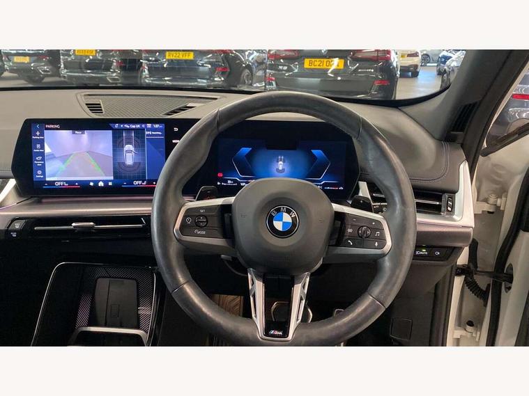 Active Guard + lane departure warning, speed limiting, front collision warning, Left turn warning with brake function and evasion assist, Attentiveness assist, Automatic start/stop function, BMW Live Cockpit Plus with 10.25" instrument cluster and 10.7" display, BMW Operating system 9 with BMW Maps, real-time traffic information, in-car experiences, remote services and smartphone integration, BMW Teleservices, Brake pad wear indicator, Condition based service, Connected eDrive Services, Drive off assistant, Electrically opening/closing tailgate with opening/closing with remote control and contactless opening and closing, iDrive controller, Language version English, My Modes, Parking Assistant with Reversing Assistant, active PDC, Lateral Parking Aid, Rear View Camera and Park Distance Control, Personal Profile - automatic lock when driving away selectable, Servotronic PAS, Tyre puncture warning system, Widescreen display, M Adaptive suspension, Performance Control, Petrol Particulate Filter, Steptronic transmission with double clutch and gear shift paddles, DAB Digital radio, Badge on engine compartment lid and tailgate, Contoured rear roof spoiler in vehicle colour with side aeroblades in black high-gloss, Dynamic brake lights, Electric adjustable heated door mirrors, Electric windows - front and rear, with open/close fingertip control, anti-trap facility and comfort closing, Folding door handles integrated flush with surface, Follow me home headlights, Front and rear bumper panel with M specific design, in body colour with inserts in black high gloss, Front door exit lights, Front entry sills aluminium inserts with M inscription, Heated rear window, High gloss shadow line includes B-pillar trim panel/window cavity cover/window frame/window guide rail front doors/door mirrors in high gloss black, Invisible exhaust tailpipe, Key with M identification, LED 3rd brake light integrated in rear spoiler, LED daytime running lights, LED number plate light, M identification on the sides, M roof rails high gloss shadow line, M specific radiator grille in satinated aluminium, Matt black roof strips, Model inscription on right tailgate, Rain sensor including auto headlights activation, Rear side wing doors, Rear wiper, Side sill covers with M specific design in body colour, Trailer stabilisation logic, Welcome lighting, Windscreen washer nozzle for rear view camera, Windscreen wipers with front and rear heated washer nozzles, 12V - Power sockets with front centre console and luggage compartment, 2 cup holders in front, 2 x USB Type C ports for charging and data transmission (front centre console) and 2 x USB Type C ports for charging (rear centre console), 3 rear headrests, 3 seat bench in 2nd row, 3 upper retaining strap clips integrated into rear panels of seat backrests, 40:20:40 split folding rear seats, Ambient interior lighting, Anthracite headlining, Anthracite Velour front and rear floormats, Bottle trays in all doors, Child seat ISOFIX attachment for two outer rear seats and front passenger seat with anchorage points, Clothes hook rear, Driver and front passenger heated seats, Dual zone automatic air conditioning, Front and rear door pockets, Front centre console storage compartment, Front sports seats, Front/rear adjustable head restraints, Glove compartment, Light on right in luggage compartment, M sport leather steering wheel, Manual steering column height and depth adjustment, Map pockets, Middle centre console storage compartment, Rear armrest in door trim panel, Single front passenger seat, Sport leather multifunction steering wheel with thumbrests and operation of instrument display, audio, telephone and driver assistance, Storage compartment with folding cover under centre console armrest cushion, Technology pack - X1, ABS/EBD, Automatic hold function, Automatic Stability Control (ASC), BMW emergency call, Braking readiness, Cornering brake control (CBC), Crash Sensor - activates hazard/interior lighting + unlocks doors, Driver/Front Passenger airbags, Driver/front passenger side airbags, Dry braking, Dynamic stability control + (DSC+), Electromechanical parking brake, Energy recovery system, Front and rear brake discs, Front and rear head airbags, Front passenger airbag deactivation, Integrated brake system, PC iBrake PostCrash approach control warning with light braking function, Rear door child safety locks, Three point seat belts in all seats, Tyre pressure monitor, Warning triangle, Alarm system with tilt sensor, monitoring doors, bonnet interior and tailgate, Closing system with central locking, Locking wheel bolts, Luxury instrument panel, Tyre repair kit (including Tyre sealant and 12V Compressor),