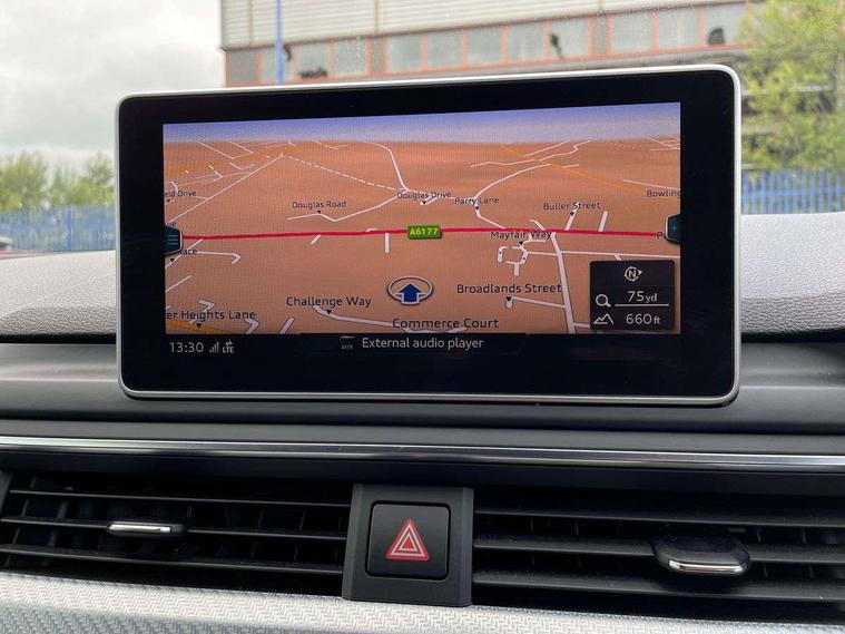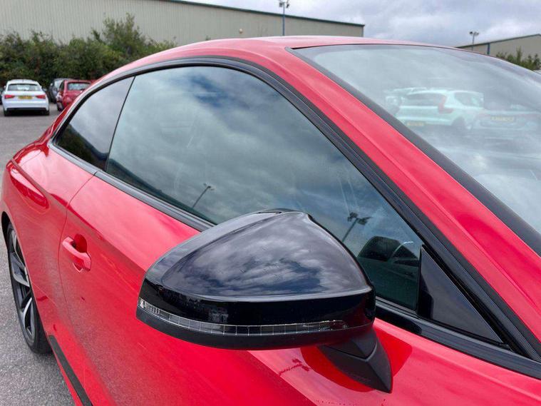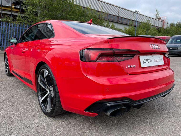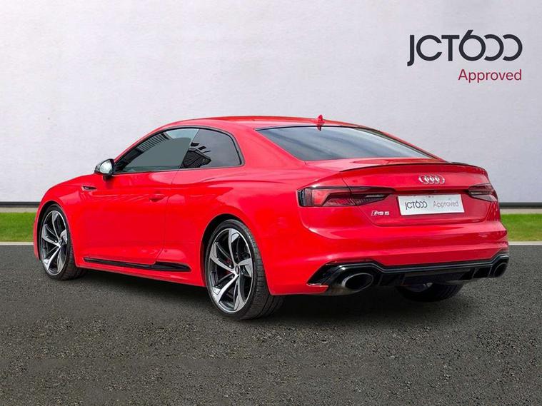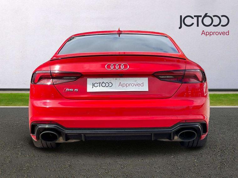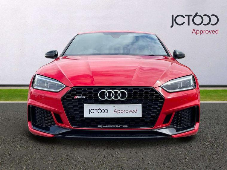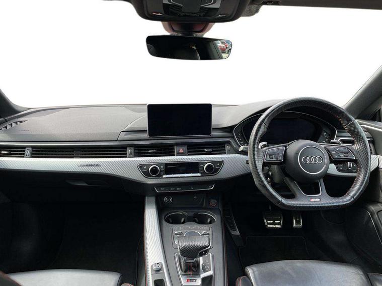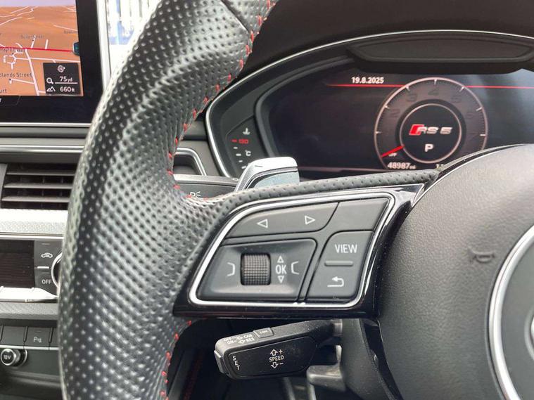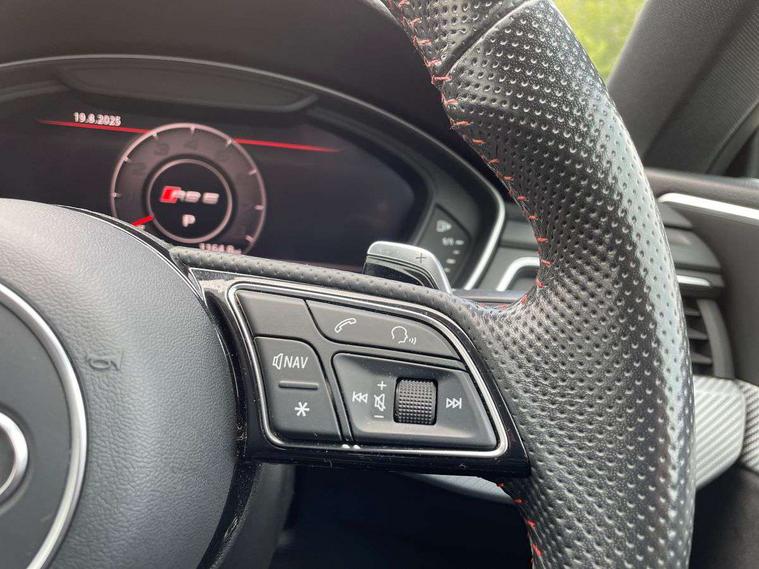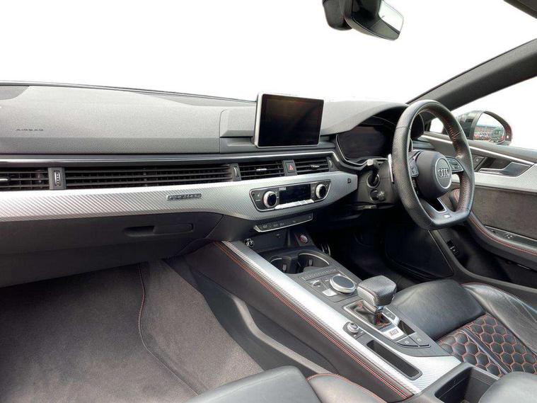 Audi connect, Audi drive select, Audi parking system plus with front and rear sensors, Audi smartphone interface, Colour driver's information system display, Electric boot release, MMI navigation plus with MMI touch, Mobile telephone preparation - bluetooth interface, Service interval indicator, Virtual cockpit, Voice control system, Quattro sports differential, CD player, DAB Digital radio, MMI radio plus with 7" colour MMI screen and MMI controller, Two SDXC card slots, Air inlets in titanium black, Auto dimming rear view mirror with acoustic windscreen, Body colour bumpers, Body colour door handles, Body colour rear diffuser with chrome strip, Electric front windows, Electrically adjustable and heated door mirrors, Front fog lights, Headlight washers, Heat insulated glass, High beam assistant, Rain and light sensors, Twilight grey matt radiator grille in matt aluminium inlay, Twilight grey matt rear diffuser, Twin chrome exhaust tailpipes x2, 2 x USB charging port with aux input socket, Adjustable steering column, Aluminium door sill trims, Automatic tri-zone climate control, Black headlining, Boot mat, Centre console with cupholders, Electric lumbar support, Fine Nappa leather upholstery, Front centre armrest, Front head restraints, Front/rear floor mats, Illuminated door sills, Isofix front passenger and rear seat preparation, Jack and tool kit, Massage function for front seats, Rear centre armrest, Rear headrests, Rear seat storage trays, Split folding rear seat, Stainless steel pedals and foot rest, Super sports seats, Top tether anchor plate for isofix child seat, Extended interior upholstery pack - A5/RS5, Non Smokers pack, ABS, ASR, Driver/Front Passenger airbags, Enhanced braking system, ESP + traction control, First aid kit, Front and rear curtain airbags, Front passenger airbag deactivation, Height adjustable front seatbelts, Multi-Collision braking, Pre-sense city emergency braking system, Seatbelt warning, Side airbags, Warning triangle, Anti theft system, Keyless Start, Locking wheel bolts, Remote central locking, Space saver spare wheel,