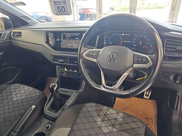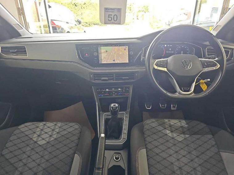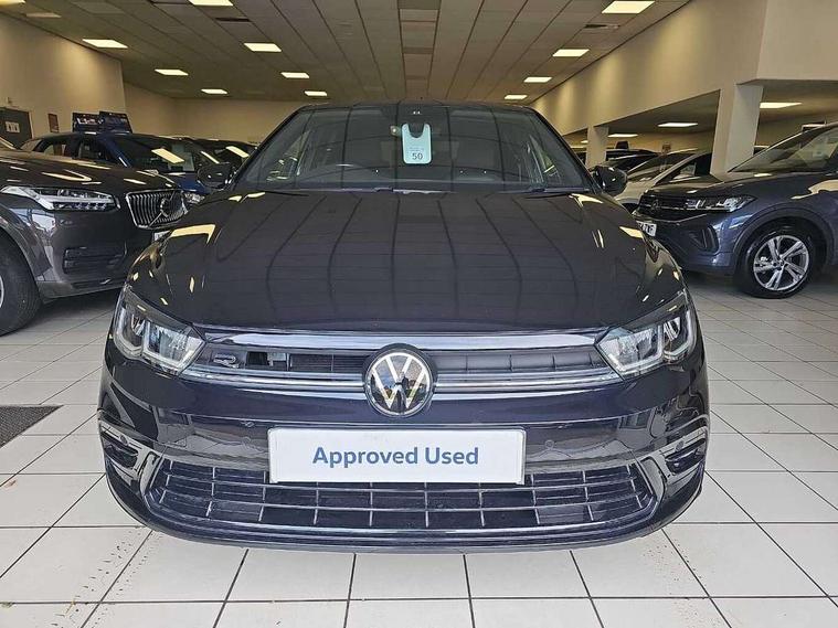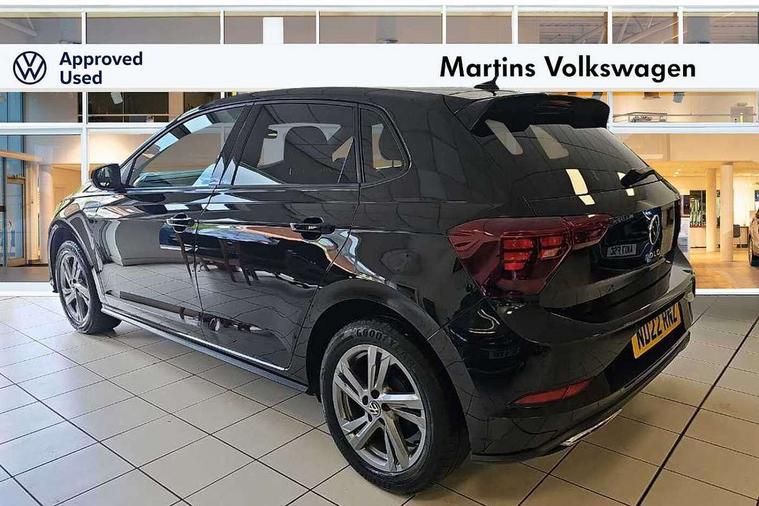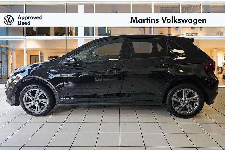 Adaptive cruise control without follow-to-stop and speed limiter, Bluetooth mobile phone interface, Digital Cockpit Pro with 10.25" Display, Driver alert system, Dynamic road sign display, Emergency call service, Power assisted speed sensitive steering, Preparation for We connect and We connect plus, Speedo and rev counter, electronic odometer, trip, service interval display and fuel gauge, Standard rear axle, Travel Assist - Lane keeping system and traffic jam assist, Travel assist including emergency assist, Trip computer, Warning signal and warning light for front and rear seatbelts not fastened, Washer fluid level indicator, Wireless app connect, Front wheel drive, Rear shock absorpion, Start-stop system with battery regeneration (recuperation - energy recovery during braking), DAB Digital radio, Diversity antenna for FM reception, Front and rear 6 speakers, Body colour bumpers, Body colour door handles, Body colour door mirrors, Electric front windows, Front scuff plates with R-Line logo, Heat insulating darkened glass in side and rear windows, Heat insulating glass windscreen, Power folding adjustable/heated exterior mirrors and front passenger exterior mirror lowering function, Rear electric windows, Rear fog light, Rear side wing doors, Rear tinted glass from B-pillar backwards approx 65% tinted, Rear windscreen washer and wiper with interval delay, Third brake light, 12V power socket in centre console, 2 USB-C ports in the front, 2 USB-C charging sockets on the center console in the rear, 3 rear head restraints, 60/40 split folding rear seat and rear seat bench not split, Air care climatronic air conditoning system with active combination filter and 2-zone temperature control, Black roof lining, Ceramique headliner, Chrome plated radiator grille inserts, air vent surrounds and light switch surrounds, Door and side trim panel, Driver and front passenger seat height adjustment, Driver/passenger sunvisors with illuminated vanity mirrors, Front + rear carpet mats, Front centre armrest, Front footwell illumination, Front seat backrest storage pockets, Front sports comfort seats, Handbrake lever handle in leather, Isofix child seat preparation easy-fit (for two outer rear seats, and front passenger seat) compatible with I-size, Karoso artvelours cloth upholstery, Leather trimmed gear knob, LED interior light with switch off delay and dimmer, 2 reading lights front and rear, Luggage compartment cover, Luggage compartment floor, Luggage compartment lighting, Lumbar adjustment for front seats, Multifunction steering wheel, Single front passenger seat, Stainless steel pedals, Standard pedal cluster, Light and sight pack - Polo R-Line/Black Edition, 3 point height adj front seatbelts + pretensioners, 3x3 point rear seatbelts, ABS, Driver and front passenger airbag with front passenger airbag deactivation, Drivers and front passengers safety optimised head restraints, ESC (Electronic stability control) + EDL (Electronic Differntial lock) and ASR (Traction control), Extended and predictive pedestrian/ cyclist protection, Front curtain and side airbags with center airbag, Hill hold control, Manual child lock in rear doors, Single tone horn, Tyre pressure loss indicator, Alarm with interior protection, Anti-theft alarm system with interior monitoring, backup horn, and towing protection, Anti-theft wheel bolts, Electronic engine immobiliser, Chrome applications on rotary light, mirror adjustment, window regulator switches, outlet with frame in black, Dark grey anodised matt decorative inserts in dash and front door panels, Low rolling resistance tyres,