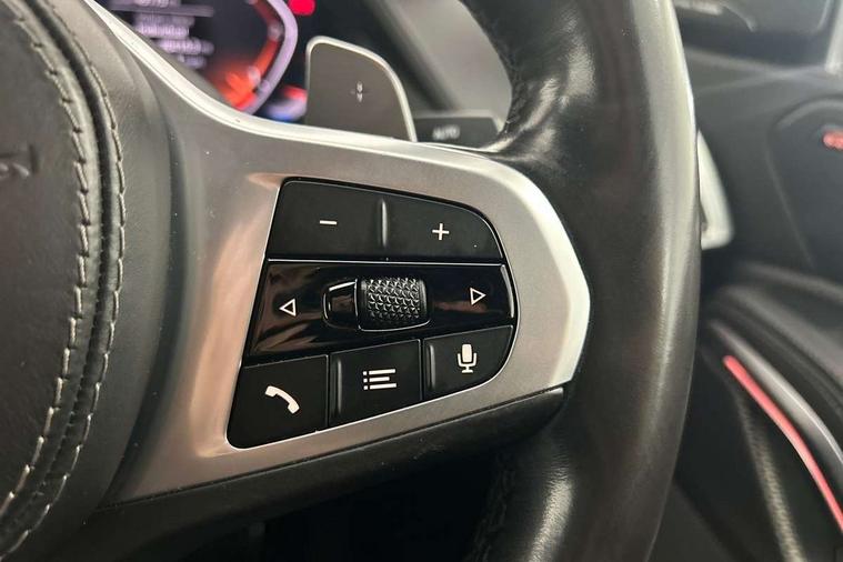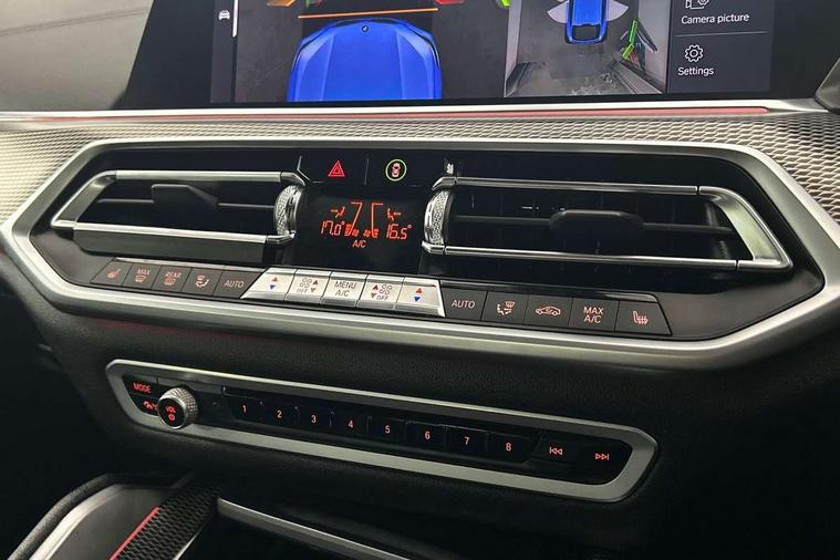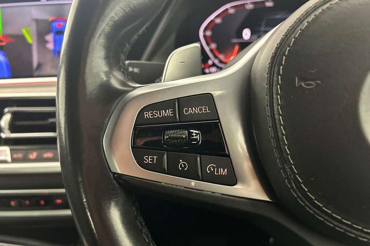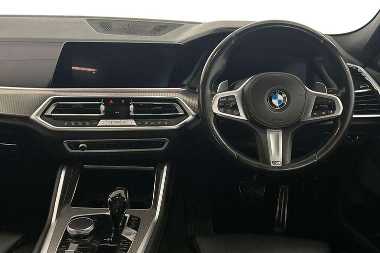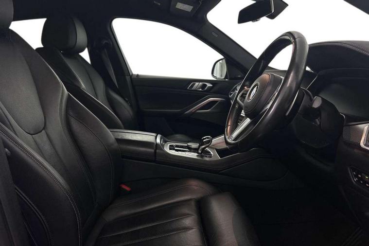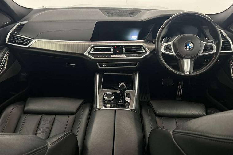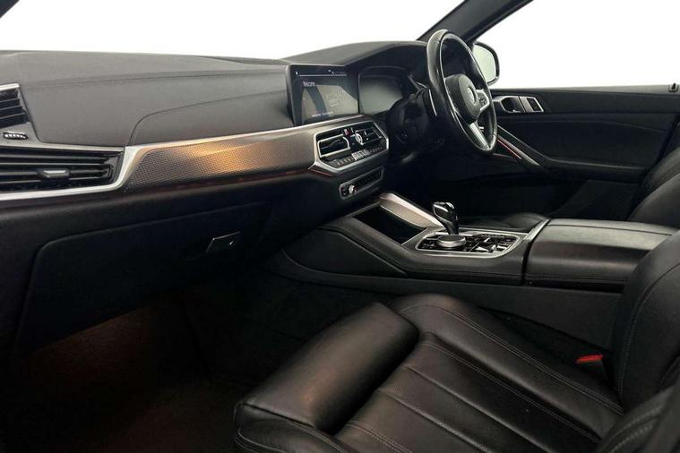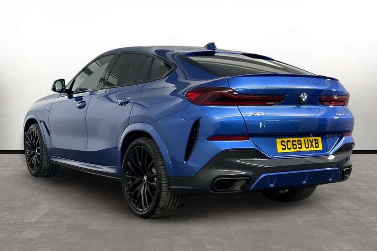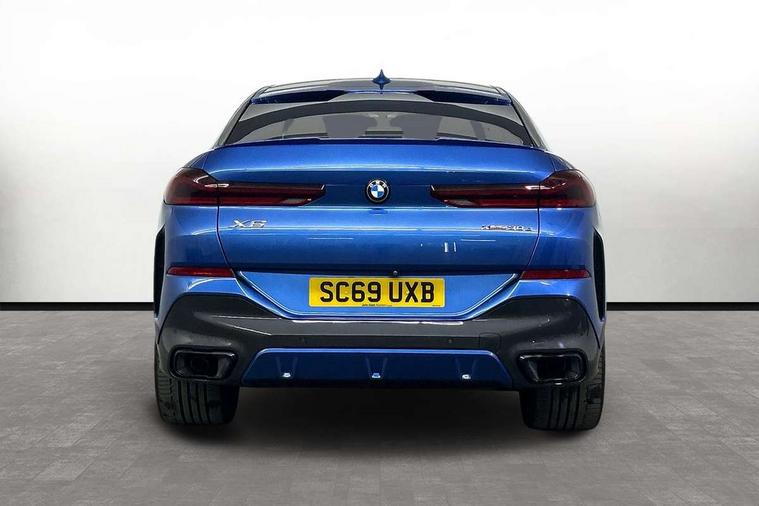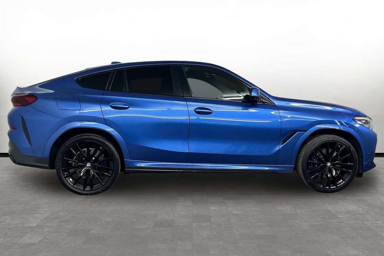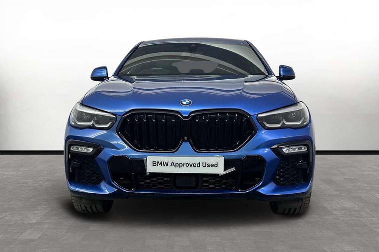 50GB hard disc drive (HDD) memory, Active guard plus, Attentiveness assist, Automatic tailgate with top hinged section open and manual bottom hinged section, BMW ConnectedDrive online services, BMW digital live cockpit professional - 12.3" digital instrument panel and 12.3" CID, with touch/voice command, BMW legal emergency call, BMW Teleservices, Brake force display, Brake pad wear indicator warning light, Enhanced bluetooth hands free facility with Telephony wireless charging, Front/rear park distance control, iDrive touch controller with shortcut buttons, Lights on warning, Oil sensor for level and grade, On board computer inc. average speed, fuel consumption, liquid crystal Info display, journey computer, outside temperature display, personal profile, Parking assistant with ultrasound based assistance system, reversing assistant, lateral parking aid and rear view camera, Service interval indicator, Speed limit info display, Wi-Fi hotspot, Diesel particulate filter, Double wishbone front axle, Drive performance control with ECO PRO comfort + sport mode, Eight speed steptronic sport automatic transmission and gearshift paddles on the steering wheel, Safety battery terminal clamp, Variable vane geometry, DAB Tuner enables digital radio reception, Favourite buttons, Gesture control for infotainment system, Hi-Fi loudspeaker system, USB connection, USB type A 1.5A in cupholder, USB Type C 3A in centre armrest, Active Air Stream kidney grille with high-gloss chrome, Adaptive air flap control bar in high-gloss black, Automatically dimming rear view mirror, Body colour bumpers, Body colour door handles, Dynamic brake lights with LED technology, Exhaust tailpipes - single, left and right with Chrome finisher, Follow me home headlight function, Front and rear electric windows with open and close fingertip control, anti trap facility and comfort closing, Heated windscreen washer jets, High beam assistant, High gloss black outer and central air intakes on front bumper with pearlescent chrome finish, High gloss black Side elements, LED daytime running lights, LED fog lights, LED rear lights, M aerodynamic body styling, M designation on left and right front side panels, M Sport exhaust system, Rain sensor with automatic headlight activation and windscreen wiper control, Satin aluminium side window graphic, Third brake light in rear spoiler, Welcome light carpet, X6 on left tailgate, xDrive designation on right tailgate, 12V - Power sockets with 2x centre console and 1x luggage compartment, 40:20:40 split folding rear seats, Ambient interior lighting with 6 pre-designed selectable lights including dynamic function, Centre and rear interior light, Child seat ISOFIX attachment with rear outer seats includes top tether, Compartment in front of cupholder, Electrical steering column with adjustable height and length with activation and control on the steering column, Foldable rear centre armrest with 2 cupholders and storage compartment, Front and rear cupholders x 2, Front and rear door pockets, Front and rear door sill inlays with illuminated BMW M designation, Front and rear side armrest integrated into door trim, Front footwell lights, Front reading lights, Light inside glove compartment, Lockable glove compartment, Luggage compartment floor panel with integral storage tray, Luggage compartment lighting, M leather steering wheel, M specific key, M specific steering wheel, M specific velour floor mats, Make-up mirror lights, Multifunction controls for leather steering wheel, Multifunctional hooks, Seat back with flap pocket, Storage tray and compartment with cover in centre console, Sunvisors with illuminated vanity mirrors, Toolkit located in luggage compartment, Connected Package Professional - X6, Expanded exterior mirror pack - X6/X6 M, Non-smokers pack - X6, 3 rear seatbelts, Airbags - driver/front passenger, rear and side, first and second row seats head airbags, front passenger seat airbag deactivation + knee airbag, Anti-lock braking system (ABS), Automatic Stability Control (ASC), Brake drying, Brake energy regeneration, Brake fade compensation, Braking pre-tensioning, Cornering brake control (CBC), Crash sensor activating central locking release, hazard warning lights, fuel cut off, interior lighting + activation of safety battery terminal clamp, Deformation zones - front and rear with door reinforcements and bumpers up to 2.5 mph, DSC - Dynamic Stability Control, Dynamic brake control, Dynamic Traction Control - DTC, Electromechanical parking brake with automatic drive away release and auto hold function, Electronic brake force distribution, Front and rear seatbelts with seatbelt stopper, seatbelt tensioner for front and outer rear seats and belt force limiter, Front head restraints with anti-whiplash, Hill start assistant, Integrated brake system, M Sport braking system in blue high gloss + blue painted brake calipers with M designation, Mechanical child proof lock on rear doors, Passive protection for pedestrians, Seat occupancy detection for driver and passenger side, Side impact protection, Two tone horn, Tyre pressure monitoring system, Ventilated front and rear disc brakes, Warning triangle and first aid kit, Closing system with central locking, Driver and front passenger door centre lock switch, Locking wheel bolts, Thatcham 1 alarm system with remote control and engine immobiliser, Start/stop toggle diamond shaped trim finisher in pearl chrome,