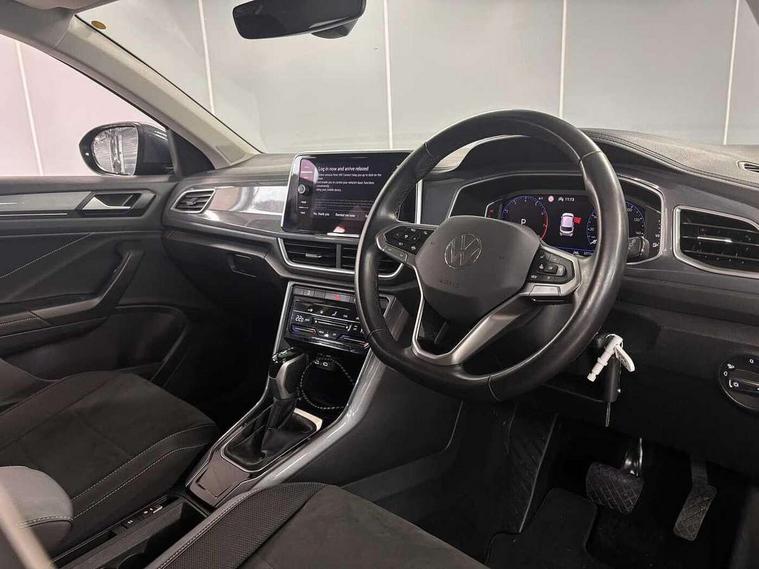 10.25" Digital cockpit pro, Advanced driver attention and drowsiness monitor, Emergency call service, Lane keeping system Lane Assist, Mobile phone interface, Modified key software - reduce switch off time for key status change to Long no motion, Online services, Park assist including front and rear parking sensors, Power assisted speed sensitive steering, Service interval indicator, Tailgate/trunk lid release from outside, Think blue trainer driver tips and journey analysis, Warning sound and light for front seatbelts unfastened, Wireless app connect, Battery regeneration during braking, Start/stop function with battery regeneration, DAB Digital radio, Diversity antenna for FM reception, Front and rear 6 speakers, Music playback - MP3, WMA and AAC files, Premium USB cable in choice of either Apple or Android smartphone compatibility, SD card slot, Simultaneous pairing of 2 compatible mobile devices, Title and cover art display, We Connect and We Connect Plus functionality, Auto dimming interior rear view mirror, Automatic hazard lights activation under emergency braking, Automatic headlight control with LED separate daytime running lights with coming/leaving home function, Body colour sports bumpers with silver metallic underbody fascia, Body coloured exterior mirror housings and door handles, Dynamic headlight range control with self adjusting whilst driving, Electrically adjustable and heated door mirrors, Extended roof spoiler, Exterior mirrors aspherical on driver side, convex on front passenger side, External USB type C socket and charging sockets, Front windscreen wiper with intermittent wipe and 4 position delay, Heated rear window, LED 3rd brake light, LED rear combination lamps, LED rear number plate lights, Light mode for poor weather, rain, fog or snow, Power windows with comfort operation and circuit breaker, Privacy glass for rear side windows and rear window, Rain sensor, Rear exhaust tailpipe, Rear fog light on one side and reversing lights on both sides, Rear side wing doors, Rear wash/wipe with intermittent wipe setting, Remote electrically foldable door mirrors, puddle lights and reverse activated passenger's door mirror, 12V power socket in centre console, 3 rear head restraints, 3 seat bench in 2nd row, 4 load lashing points in luggage compartment, Air care climatronic air conditoning system with active combination filter and 2-zone temperature control, Chrome plated radiator grille inserts, air vent surrounds and light switch surrounds, Door and side trim panel with leatherette insert, Drawer under drivers seat, Front + rear carpet mats, Front centre armrest, Front comfort sports seats, Front cupholders x 2, Front footwell illumination, Front seat back storage pockets, Glove compartment door with light, Instrument lighting, white adjustable panel illumination, Interior ambient lighting and surround lighting, Interior light delay, Isofix child seat preparation, Leather gearshift handle, LED interior light with switch off delay/dimmer and 2 front/rear LED reading lights, Load-through provision with cup holder when folded down ('Unsplit rear seat bench, split folding backrest, with centre armrest), Luggage compartment lighting, Non-folding front passenger seat backrest, Single front passenger seat, Storage compartment in left and right luggage area, Storage compartment in rear doors, Storage compartments in driver and front passenger doors, Sunvisors with illuminated vanity mirrors, Variable boot floor, height adjustable and removable, Driver assistance pack without proactive passenger protection - T-Roc, 3 point height adj front seatbelts + pretensioners, 3 point seatbelts in outer rear with ECE label, ABS, Child locks on rear doors, City emergency braking and pedestrian monitoring, Driver and front passenger airbag with front passenger airbag deactivation, Driver and front passenger safety-optimised head restraints, Drivers seatbelt reminder, Electronic parking brake, Electronic Stability Control (ESC) inc EDL (Electronic Differential Lock) and ASR (Traction Control), Front and rear passengers curtain airbag system including front side airbags, Predictive pedestrian protection, Rear disc brakes, Two tone horn, Tyre pressure loss indicator, Volkswagen roadside assistance, Deep iron grey decorative inserts in dashboard, centre console and front door trim panels, Trims for alloy wheels,