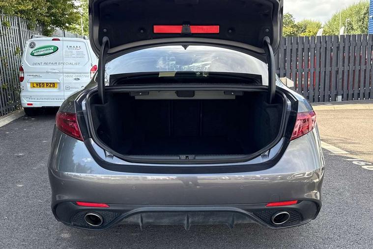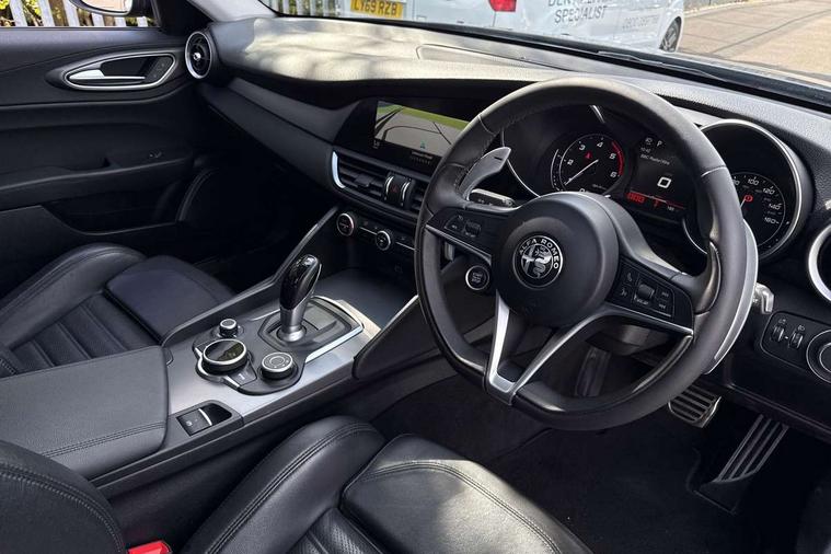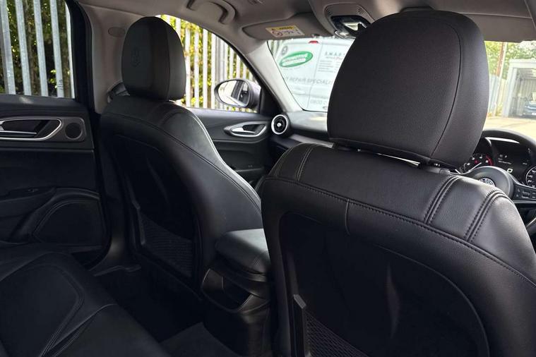 7.0" TFT Display premium cluster, Connect 8.8" colour display infotainment system, radio/nav, 3D maps with TMC, MP3, aux-in and bluetooth connection, Drive mode selector, Forward collision warning, Lane departure warning system, PAS, Trip computer, Diesel particulate filter, DAB Digital radio, Aluminium tunnel cover and front door moulding, Automatic front windscreen wipers, Automatic headlights, Bi-Xenon headlights, Daytime running lights, Dual chrome tipped exhausts, Electric folding auto dimming rear view mirrors, Fog lights, Gloss black side window surrounds, Heated washer jets, LED tail lights, Rear diffuser, Sports bumpers, 3 rear headrests, 40:20:40 split folding rear bench seat, 6 way electrically adjustable front seats, Aluminium door sill trims, Dual zone climate control, Front headrests, Heated front seats, Heated steering wheel, Leather multi function steering wheel, Leather sports steering wheel, Sports leather upholstery, Start button on steering wheel, Sport pack - Giulia, 3x3 point rear seatbelts, Autonomous emergency braking, Electronic parking brake, ESP, Passenger airbag deactivate switch, Traction control, Tyre pressure monitoring system, Immobiliser, Perimeter alarm, Remote central locking, Run flat tyres,