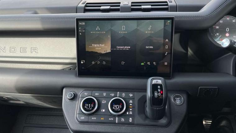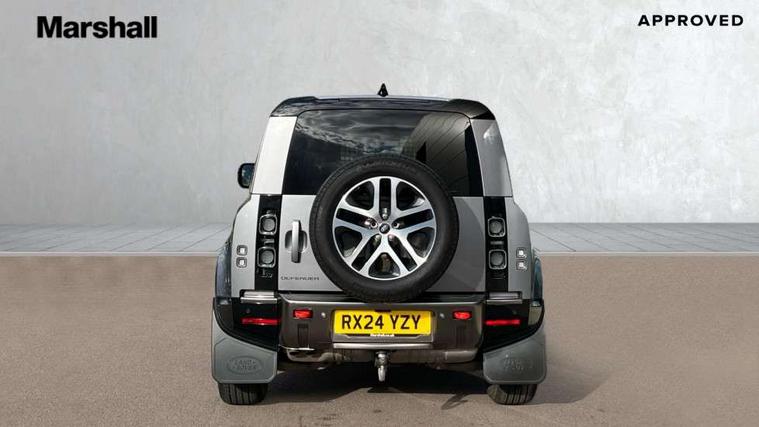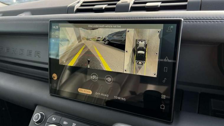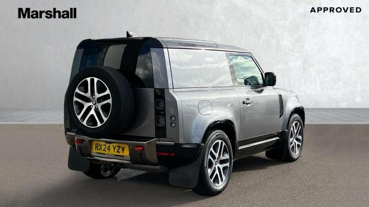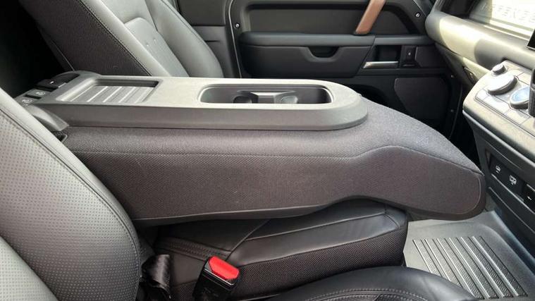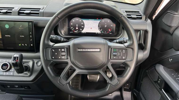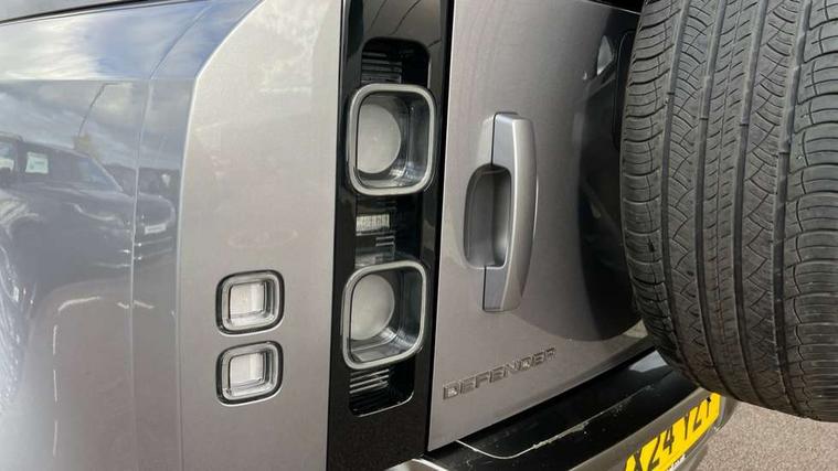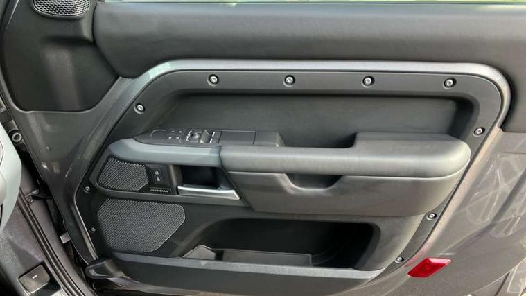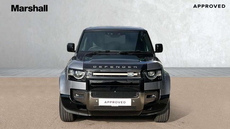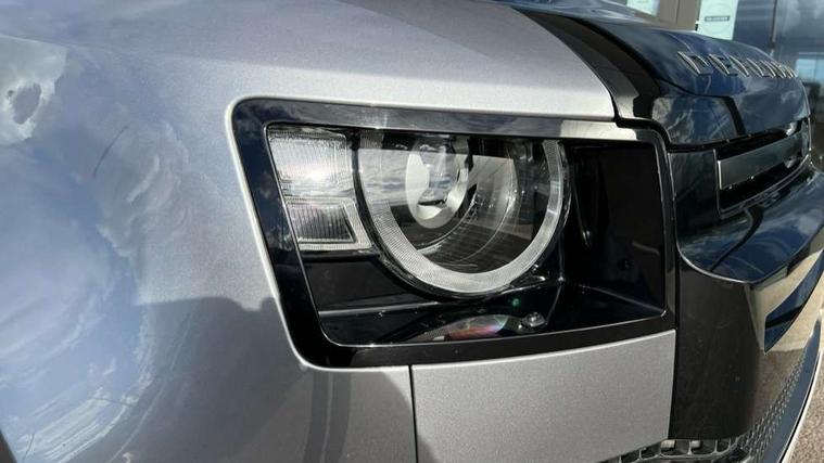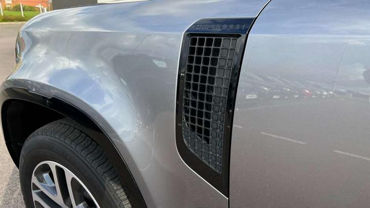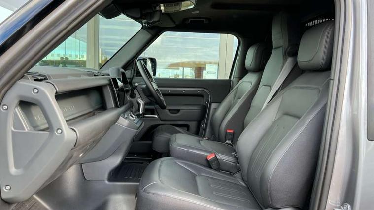 Customer Configurable Autolock, 11.4" touchscreen, 360 parking aid, 3D Surround Camera with 360 View, 180 Rear View, Front Traffic Detection, Forward Vehicle Guidance, Tow Hitch Assist and clear sight Ground View, Adaptive cruise control, Blind spot assist, Brake Hold, Driver condition monitor, Electric power assisted steering (EPAS), Head up display, Lane keep assist, Low traction launch, Pivi pro connected, Rear collision monitor, Rear traffic monitor, Traffic sign recognition adaptive speed limiter, Trip computer, Tyre pressure monitor, Wade Sensing, Android Auto, Apple CarPlay, DAB Radio (Digital Audio Broadcasting), Meridian 280W sound audio system with 7 speakers with subwoofer, Alpine lights, Assisted tailgate, Automatic headlight levelling, Automatic headlights and rain sensitive front wipers, Black contrast bonnet, Body coloured exterior Utility Panel, Centre high mounted stop light, ClearSight interior rear view mirror, Darkened tail lights, Electric heated/power fold door mirrors with approach lights and auto dimming driver side, Electric windows with one touch open/close and anti-trap, Follow me home lighting, Front fog lights, Heated rear window with timer, Heated windscreen, Illuminated metal treadplates with brand-name script, Matrix LED headlights with signature DRL, Privacy glass, Puddle lights, Rear fog lights, Rear wash wiper, Side-hinged tailgate, Standard roof, X Badge, 14 way heated and cooled electric adjustable memory front seats with 4 way manual headrests, Additional lashing points, Bright metal pedals, Dual zone climate control, Durable rubber cabin flooring, Ebony Morzine headlining, Electric adjustable steering column, Footwell lights, Front jump seat and folding front centre armrest, Full height bulkhead behind row 1 seats, Glovebox storage, High sided rubber mats, Loadspace cover, Loadspace hooks, Loadspace rubber mat, Lockable and illuminated underfloor storage compartment (x1 under boot floor and x1 accessible via rear doors), Overhead stowage for sunglasses, Premium cabin lighting, Rear centre headrest, Rear reading light, Standard seating configuration, Sunvisors with illuminated vanity mirrors, Twin front cupholders with cover, Upgraded loadspace LED lighting, Online pack - Defender with data plan, Brake pad wear indicator, Cross car beam in Dark grey powder coat brushed finish, Electronic traction control, Emergency braking, Front airbags, with passenger seat occupant detector, Power operated child locks, Remote for (e-Call, Optimised assistance call, InControl app, Climate, beep and flash and door), Seat belt reminder, Intrusion sensor, Keyless entry system, Locking wheel nuts, 8 speed automatic transmission, ABS and EBA, Adaptive dynamics, All Terrain Progress Control (ATPC), All wheel drive, CBC - (Cornering brake control), Configurable Terrain Response, Domestic plug socket, Dynamic stability control, Electronic active differential with brake torque vectoring, Electronic air suspension, Electronic brake force distribution, Electronic park brake, Gradient acceleration control, Hill Descent Control, Hill start assist, Particulate filter (DPF), Push button start, Roll stability control, Terrain Response 2, Trailer stability assist, Twin speed transfer box (high/low range), Extended leather upgrade,
