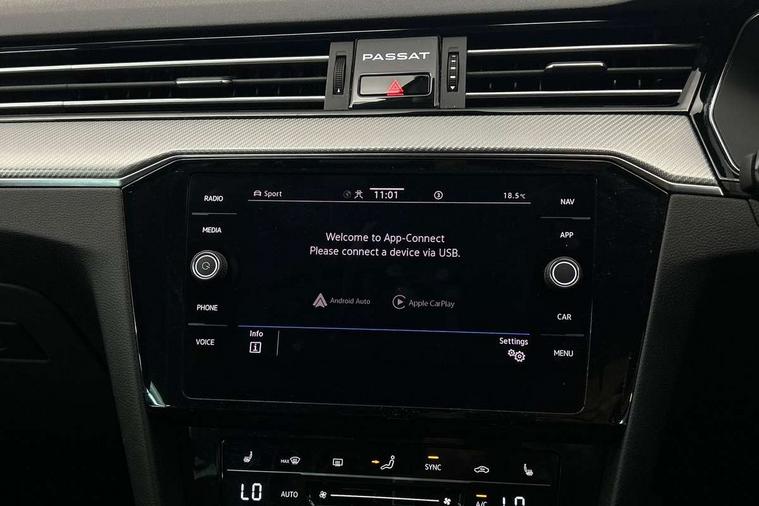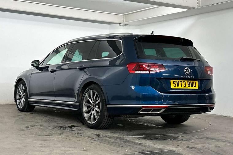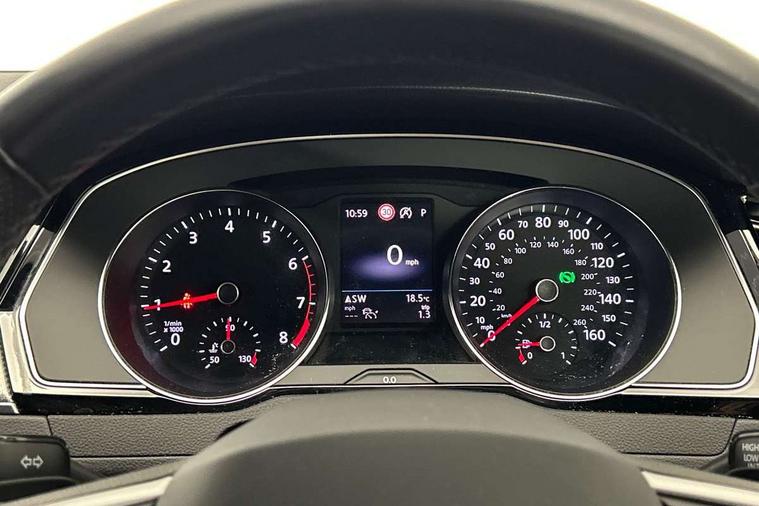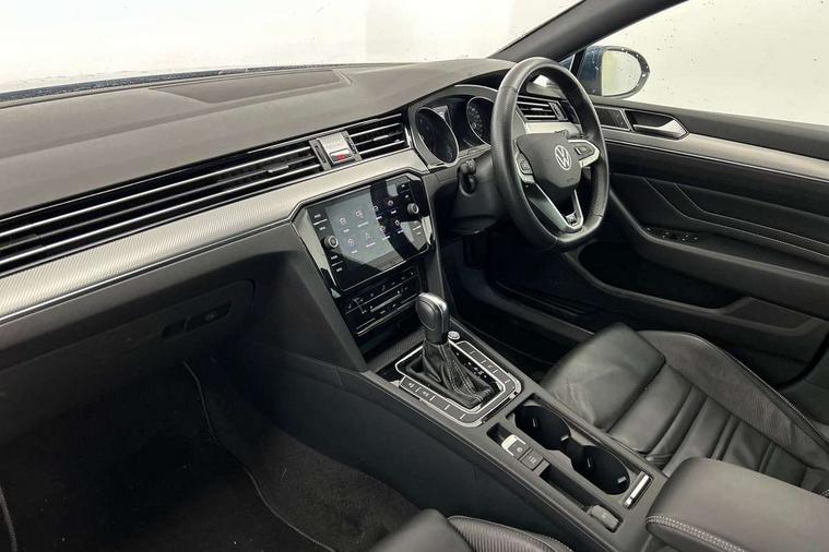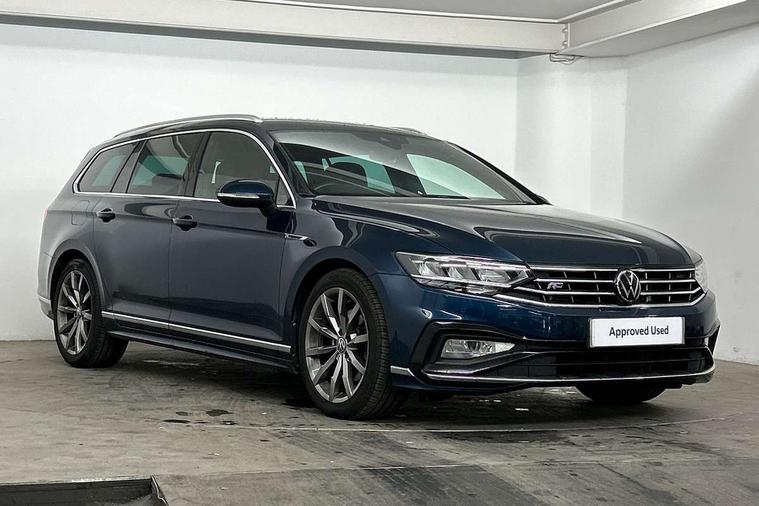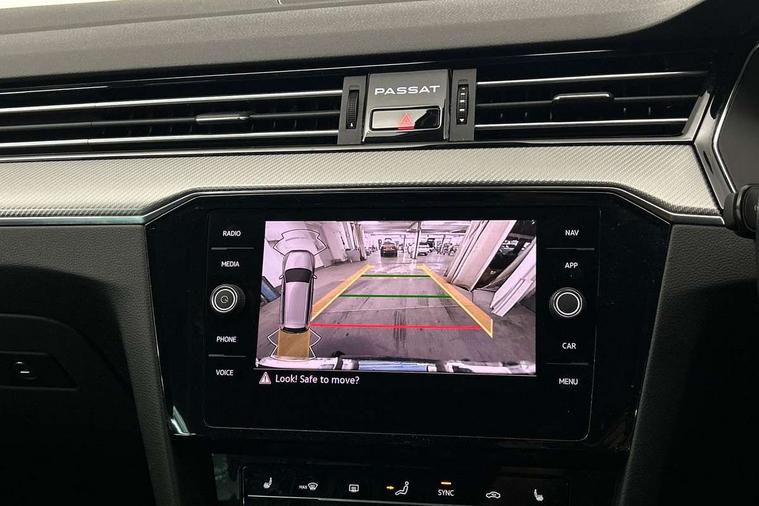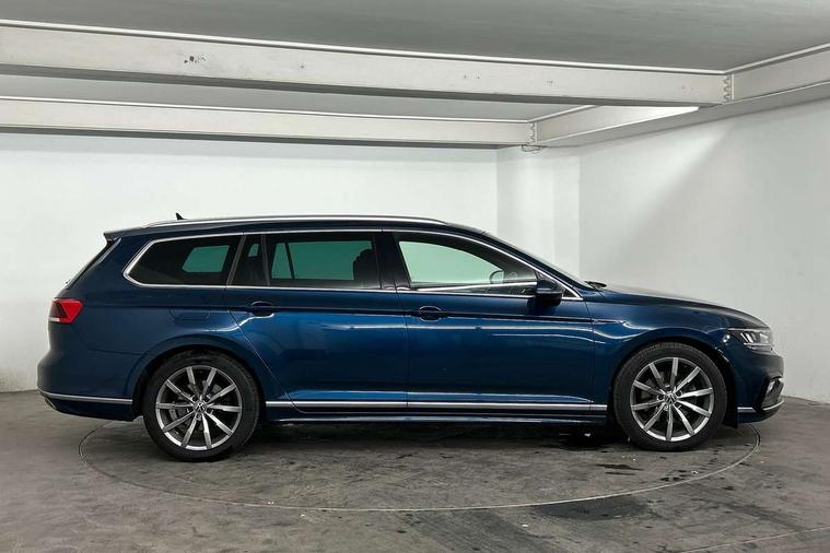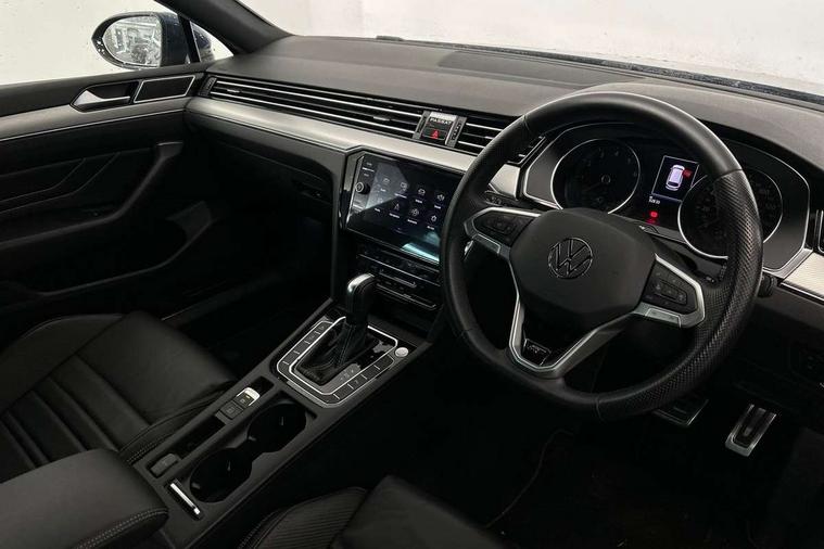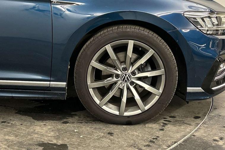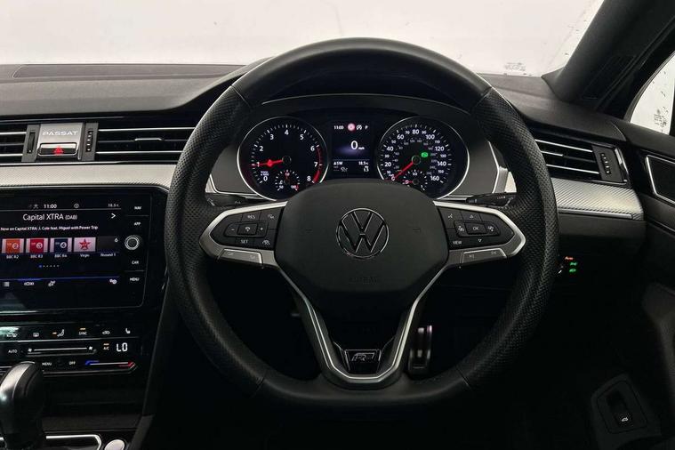 Adaptive cruise control including Front Assist, radar sensor controlled distance monitoring system, City emergency braking system, Driver alert system, Driver profile selection, Exterior temperature gauge with frost alarm, Lane assist, Low washer fluid warning light, Multifunction computer includes visual gear, One touch indicator turn signal, Proactive occupant protection, Security and service including e-call, Speed sensitive power steering, Speedo and rev counter, electronic odometer, trip, service interval display and fuel gauge, Start/Stop function, Traffic jam assist, Warning buzzer and light for front seatbelts unfastened, We connect plus, Battery regeneration during braking, Misfuel prevention device, Petrol Particulate Filter, Aerial for radio integrated into rear windscreen, DAB Digital radio receiver, External, USB type C data sockets with increased charging performance front (45 Watt), Auto dimming interior rear view mirror, Automatic headlights with dusk sensor, Automatic leaving home and manual coming home lighting functions, Black radiator grille with chrome louvres, Body colour bumpers, Body colour door handles, Body coloured door mirrors with integrated indicators, Chrome side window surrounds, Electric heated windscreen washer jets, Front and rear electric windows, Fully galvanised body, Gloss black finish on B pillar, Heated rear window, LED rear lights, LED rear number plate lights, LED third brake light, Plastic load sill protection, Rain sensor, Rear side wing doors, Rear tinted glass from B pillar backwards, approx 65% tinted, Rear window wash/wipe, Remote electrically adjustable and foldable heated door mirrors including automatic dimming function on drivers side door mirror puddle lights, Silver anodised roof rails, Warning lights for open tailgate and doors, White instrument lighting, Windscreen wipers/ intermittent wipe + 4 position delay, 12V socket in front centre console, 12V socket in luggage compartment, 3 seat bench in 2nd row, 40:20:40 split folding rear seat backrests, Carbon optic side bolsters, Climate control - 3 Zone electronic air conditioning with automatic air recirculation, Driver's door storage compartment for 1.0 litre bottle, Extending luggage compartment cover with convenience opening, stowable, Front and rear interior lighting with delay and dimming function, Front centre armrest with storage compartment and two rear air vents, Front cupholders x2 with covers, Front passenger storage compartment for 1.5 litre bottle, Front seats with embroidered R Line logo on backrest, Height adjustable and removable variable boot floor, Height adjustable rear seat head restraints (x3), Height/reach adjust steering wheel, Illuminated vanity mirrors, Isofix child seat preparation, outer rear seats, Load lashing points x 4 in luggage compartment, Load through provision, Lockable, illuminated, cooled glovebox, Luggage compartment lighting, Nappa leather upholstery, Rear seat centre armrest with storage compartment, Single front passenger seat, Stainless steel pedals, Storage compartment in rear doors, Storage compartment in roof console with cover, Unique R Line door sill protectors, Unique R Line front and rear carpet mats, Easy open package with full electric tailgate/ boot - Passat (Estate), R line styling pack - Passat (Estate), 3x3 point rear seatbelts, ABS (Anti locking brake system) includes BAS (Brake assist) and EBD (Electronic brake pressure distribution), Automatic post collision braking, Disc brakes front and rear, Door open warning reflectors, Driver/Front Passenger airbags, Drivers and front passengers safety optimised head restraints, longitudinal and height adjustable, Drivers knee airbag, Electronic parking brake with auto hold, First aid kit and warning triange with 2 face masks, Front and rear passenger curtain airbags, Front passenger airbag deactivation switch, Front side impact airbag, Height adjustable front 3 point seatbelts + pretensioners, Hill hold function, Pre crash preventive occupant protection, Rear door child safety locks, Rear seat side impact airbags, Rigid safety cell with front and rear crumple zones, Tyre pressure loss indicator, Volkswagen roadside assistance, Warning light for rear seat belts if unfastened, Alarm with interior protection and deactivation via infotainment system, Electronic engine immobiliser, Locking wheel nuts, Remote central locking, Chrome air vent and instrument surround, Unique R Line dark diamond flag decorative inserts in dash and door panels,