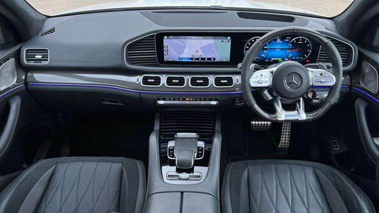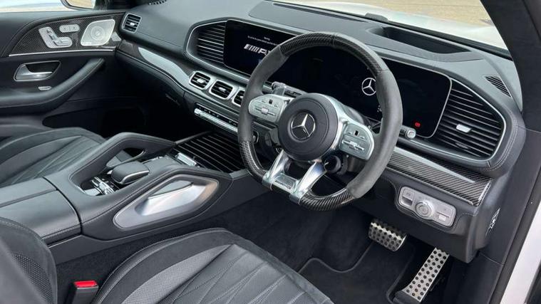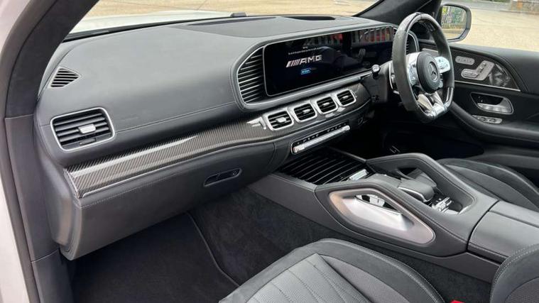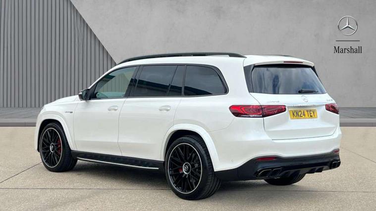 Active parking assist with parktronic and 360 degree camera, Crosswind Assist, Direct steering, DYNAMIC SELECT with a choice of driving modes (Sport, Sport+, Trail, Sand, Slippery, Manual and Individual), Easy-pack tailgate - Powered opening/closing automatically, ECO start/stop function, Emergency call service, Front wireless charging system for mobile devices, Head up Display, MBUX augmented reality for navigation, MBUX Interior assistant, MBUX removable rear tablet with 7" screen diagonal and camera function + docking station in high-gloss black for storage and charging, Pre-installation for MBUX entertainment, Service indicator (ASSYST), Smartphone integration with Apple CarPlay and Android auto, Soft closing aid for boot/doors, Speedtronic cruise control, Wireless charging in rear, 4MATIC permanent four wheel drive, AMG electronic rear axle limited slip differential lock, AMG ride control + air suspension with level adjustment and adaptive damping system, AMG SPEEDSHIFT TCT 9G automatic transmission with steering column gear selector, DIRECT SELECT steering wheel gearshift paddles, Fuel tank with increased capacity, Petrol Particulate Filter, 1 data-enabled USB port in the oddments tray, 2 USB ports capable of charging in the 2nd seat row, 2 USB ports capable of charging in the 3rd seat row, 2 USB ports in centre console, Burmester surround sound system, DAB Digital radio, USB-C, Adaptive brake lights, Adaptive high beam assist plus, AMG bodystyling front and rear aprons and side skirts, AMG performance exhaust system, Black roof rails, Electrically operated sunblind for rear side windows, Headlamp assist automatic headlamp activation, Heat insulating dark tinted privacy glass from the B-pillar backwards, Illuminated front door sill panels with "AMG" lettering in white, Illuminated running boards with rubber studs, LED daytime running lights, LED tail lights, LED third brake light, Magic vision control with adaptive heated windscreen wiper system, Multibeam LED, Panoramic sliding sunroof, Rain sensor windscreen wipers, Rear side wing doors, Rear wiper, Tinted glass all round with single layer safety glass, Underguard - full length reinforced underfloor panelling, 2 seat bench in 3rd row, 3 seat bench in 2nd row, 3rd row access facility - folds flat 2nd row seating via button control, 3rd row rear seats with electrically folding and raising with EASY ENTRY system power release, AMG brushed stainless steel sports pedals with rubber studs, AMG floor mats with edging and embroidered AMG lettering, AMG performance steering wheel in carbon fibre/dinamica microfibre, AMG steering wheel buttons, AMG style exclusive nappa leather upholstery, Auto Mercedes-Benz child seat recognition sensor, Beltlines on doors in nappa leather, Climate front seats, Climate rear seats for 2nd row, Comfort front headrests, Dinamica microfibre roof liner, Door centre panels in nappa leather, Double sun visors with illuminated vanity mirrors, Easy entry/ electrically adjustable steering column, Easy-pack removable load compartment cover, Front centre armrest with storage compartment, Front cupholder, Front passenger side seat electrically adjustable from the rear, Front/rear reading lights, Heated 3rd row seats, Interior lighting - 64 colour Ambient lighting, Load securing rings in luggage compartment, Luxury rear head restraints, Multi contour front seats with massage function, Multi contour second row rear seats with massage function, Single front passenger seat, Temperature controlled rear cupholders, THERMOTRONIC luxury automatic climate control 5 zone function with separate air distribution for driver/front passenger and two for 2/3 row seats, Widened luxury centre armrest, Air balance pack - GLS, AMG Driver's pack - GLS, Driving assistance pack - GLS, Keyless go comfort package - GLS, Memory package - GLS, Mirror pack - GLS, Warmth comfort package - GLS, 3 rear 3 point seatbelts, ABS with Brake Assist, Active bonnet, Adaptive brake assist with hold function, hill start assist, priming and dry braking in the wet, Airbags - windowbags, AMG high performance composite braking system, Continuously analyses driver behaviour and steering movements, Detects sudden strong gusts of wind, Driver/Front Passenger airbags, Drivers knee airbag, Electronic four wheel traction control, Electronic parking brake, ESP with ASR, Front side airbags, i-Size child seat fixing points in two outer second row seats and two third row seats, Manual rear child locks, Rear side airbags for left and right, Red brake calipers with AMG lettering, Tyre pressure monitor, Alarm system/interior protection/immobiliser, Remote central locking, AMG carbon fibre trim, Dashboard upper and lower section in nappa leather, 23" AMG multi spoke forged alloy wheels painted in matt black with high sheen rim flange, Collapsible spare wheel,