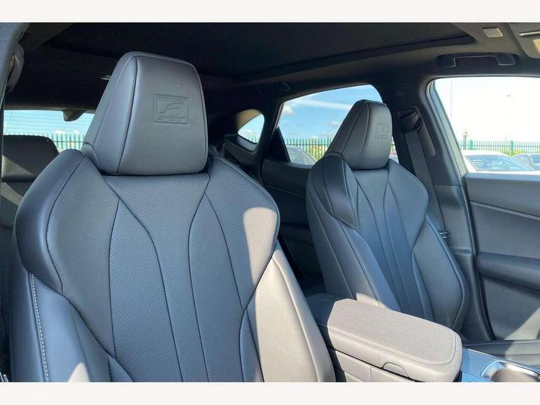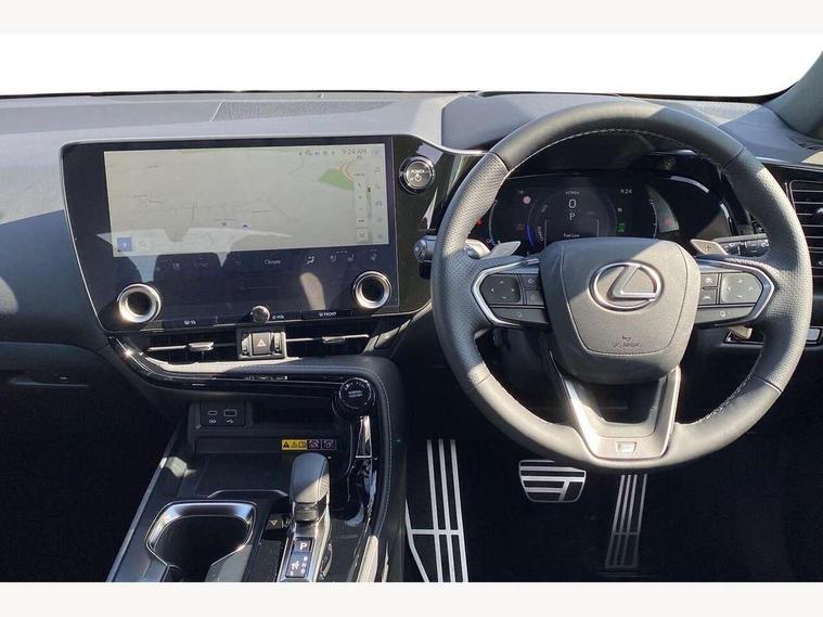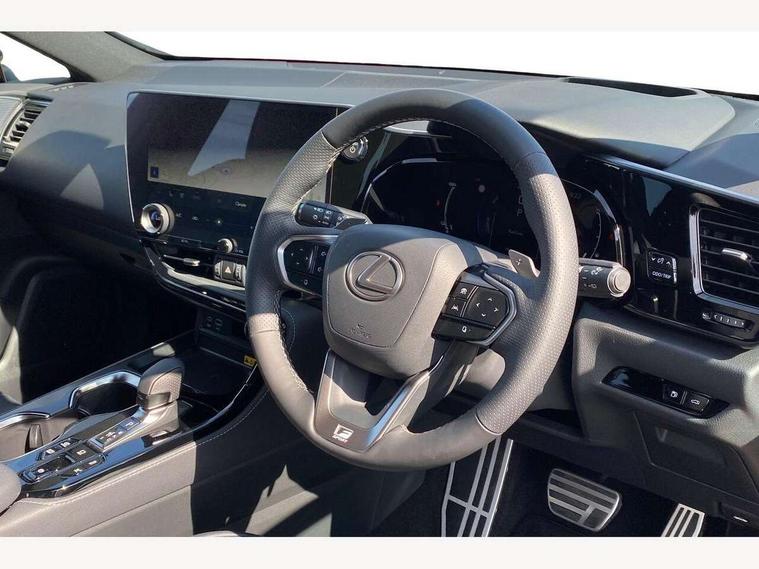 360 degree panoramic view monitor, 7" display in instrument binnacle, Blind spot monitoring with rear cross traffic alert, Bluetooth telephone connectivity, eCall emergency system, Electric speed sensitive power steering, Extended lexus safety+ system includes front cross traffic alert and lane change assist, Head up Display, Intelligent parking sensors - 4 front and 4 rear with object and pedestrain detection, Lane change flasher function, Lexus link connect - Cloud based navigation, cloud based voice assistant, always online, 14" HD touchscreen, embedded nav and faster CPU, Push button starter, Reversing camera with back guidelines, Service interval indicator, Tailgate, Tazuna cockpit with 7" improved meters display, 10" HUD and capacitive touch steering wheel switches, Wireless Apple CarPlay/Android Auto, Wireless Smartphone charger, 6.6 kW onboard charger, All Wheel Drive (AWD), Hybrid automatic transmission, Sport suspension, Vehicle Dynamics Integrated Management (VDIM), Vehicle Stability Control (VSC), 10 speakers, 4 USB ports - 2 front, one USB C, 2 rear USB C, DAB Digital radio, 4 eye LED headlight with adaptive high beam, Auto dimming interior rear view mirror, Automatic headlights, Black roof, Black roof rails, Digital rear view mirror, Double hidden exhaust pipes, F SPORT exterior styling - Black mesh front grille, enhanced side rockers, metallic front bumper, badging, black outside mirror covers, Fixed panoramic roof, Front and rear one touch power windows, with anti-jam protection, Headlight cleaners, Heated, auto-folding, auto-dimming outside mirrors with reverse tilt function and turn indicators, Illuminated door handles with puddle light, LED brake lights and rear lights with emergency brake signal, LED cornering lights, LED daytime running lights, LED front fog lights, LED Indicators, Power back door with kick sensor, Privacy glass, rear doors and tailgate, Rain sensor windscreen wipers, Rear side wing doors, Rear wiper, Roof rails, 12V accessory port centre console and luggage compartment, 2 cupholders in front centre console, 2 x fixed shopping bag hooks in boot, 2 x sun visors with vanity mirror and lamp, 3 seat bench in 2nd row, 4 x tie down hooks in the boot, 60/40 split folding rear seat, 8 way driver/passenger electrically adjustable front seats, Active sound control, Adjustable rear seat backrest, Black interior roof, Card holder installed in driver and passengers sun visors, Centre armrest with storage box, Driver and passenger 2 way electrical lumbar adjustment, Driver seat memory function, Dual zone climate control air conditioning system with humidity sensor, F Sport aluminium sports pedals, F SPORT leather gearlever, F SPORT seats - Leather upholstery, Front and rear head restraints, Front and rear textile carpet mats, Front passenger seat, Heated front seats, Heated rear seats, Heated steering wheel, LED ambient lighting, LED interior illumination, Power adjustable F SPORT leather steering wheel with paddle shifts, Rear centre armrest with 2 cupholders, Whiplash Injury Lessening (WIL) feature (active headrest) for seats, 3 point ELR front seatbelts with pretensioners, 3x3 point rear seat belts, ABS, Adjustable seat belt anchor points, Driver and front passenger 2 stage airbag, Driver/front passenger side airbags, Drivers knee airbag, E-Latch, EBD + Brake Assist, ECB (Electronically Controlled Brake System), Electronic parking brake, Front and rear curtain shield airbags, Front center airbag, Front passenger seat cushion airbag, Hill assist control, Lexus safety system - dynamic radar cruise control, pre collision system day and night, lane tracing assist, road sign, automatic high beam, OTA, Manual rear child locks, Passenger airbag cut-off device, Traction control, Tyre pressure warning, Anti-theft system with alarm, intrusion sensor, glass breakage sensor, tilt sensor and engine immobiliser, Locking wheel nuts, Smart entry ( front/rear/boot), Speed sensitive auto door locking, Ultra Wide Band (UWB) Anti-theft system, VIN Window etching, Aluminium inlays, Organic inlay, Run flat tyres,